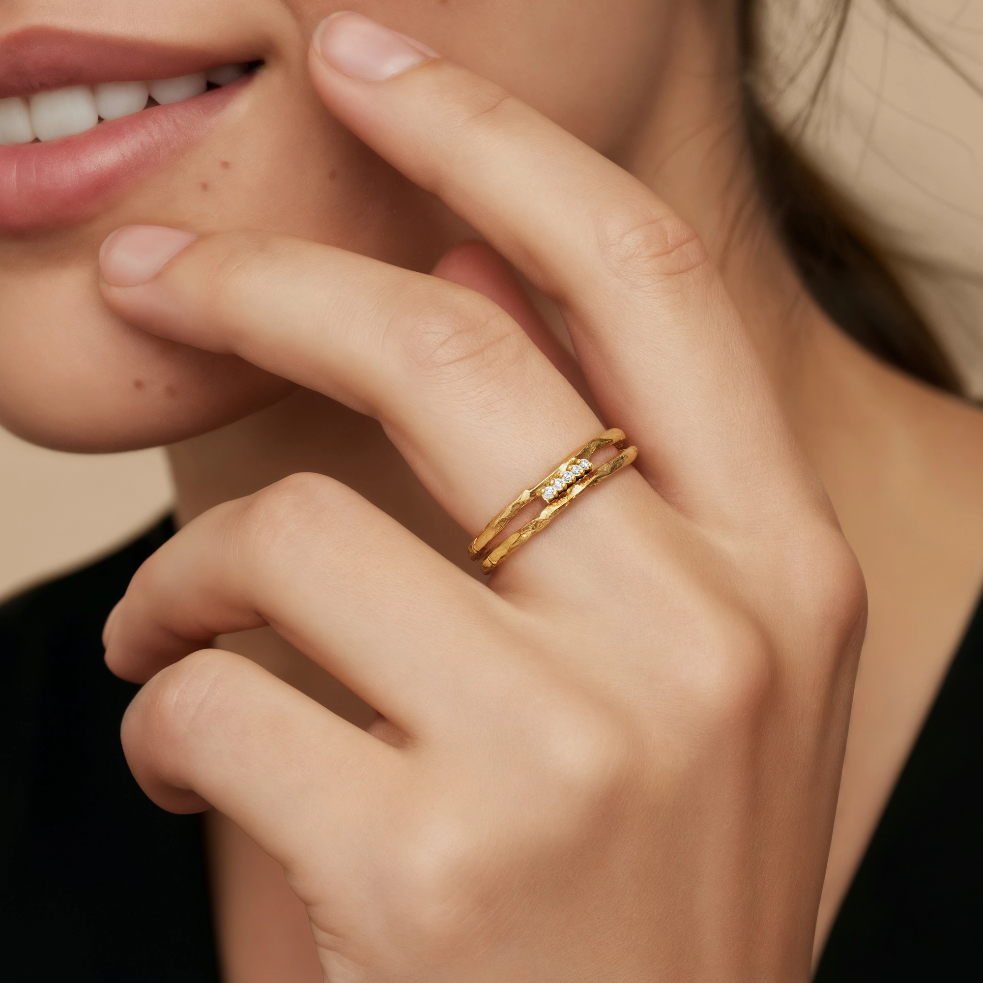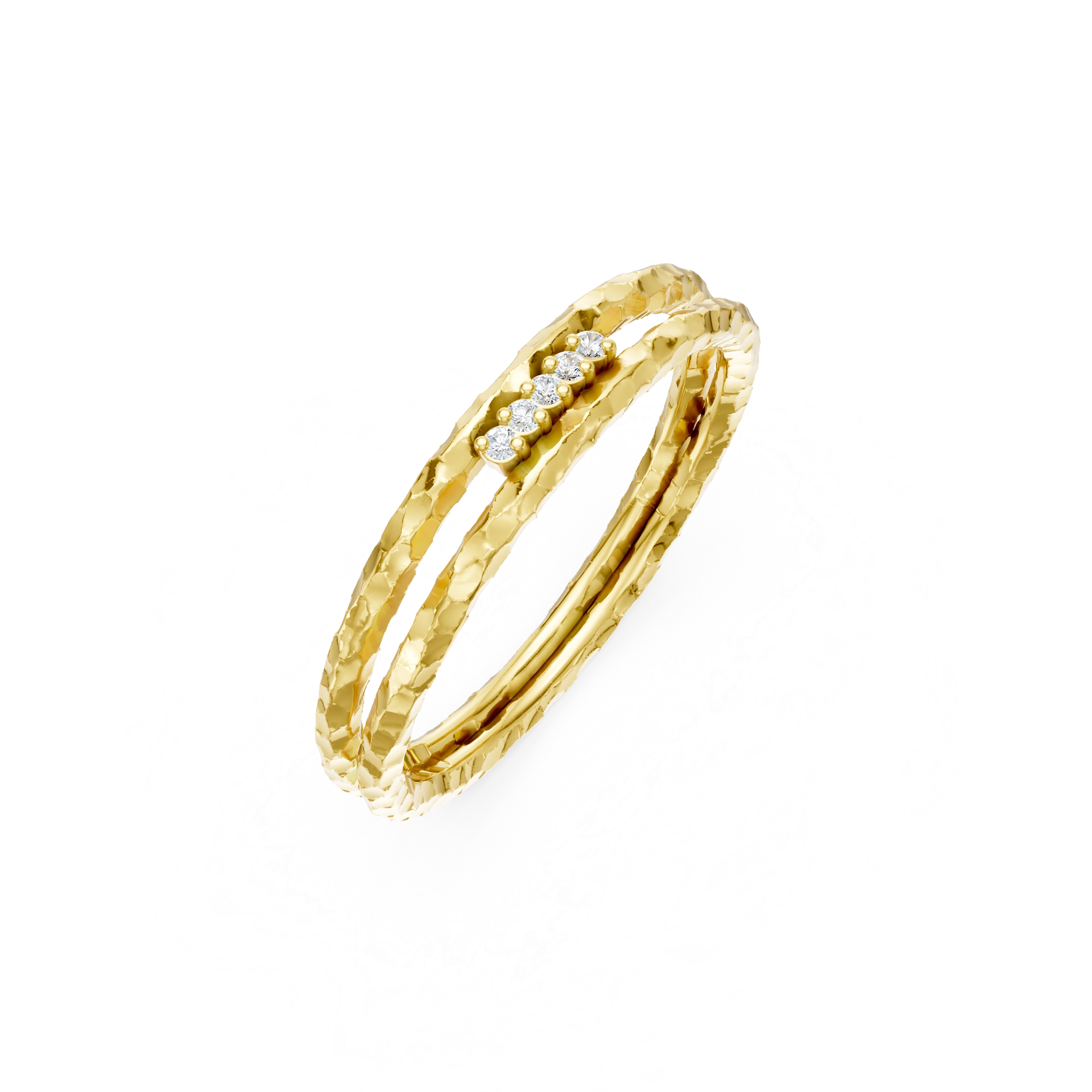Echoing the fierceness of the peacock’s powerful talons, this rings showcases a distinctive hammered textured shank split into two sleek tubes. 5x natural diamonds glint from the open space in between, perfectly balancing rugged texture with refined elegance. Combining raw strength with subtle sparkle — it’s a go-to piece for those unafraid to make a striking impression.