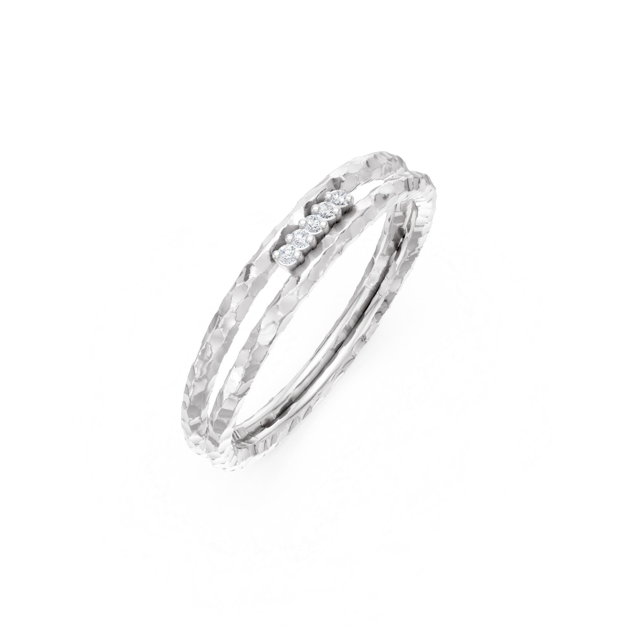 Echoing the fierceness of the peacock’s powerful talons, this rings showcases a distinctive hammered textured shank split into two sleek tubes. 5x natural diamonds glint from the open space in between, perfectly balancing rugged texture with refined elegance. Combining raw strength with subtle sparkle — it’s a go-to piece for those unafraid to make a striking impression.