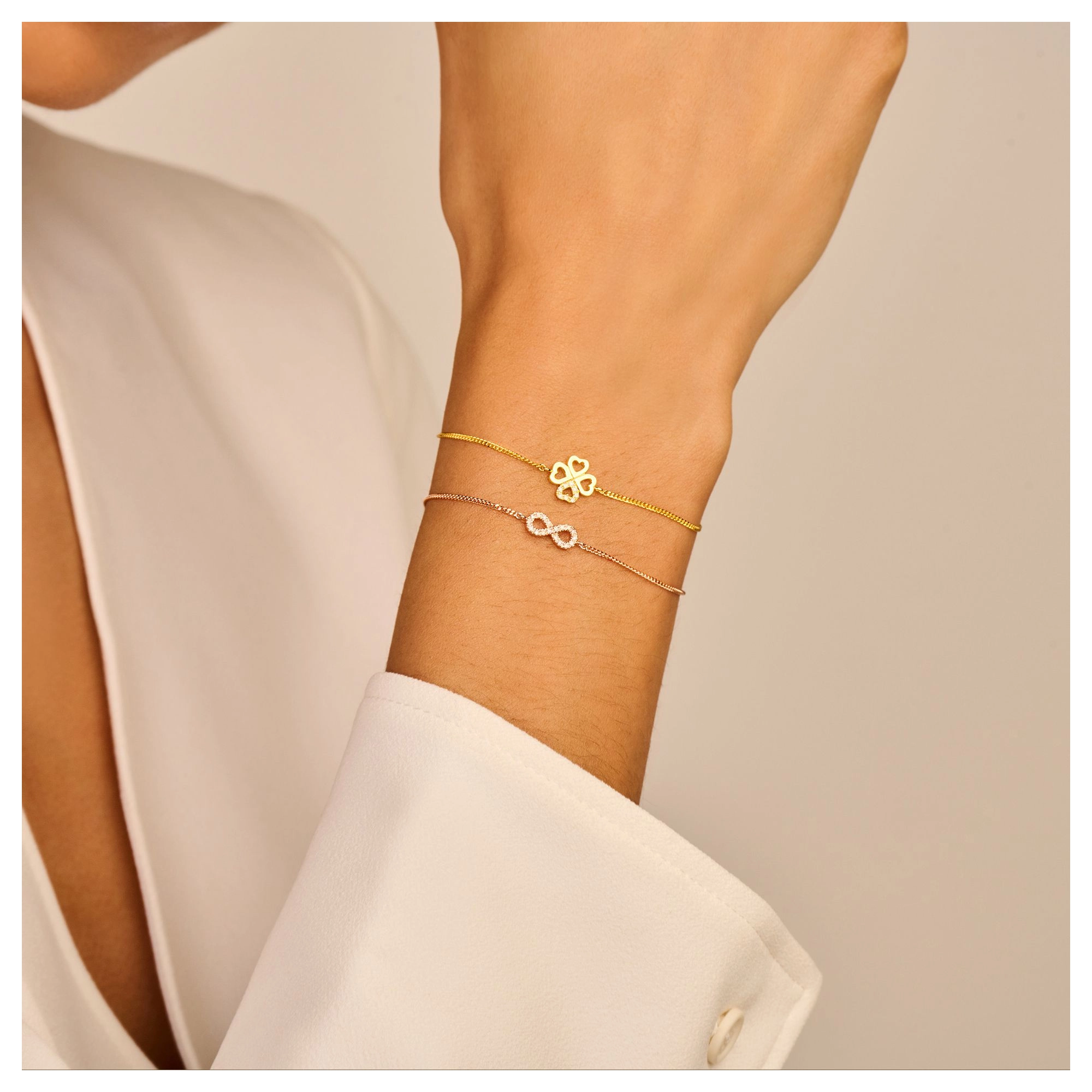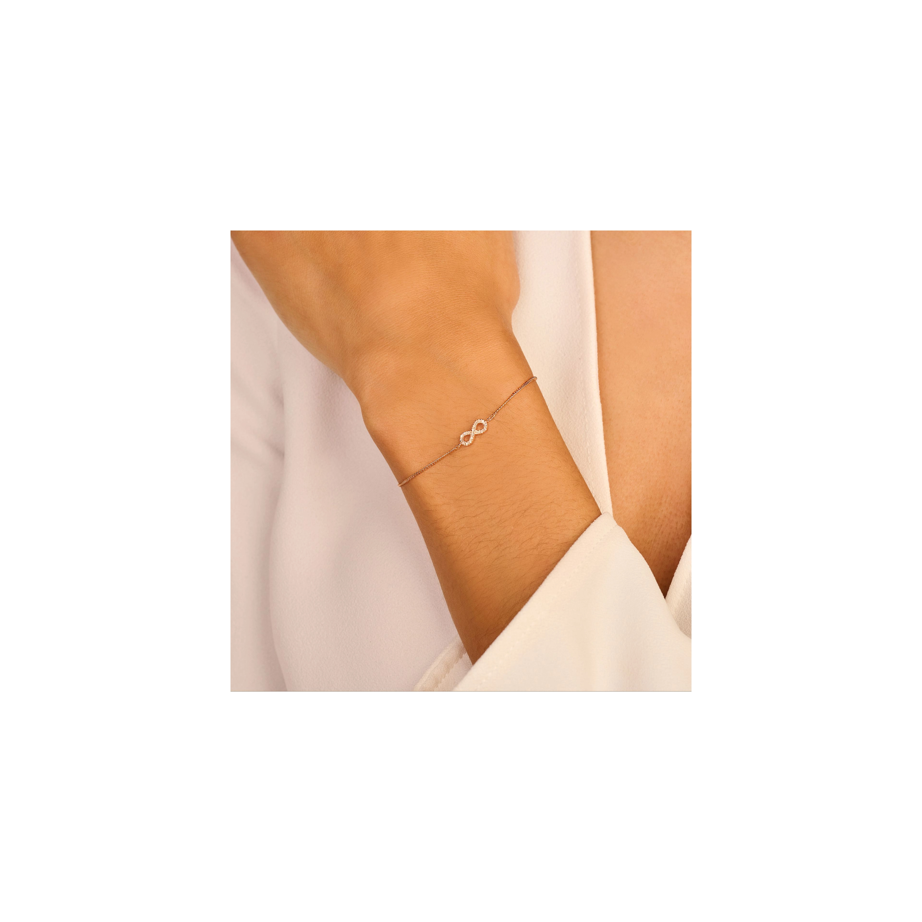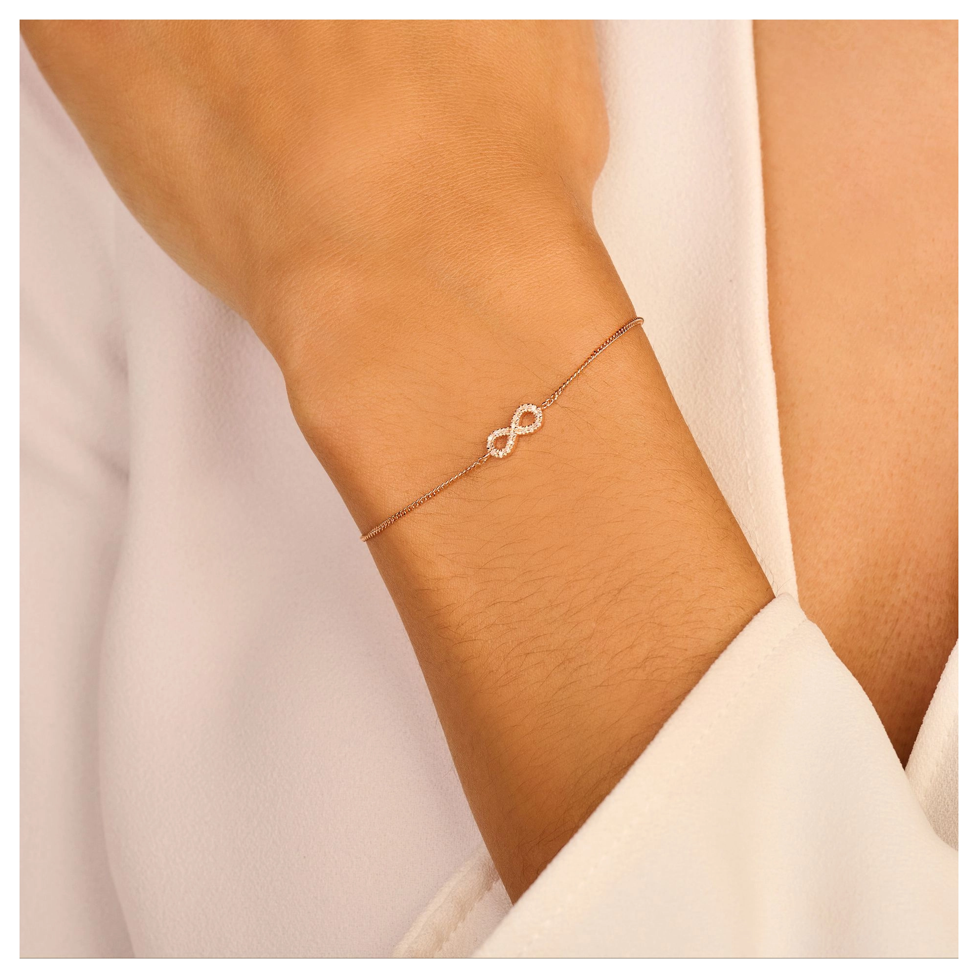 This worldwide symbol of infinity refers to a neverending love. It highlights 18x brilliant white diamonds, giving your love the dazzling glow it deserves. Available in both necklace and bracelet and an extra-large edition. Made in sterling silver, gilded with silver rhodium or 18 carat yellow or rose gold vermeil - just don't take forever to chose.
