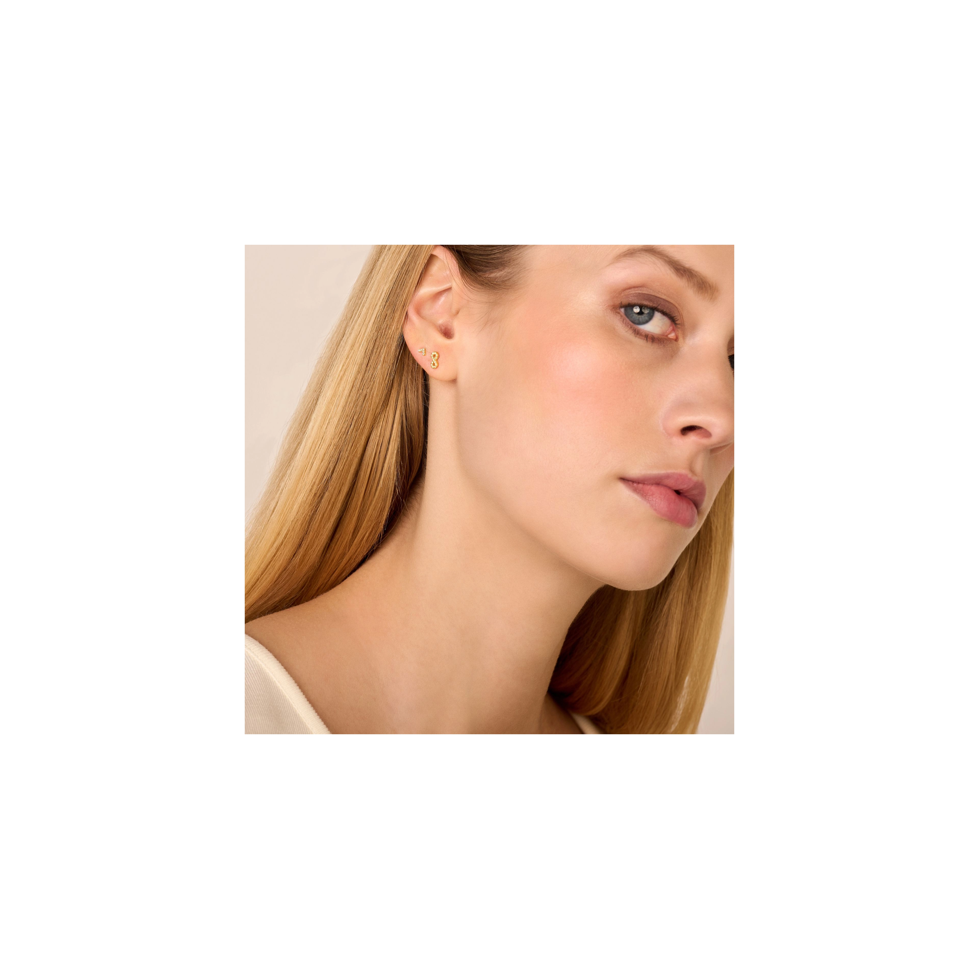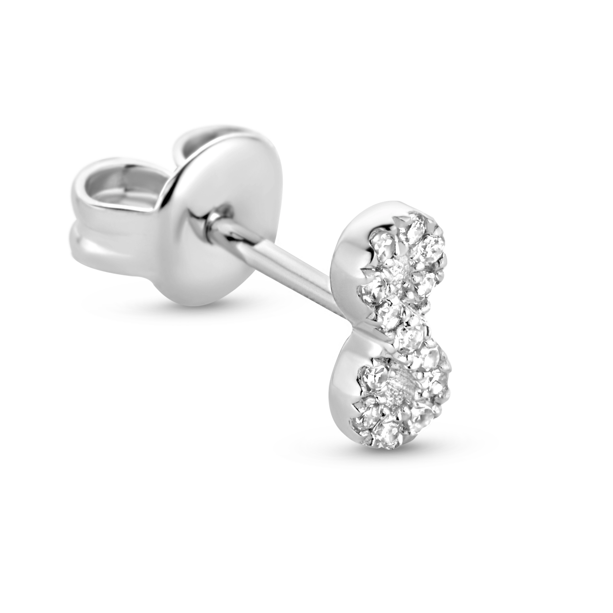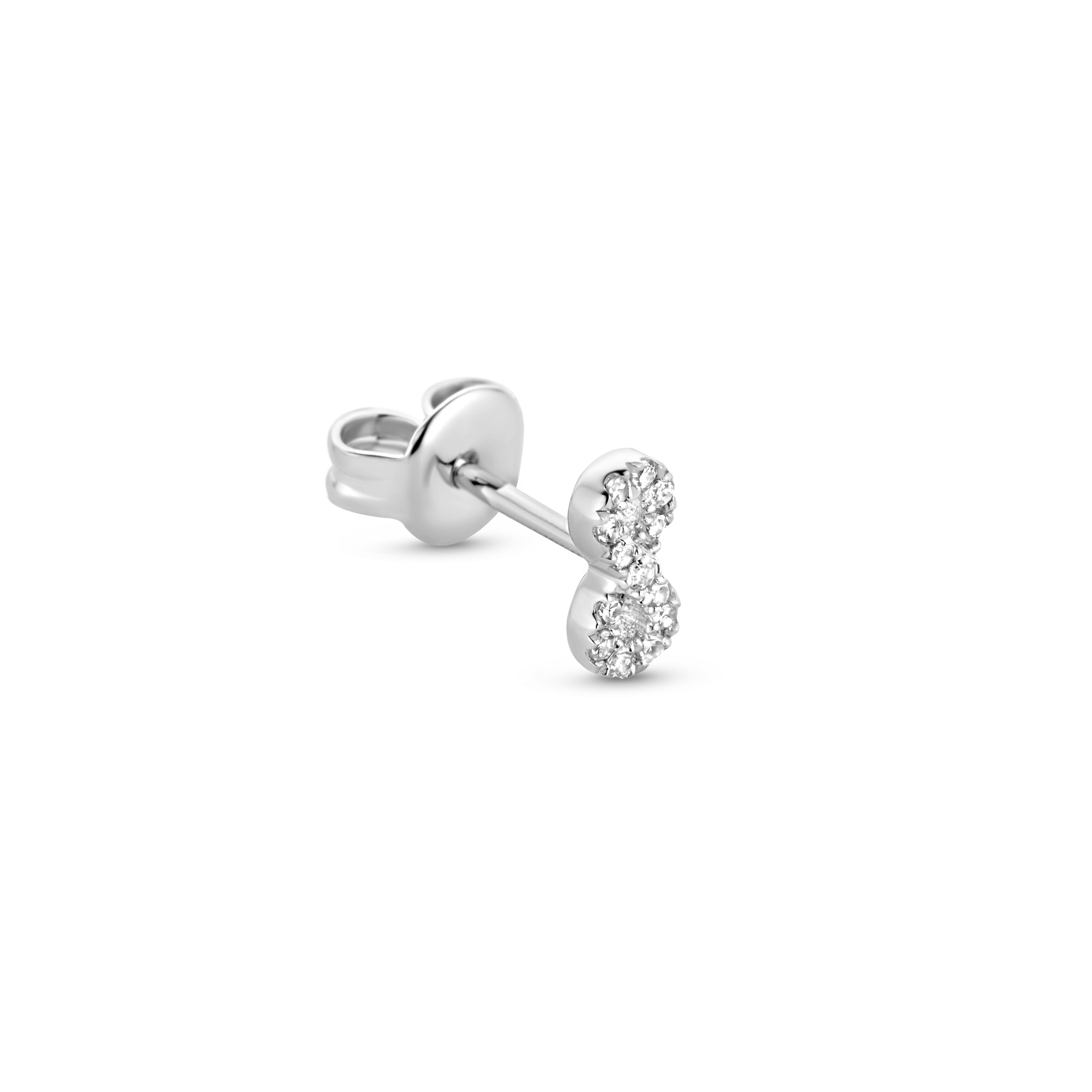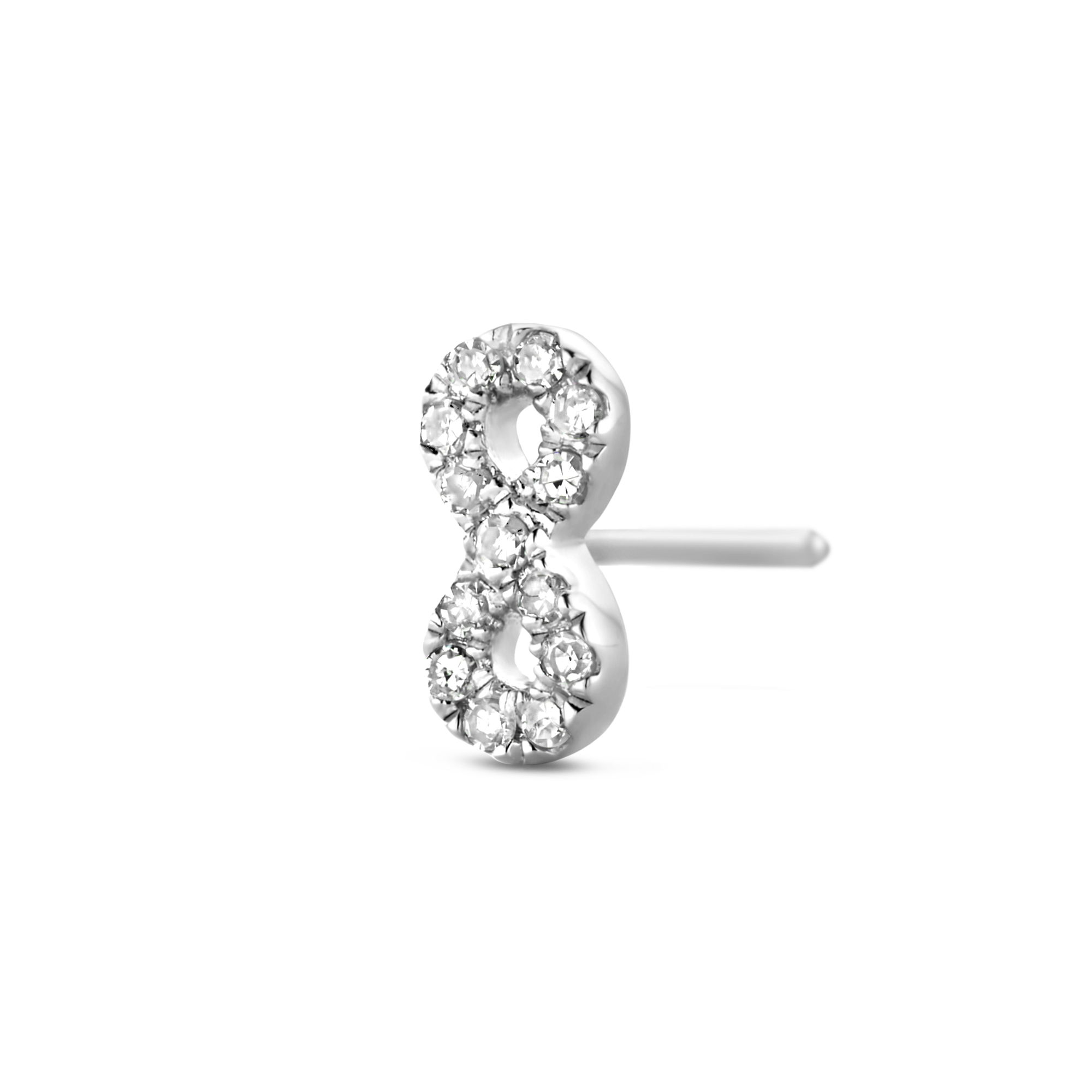 This worldwide symbol of infinity refers to a never ending love. This single earring highlights 12x brilliant white diamonds, giving your love the dazzling glow it deserves. Made in sterling silver, gilded with silver rhodium or 18 carat yellow or rose gold vermeil - just don't take forever to chose.