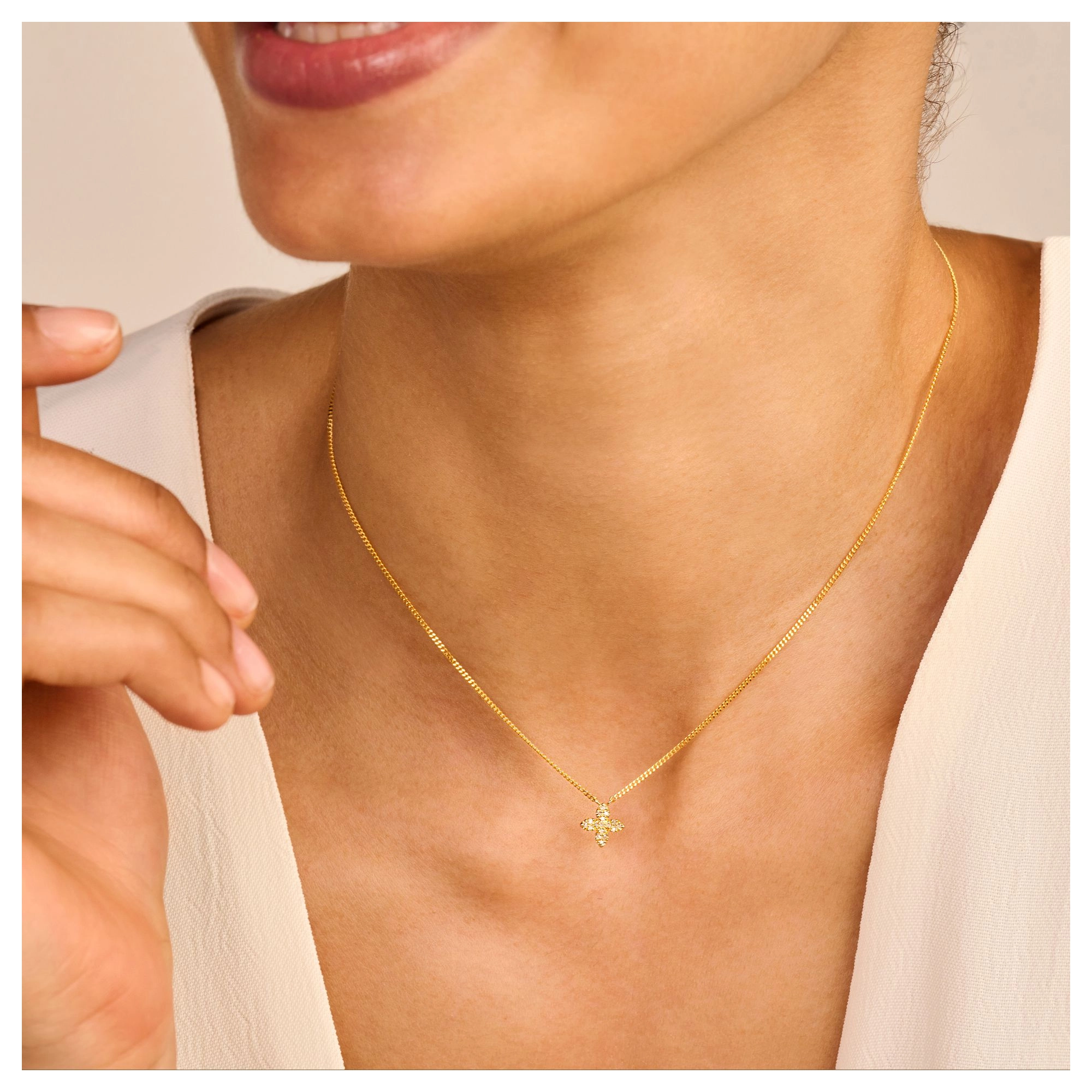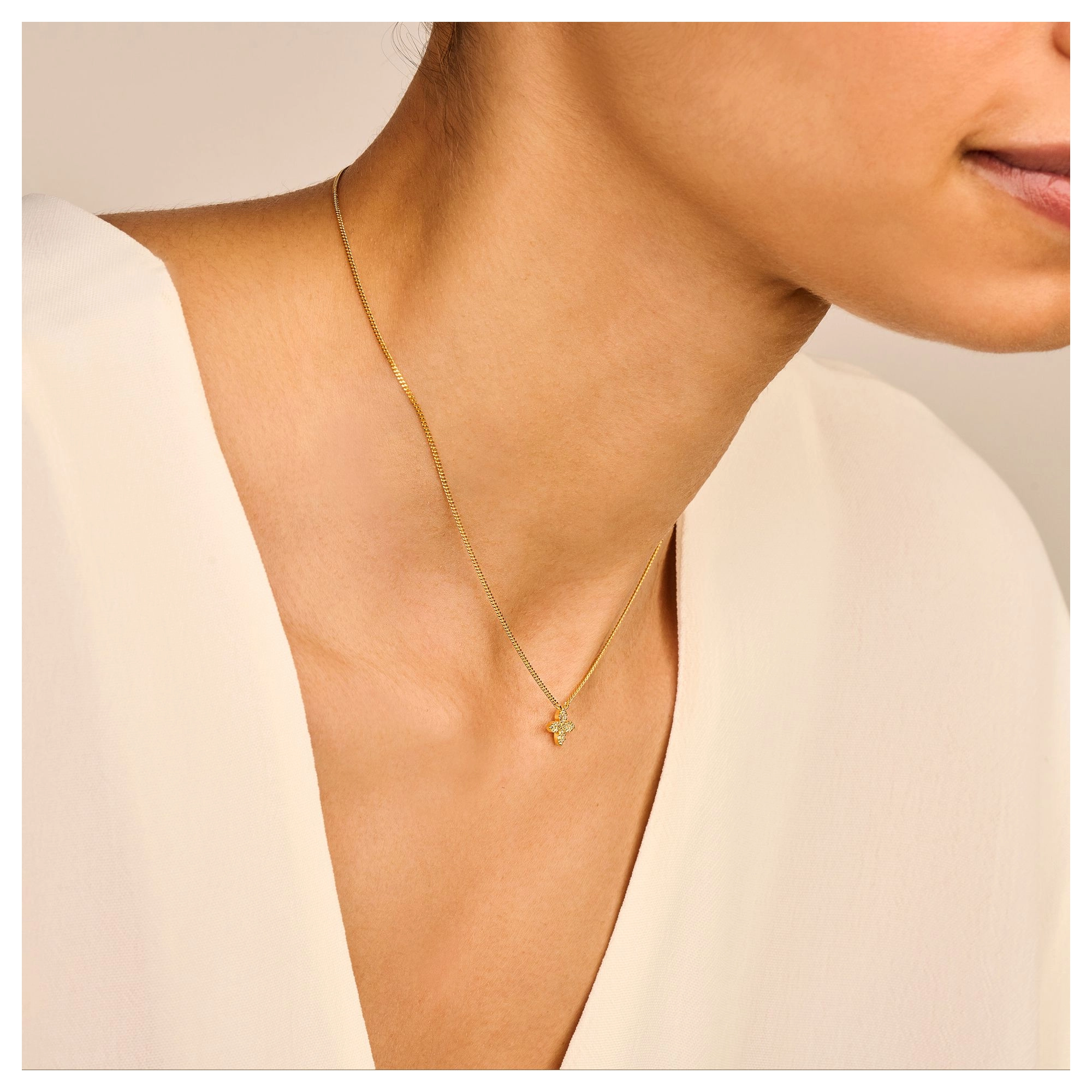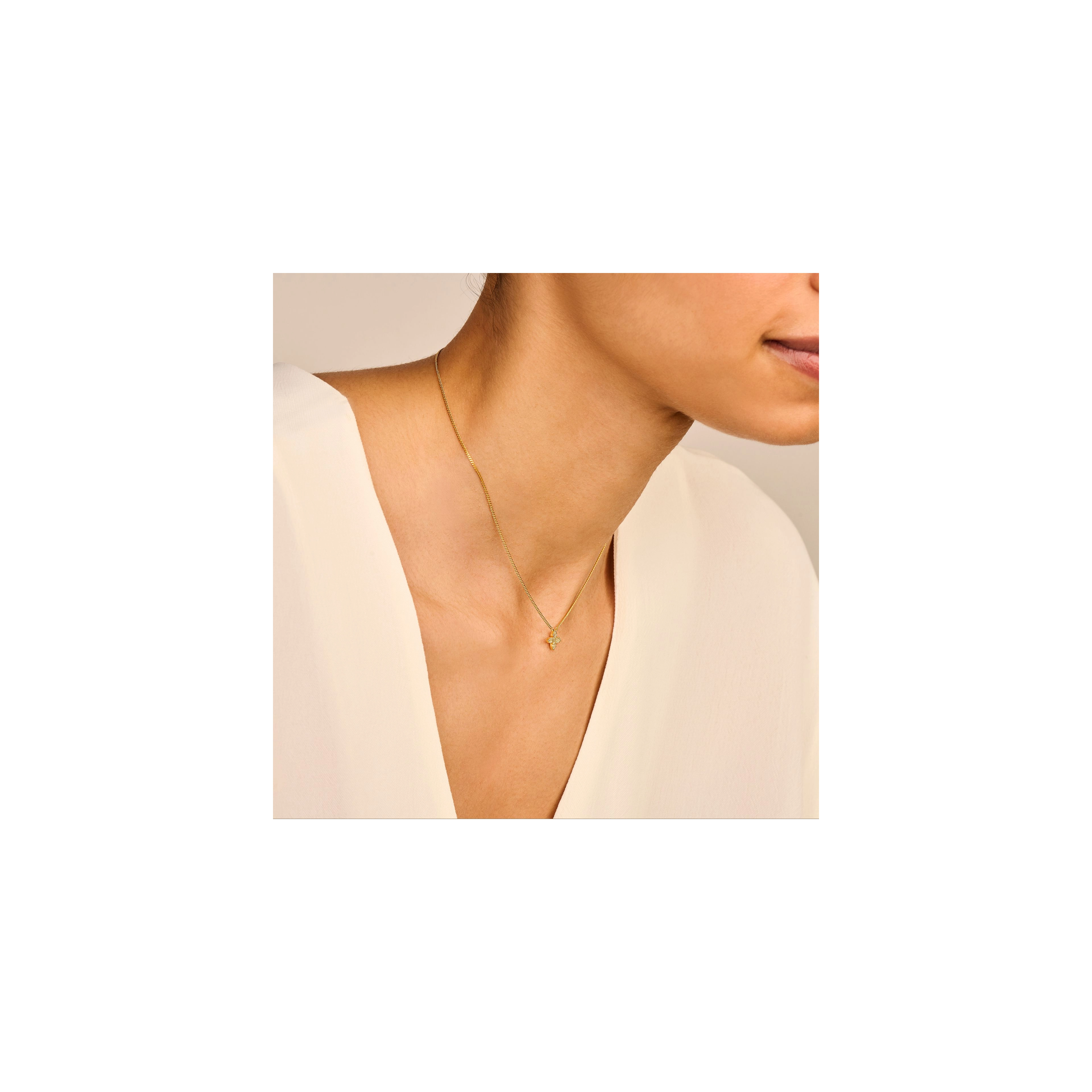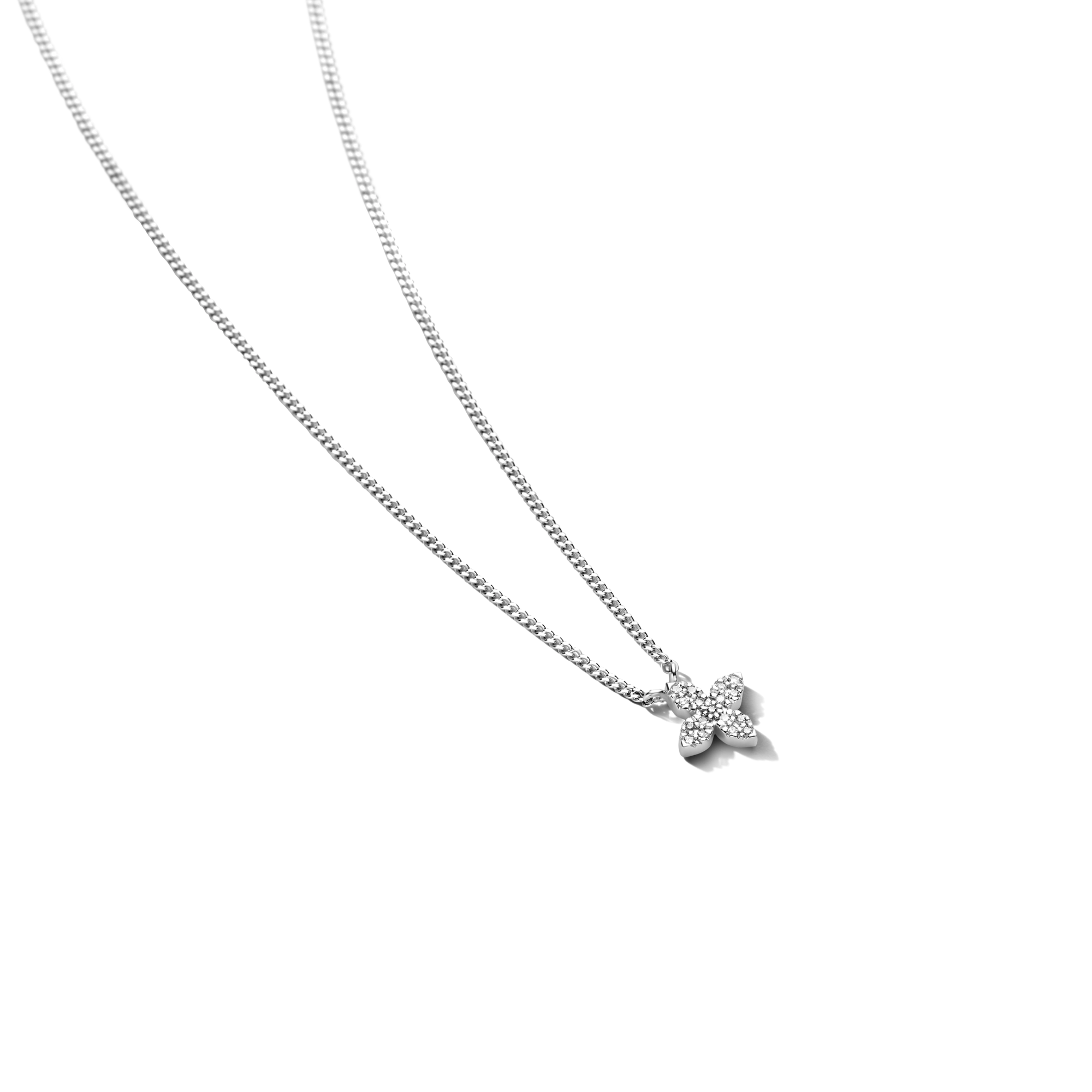 Flowers are one of the world's greatest sources of inspiration - elegant in each and every way, they light up the place and fill our hearts with instant joy and bliss. This cute Little Flower necklace with 17x flickering diamonds is no exception.