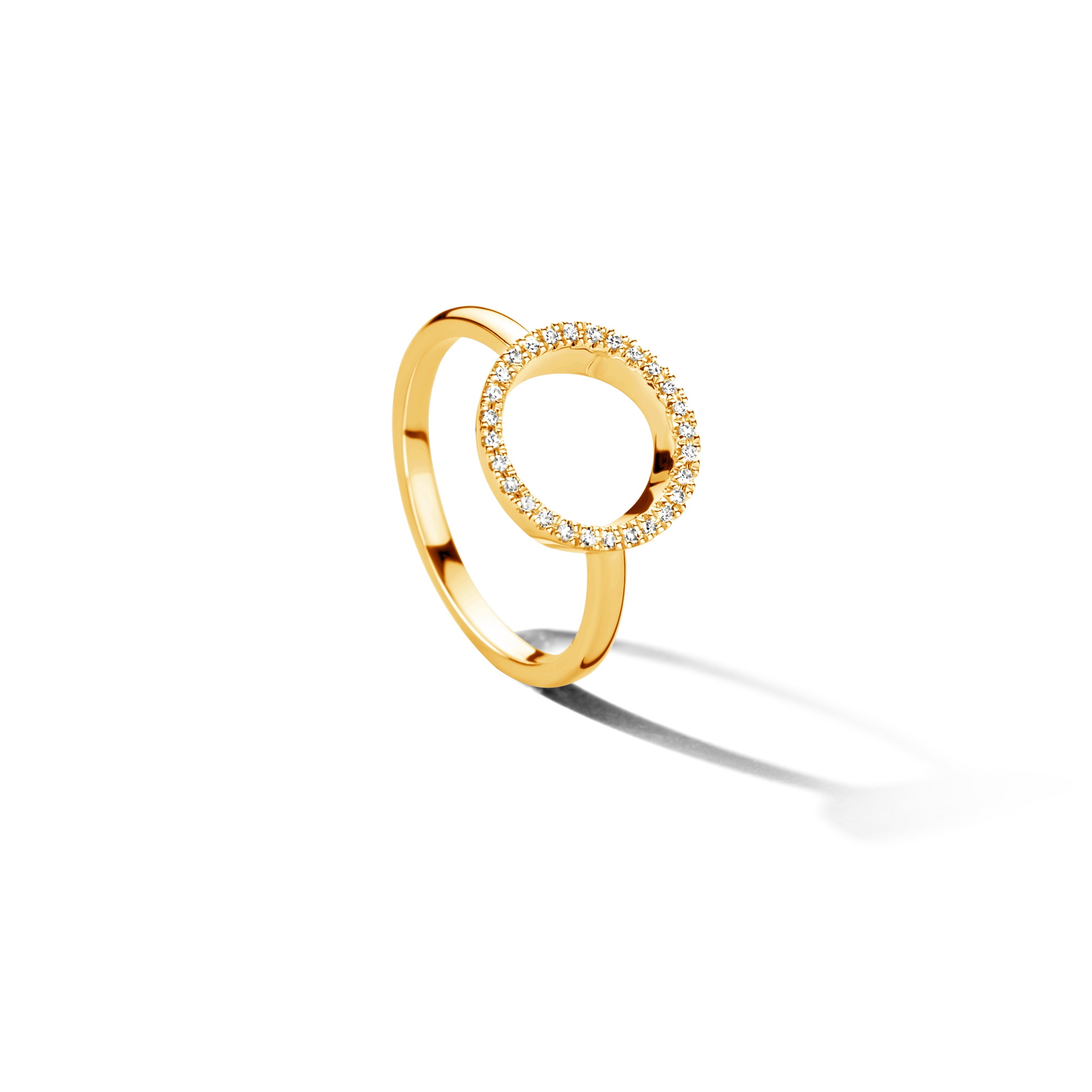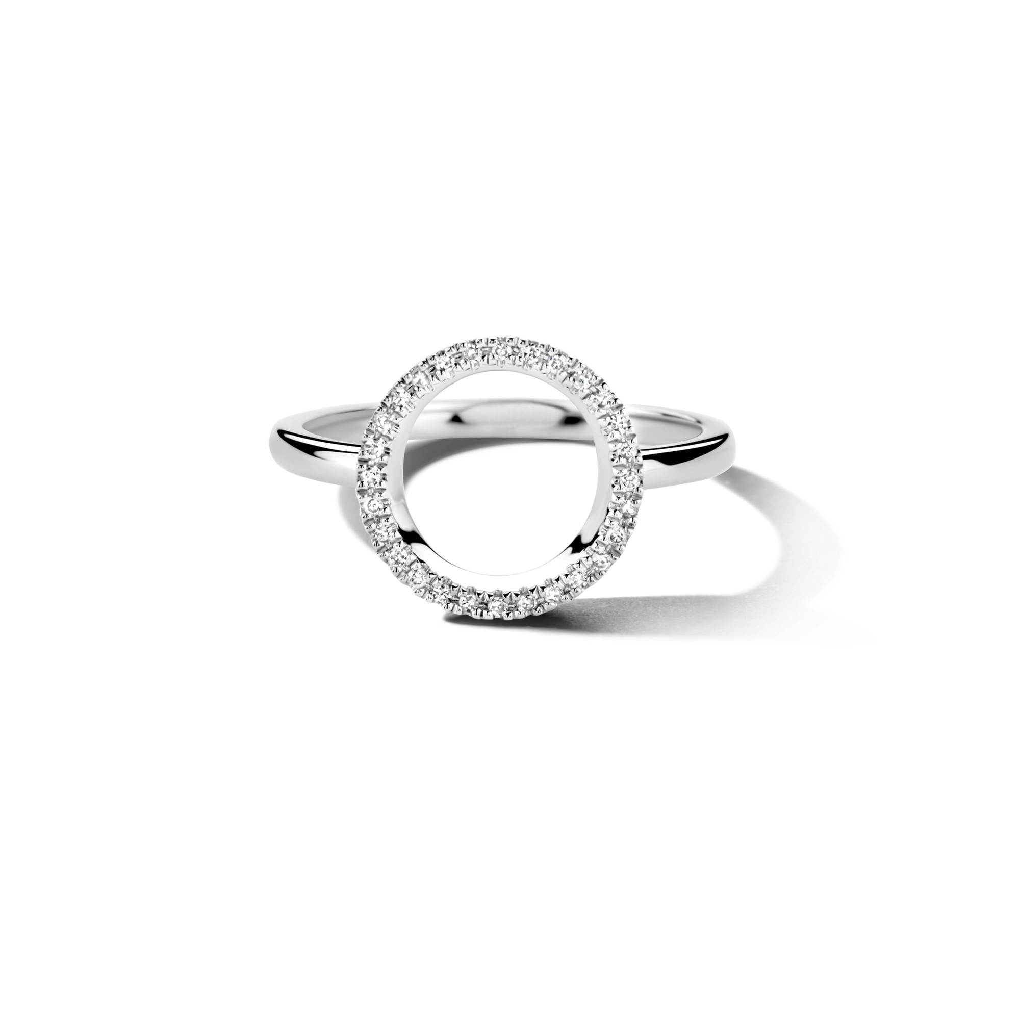 A circular design, symbolizing an infinite loop of magical moments that is life. Made in sterling silver, handset with 28x white diamonds and available in silver rhodium or 18 carat yellow or rose gold vermeil.