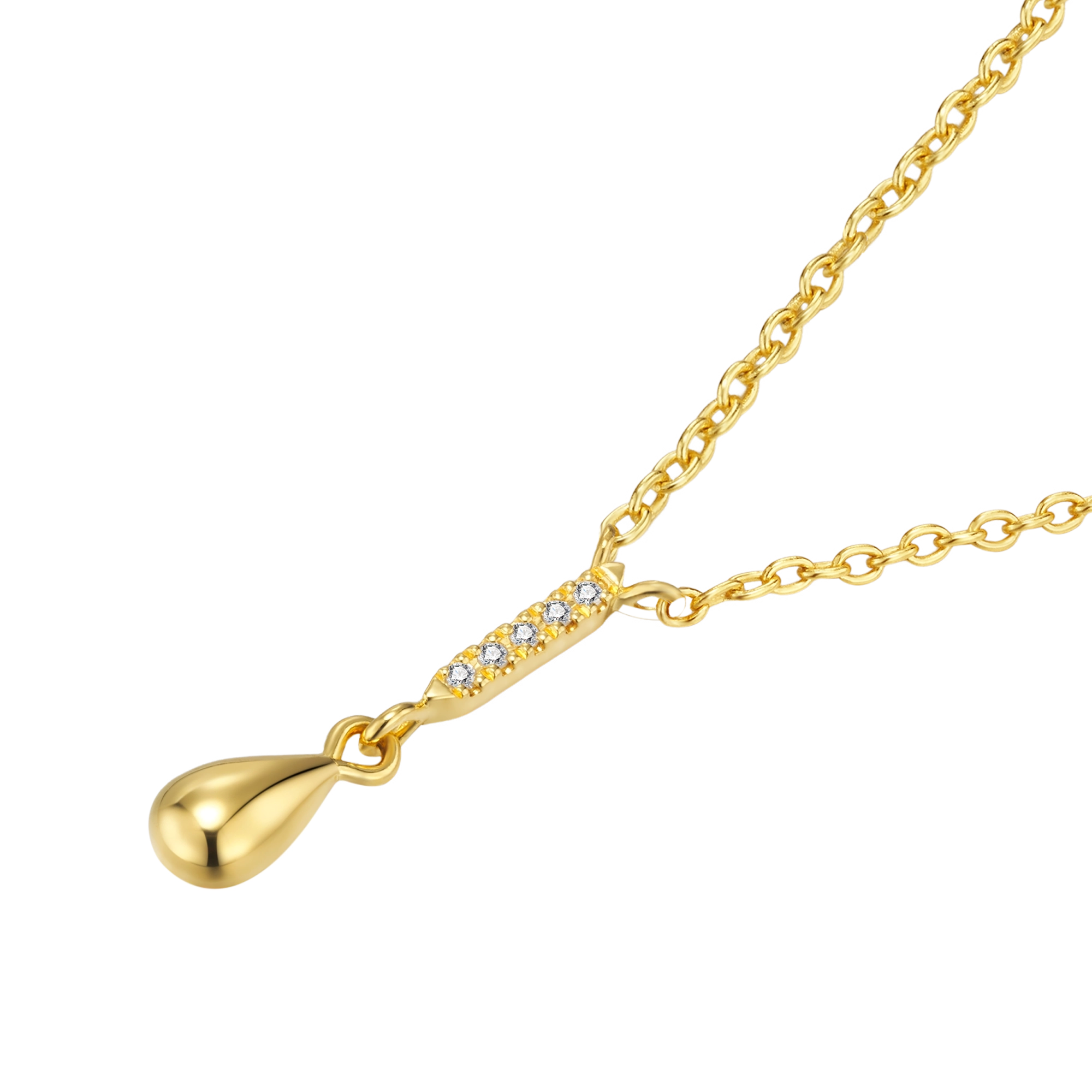 Featuring a brilliant centerpiece adorned with 5x exquisite white diamonds, cascading into a mesmerizing drip-shaped pendant – this necklace puts the ‘drip’ into ‘dripping in diamonds’. A captivating dance of light and movement– crafted for those who appreciate timeless beauty with a contemporary twist.