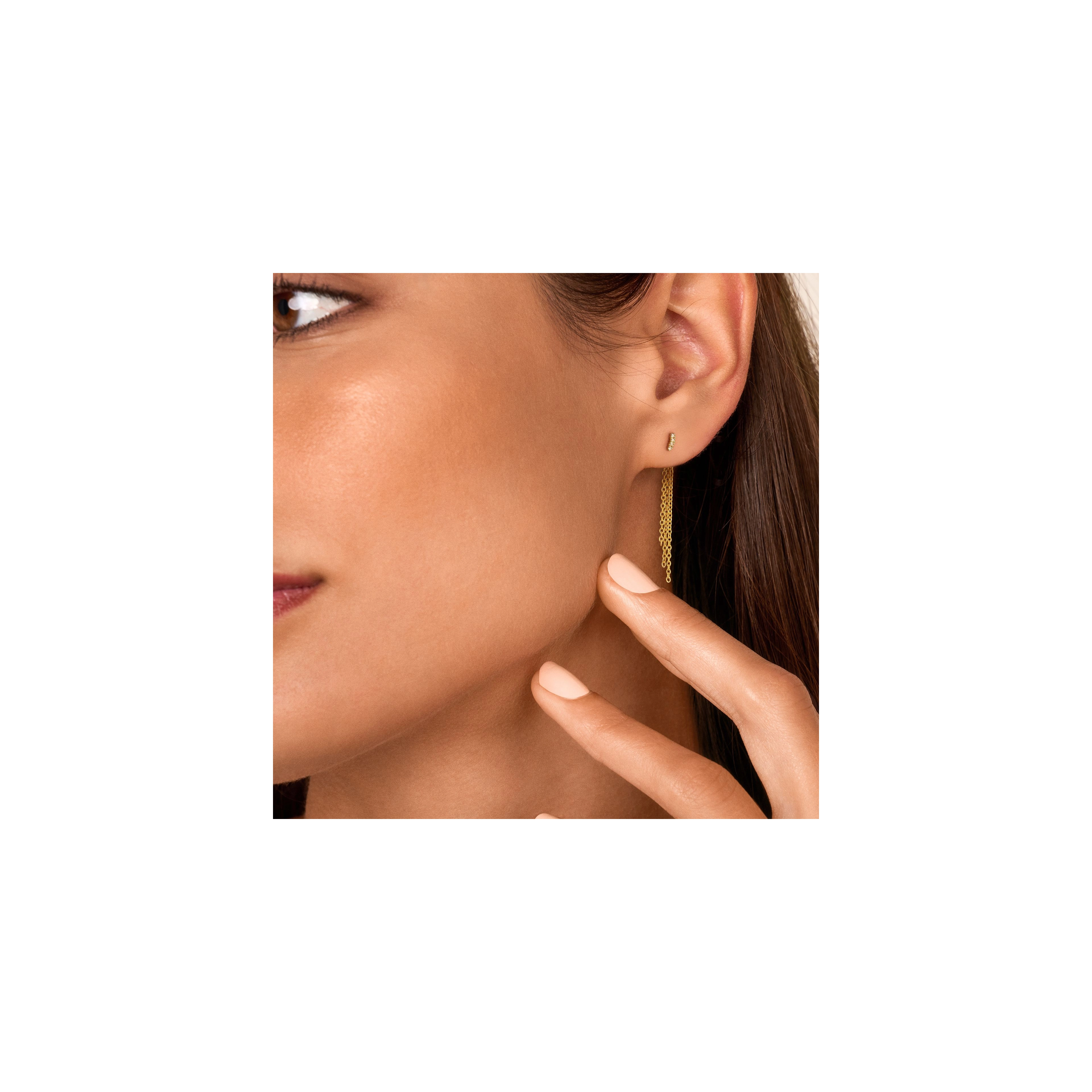 A curved stud piece, made of 4x shimmering white diamonds and a subtle waterfall of chains, making this playful trinket a perfect fit for day-to-night styling.