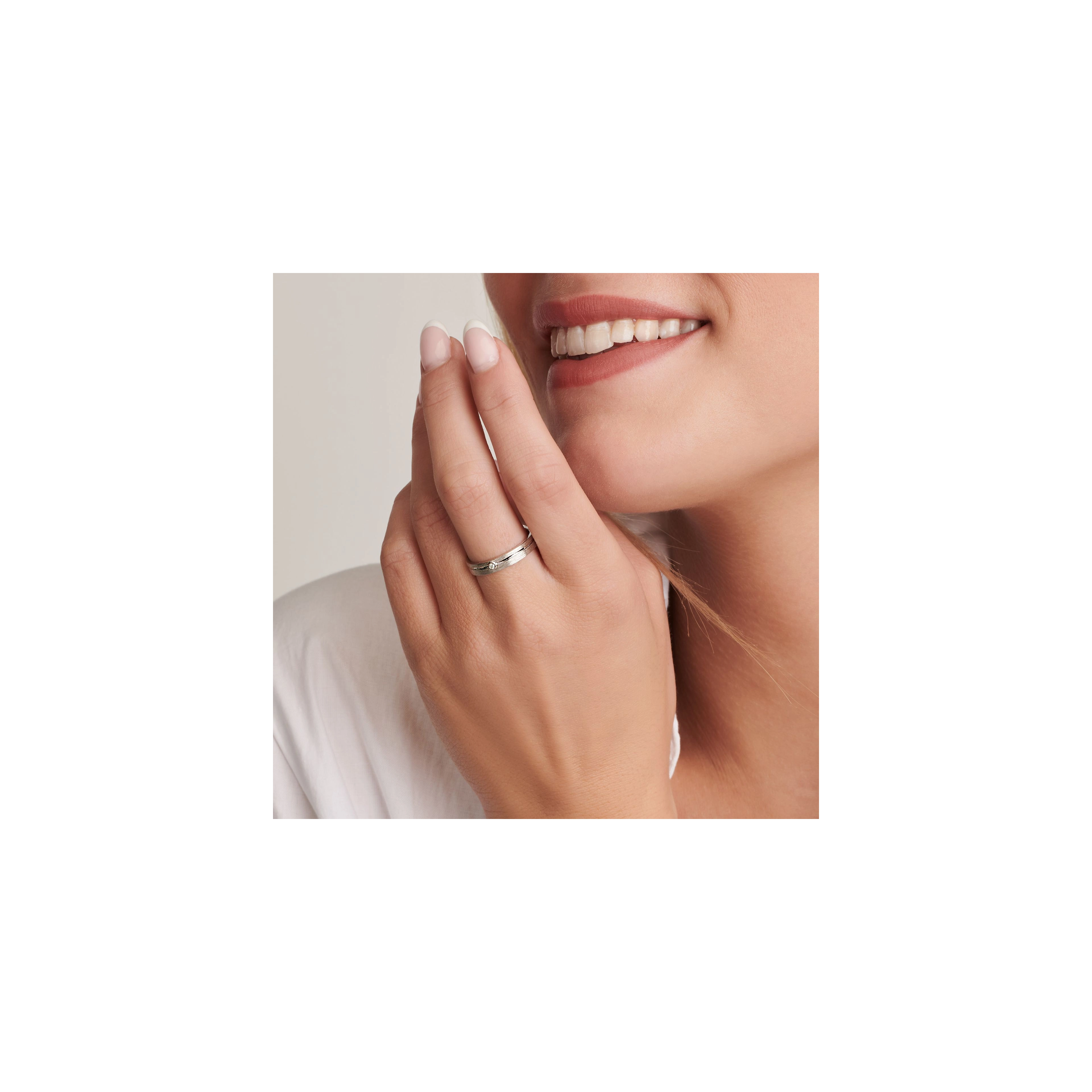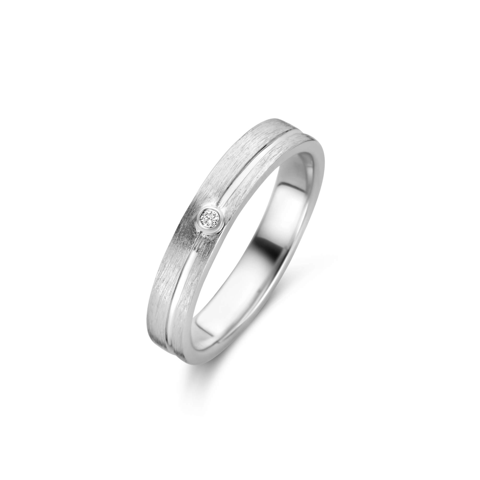 This delightful wedding ring with a precious diamond in the centre is a more intimate way of expressing your profound love. A polished line is engraved along the entire band of this brushed ring. Like your significant other, you will cherish and treasure this gorgeous piece forever. Are you looking for a subtle way to make your rings more unique? Customize your rings with our free engraving service.