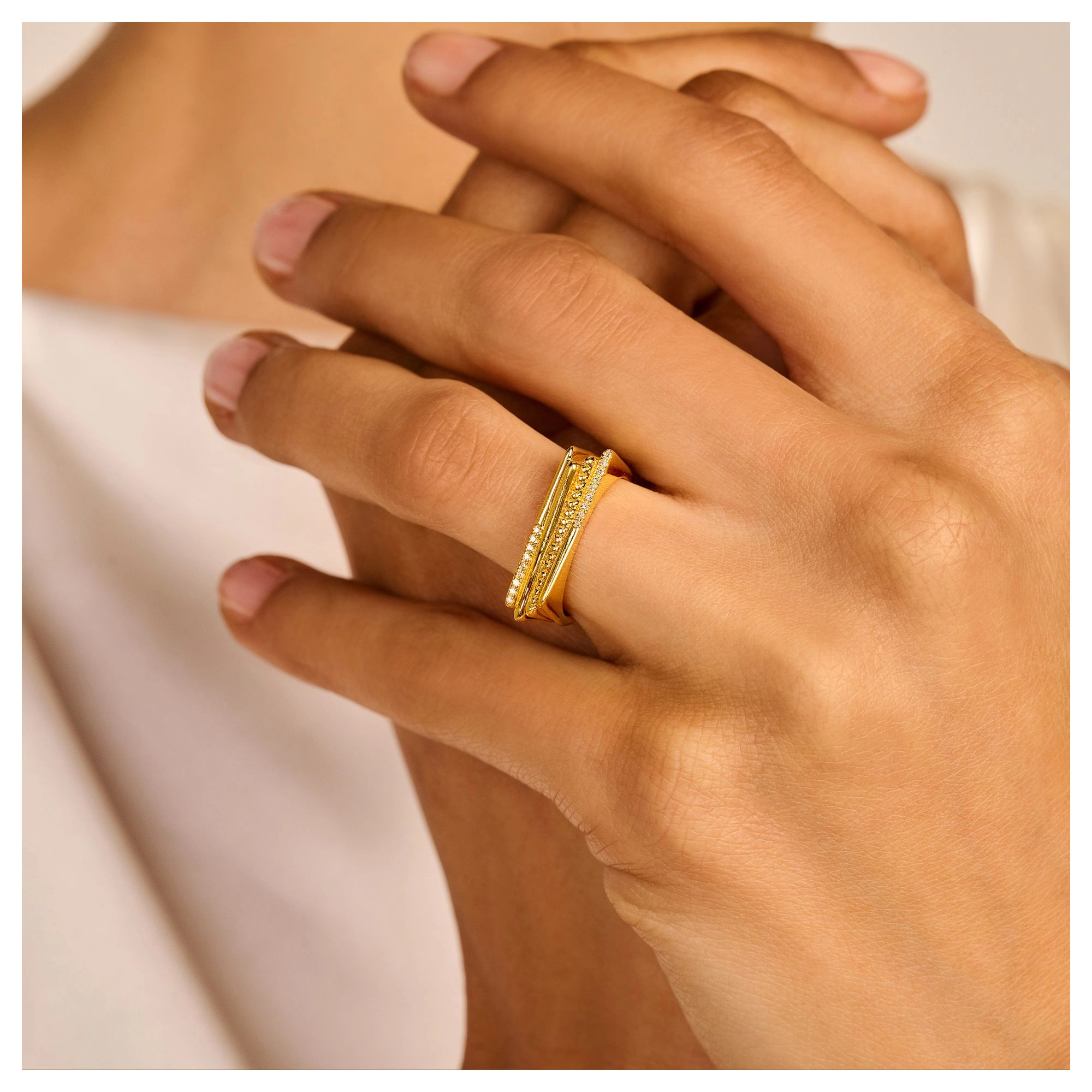 We also exclusively work with RJC- certified suppliers, maximizing the use of natural materials in mindful conditions, considering waste management and essential recycling.