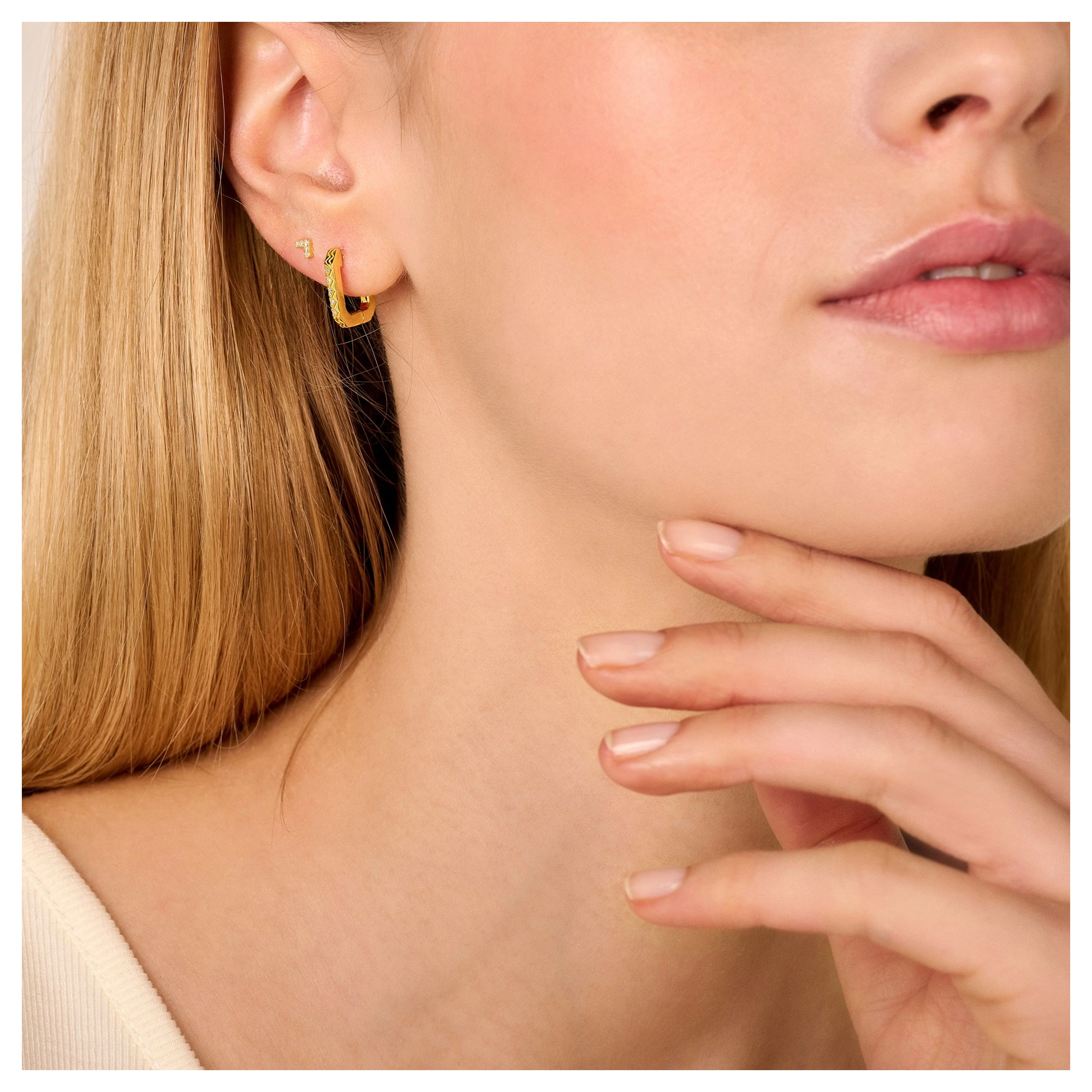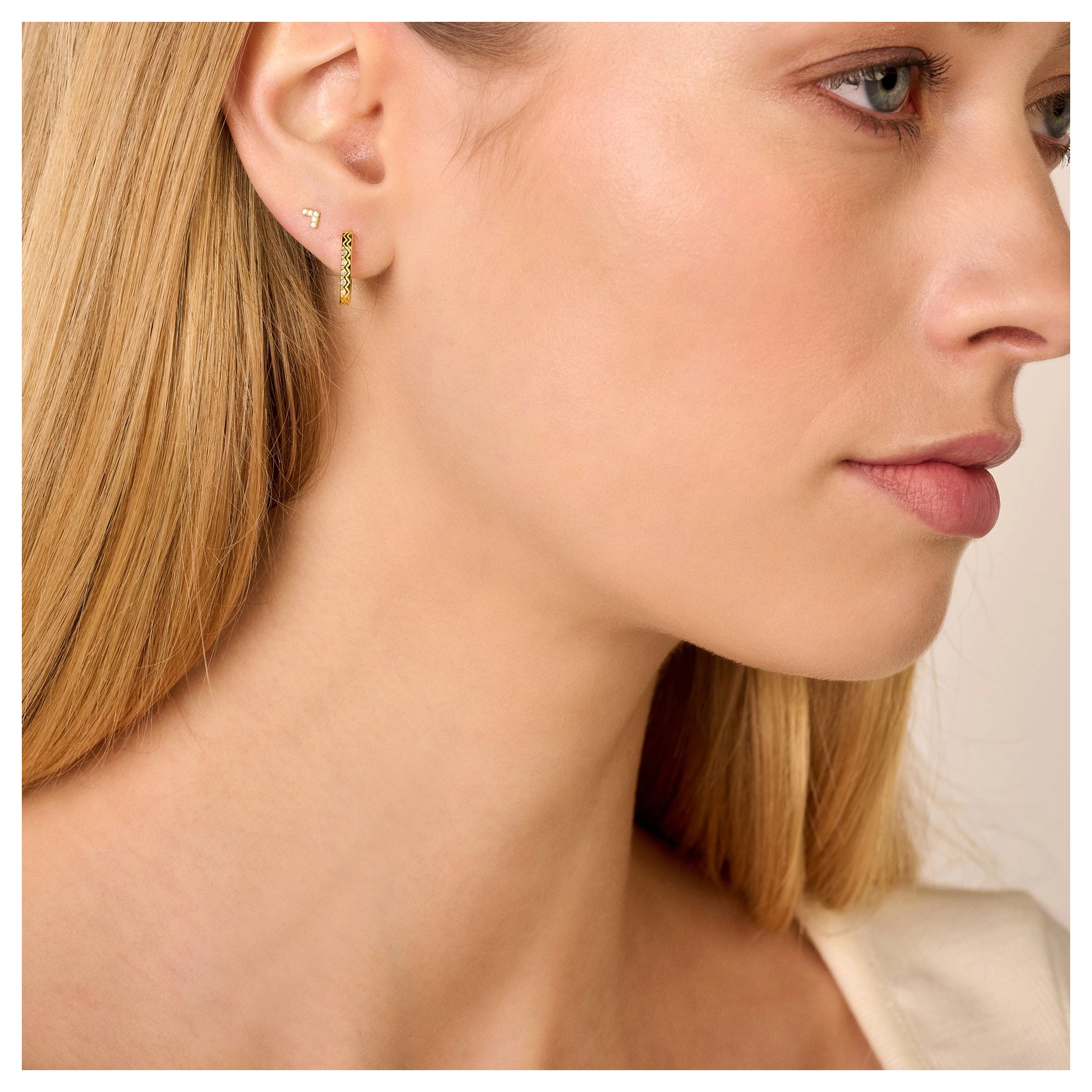 A rectangular single hoop for a sleek and contemporary ear stack. A new shape, with the diamonds you know and love.Styling tip: Pair it up with our Endless hugging hoop, Break-Away earrings or Agra stud.