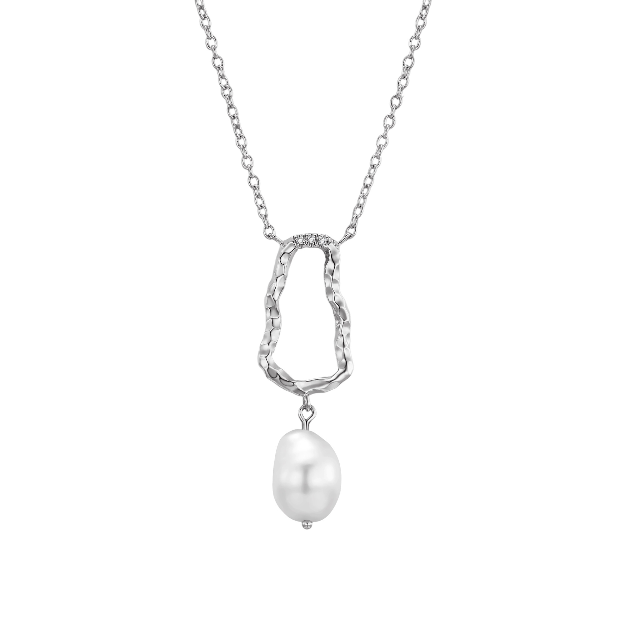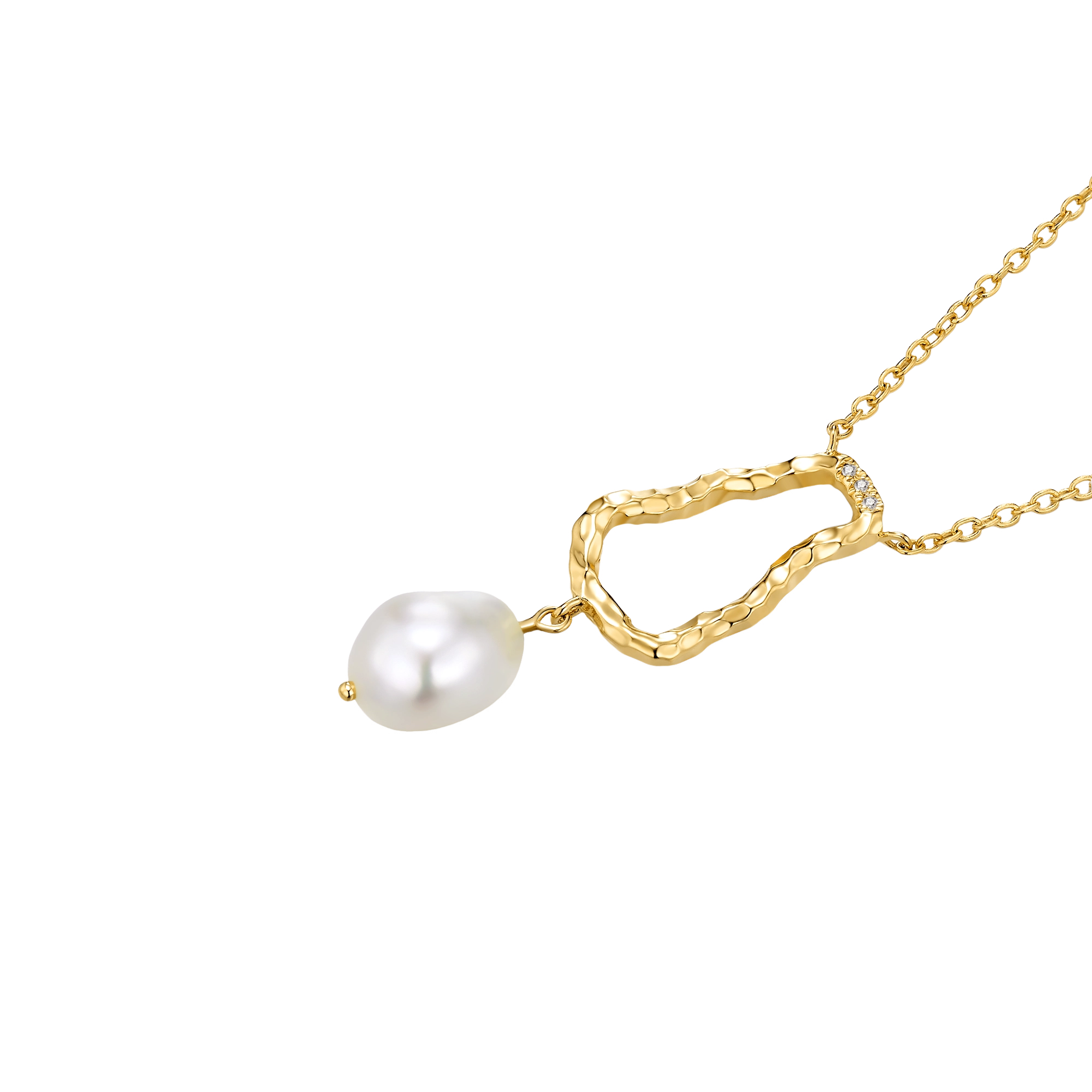 Introducing our Belle set as the epitome of perpetual beauty. An organically shaped oval centerpiece at its core, handset with 3x sparkling diamonds and finished by a unique hammered texture, while a baroque pearl pendant brings out the most enchanting of flairs. STYLING TIP Diamonds and pearls are the dynamic duo of the jewelry world – always a perfect match and never a fashion faux pas in sight.