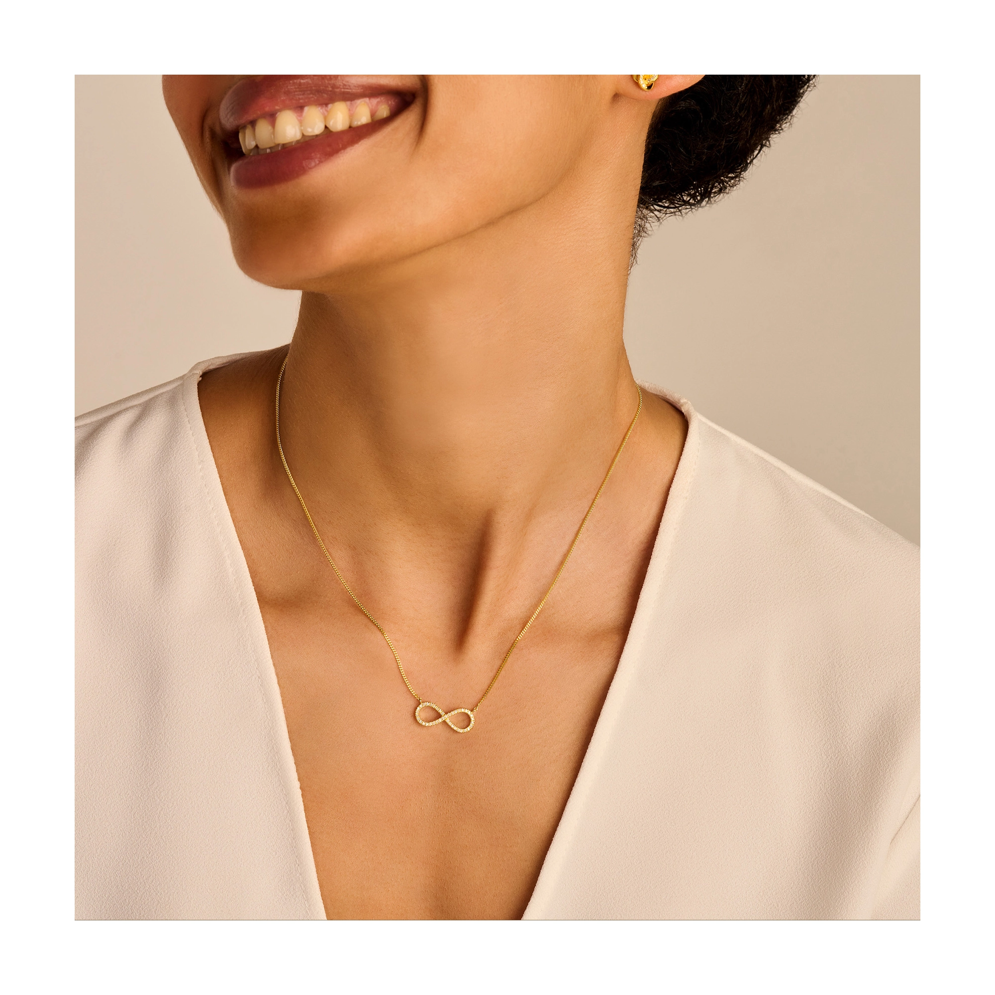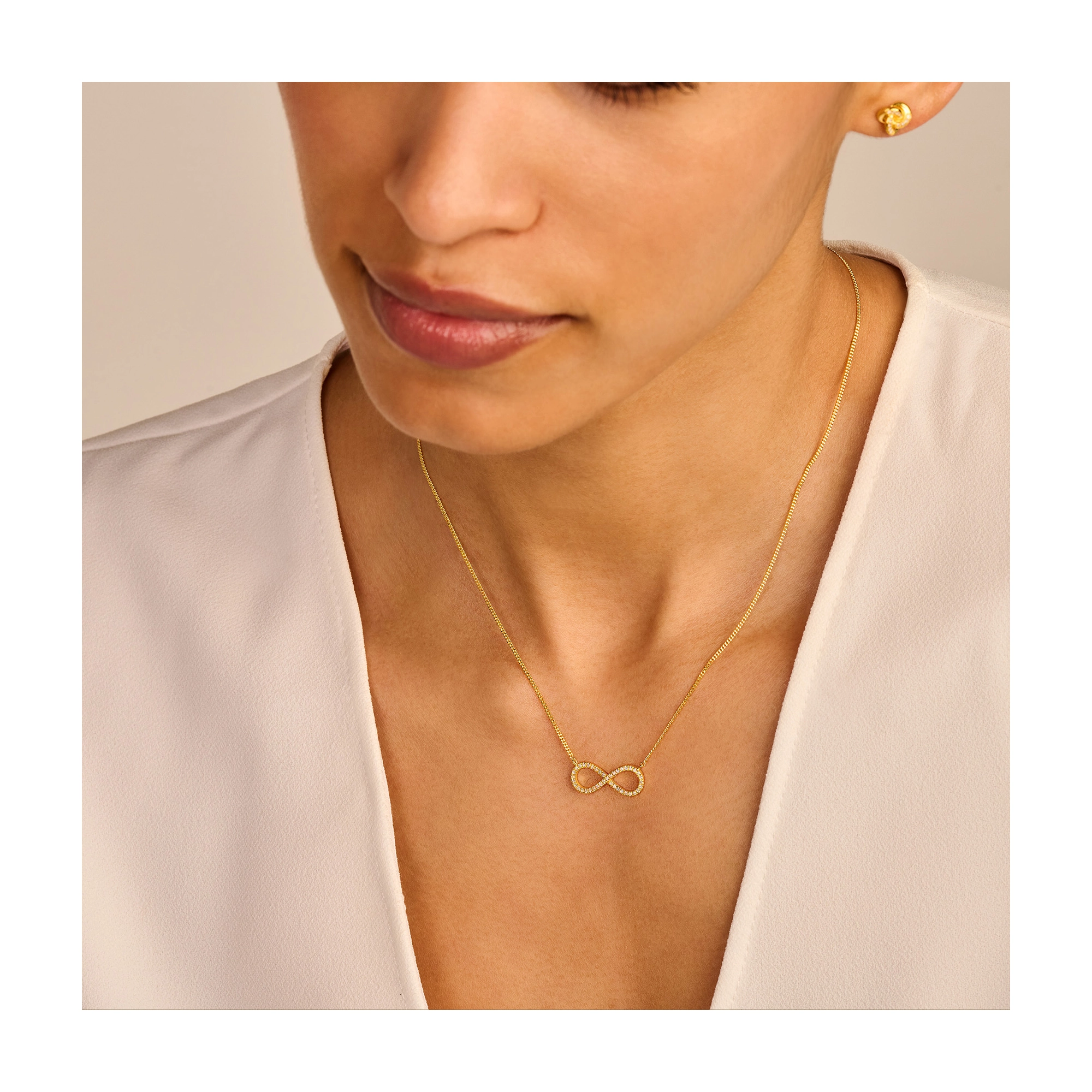 This worldwide symbol of infinity refers to a never ending love. It highlights no less than 40x brilliant white diamonds, giving your love the dazzling glow it deserves. Available in both necklace and bracelet - made in sterling silver, gilded with silver rhodium or 18 carat yellow or rose gold vermeil - just don't take forever to chose.