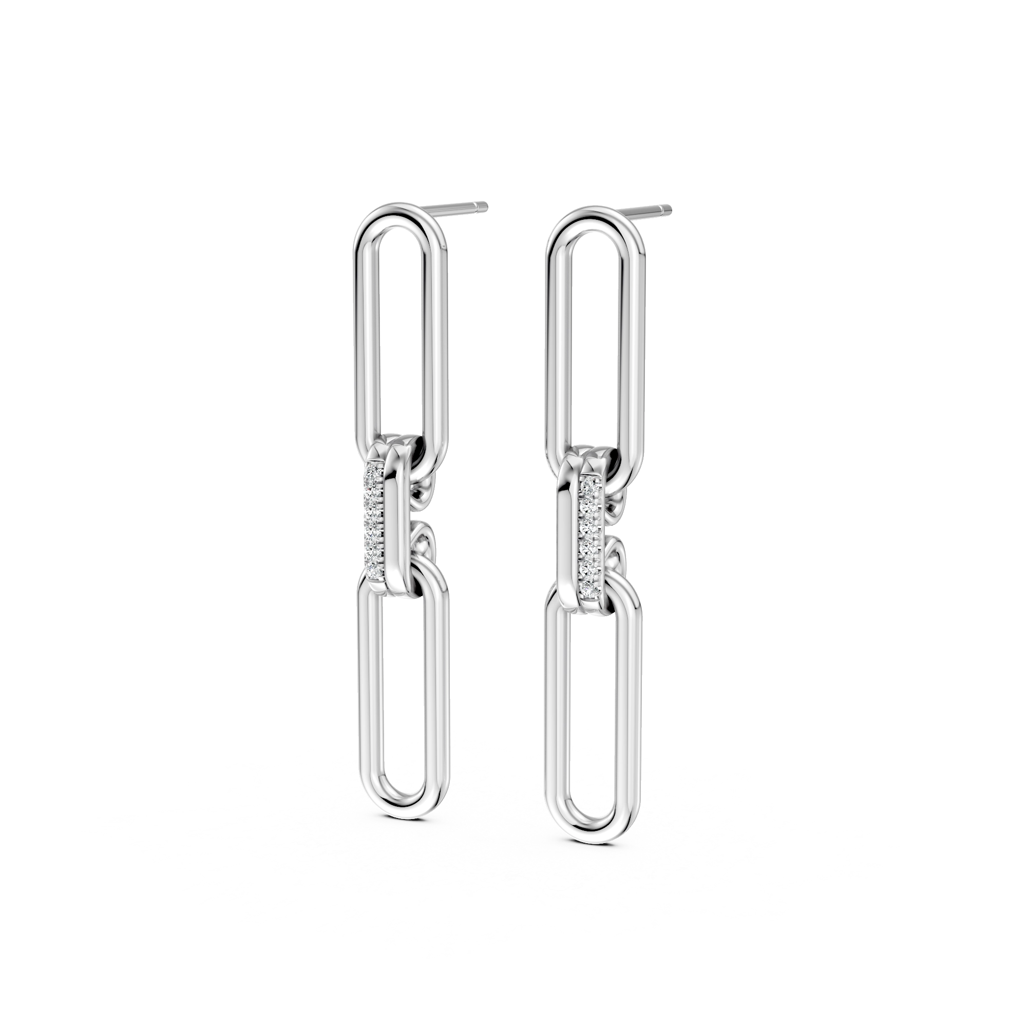 Clean lines with a hint of sparkle, these drop earrings feature elongated gold links accented with white diamonds. The fluid design moves gracefully, catching the light in a subtle, effortless way. Crafted in 925 sterling silver, they’re an easy choice for adding a modern yet refined touch to both day and evening looks.