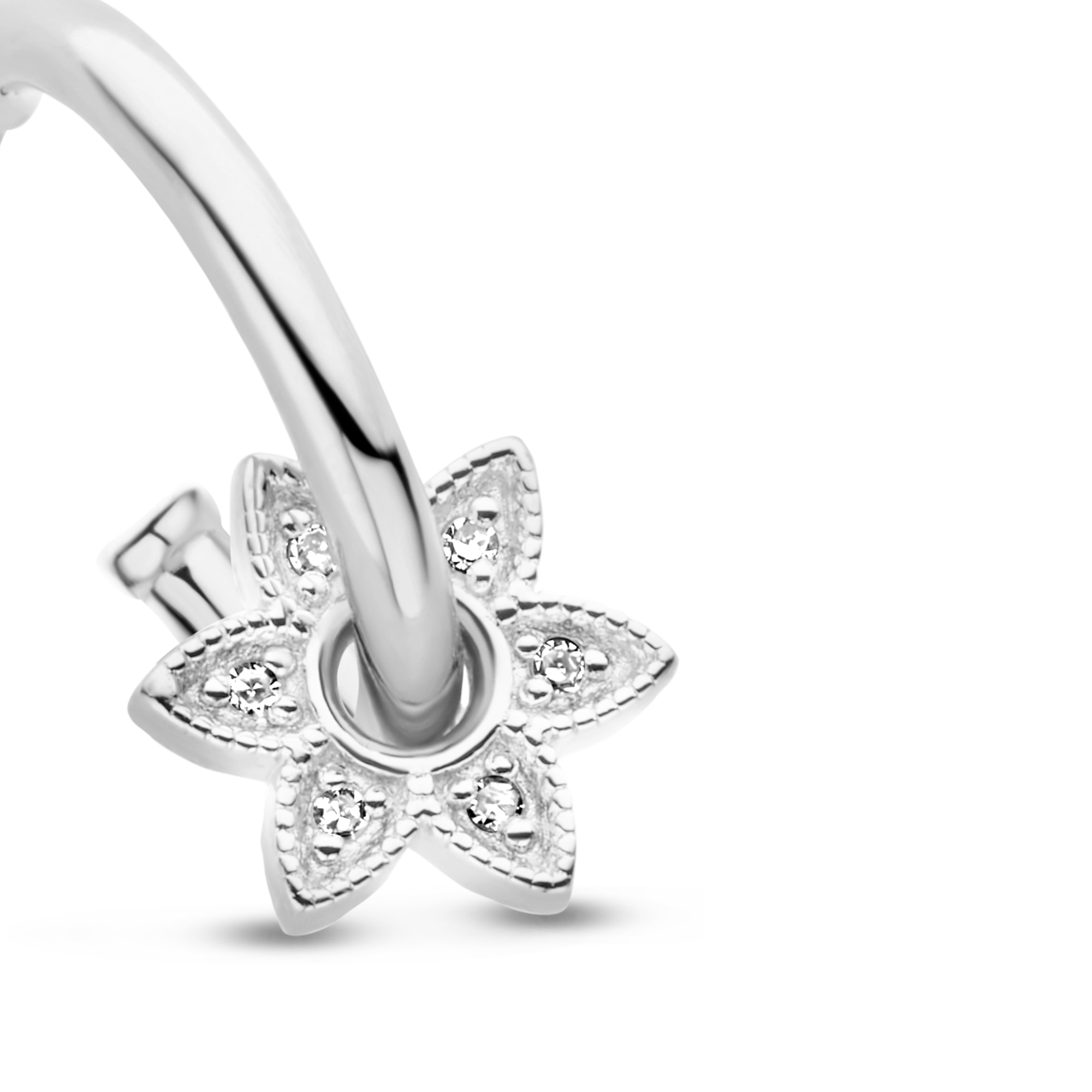 The most adorable bluebell flower charm, its petals covered in natural diamonds, twirling and swirling on a twinkling single hoop.STYLING TIP | Style with our matching Willow single hoop for a fresh and lively look.
