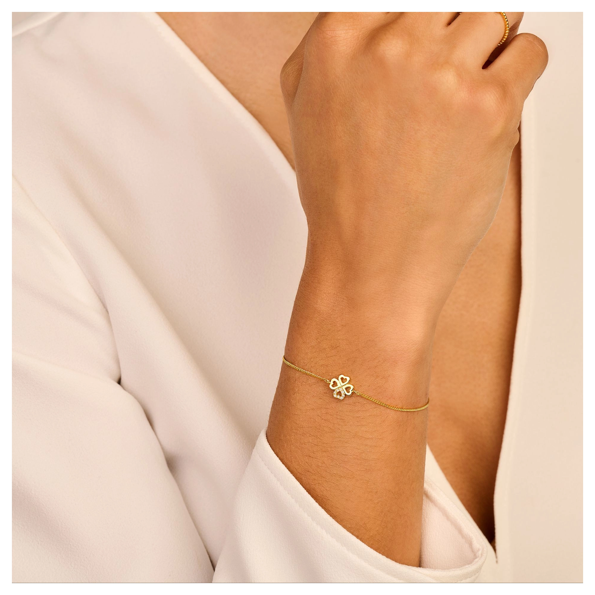 If you're going to make a wish, you might as well make it a sparkly one! Luck is on your side, wearing this magic 4-heart-leave clover around your wrist. Made in sterling silver, gilded with silver rhodium or 18 carat yellow or rose gold vermeil, handset with 8x natural and ethically-sourced diamonds.
