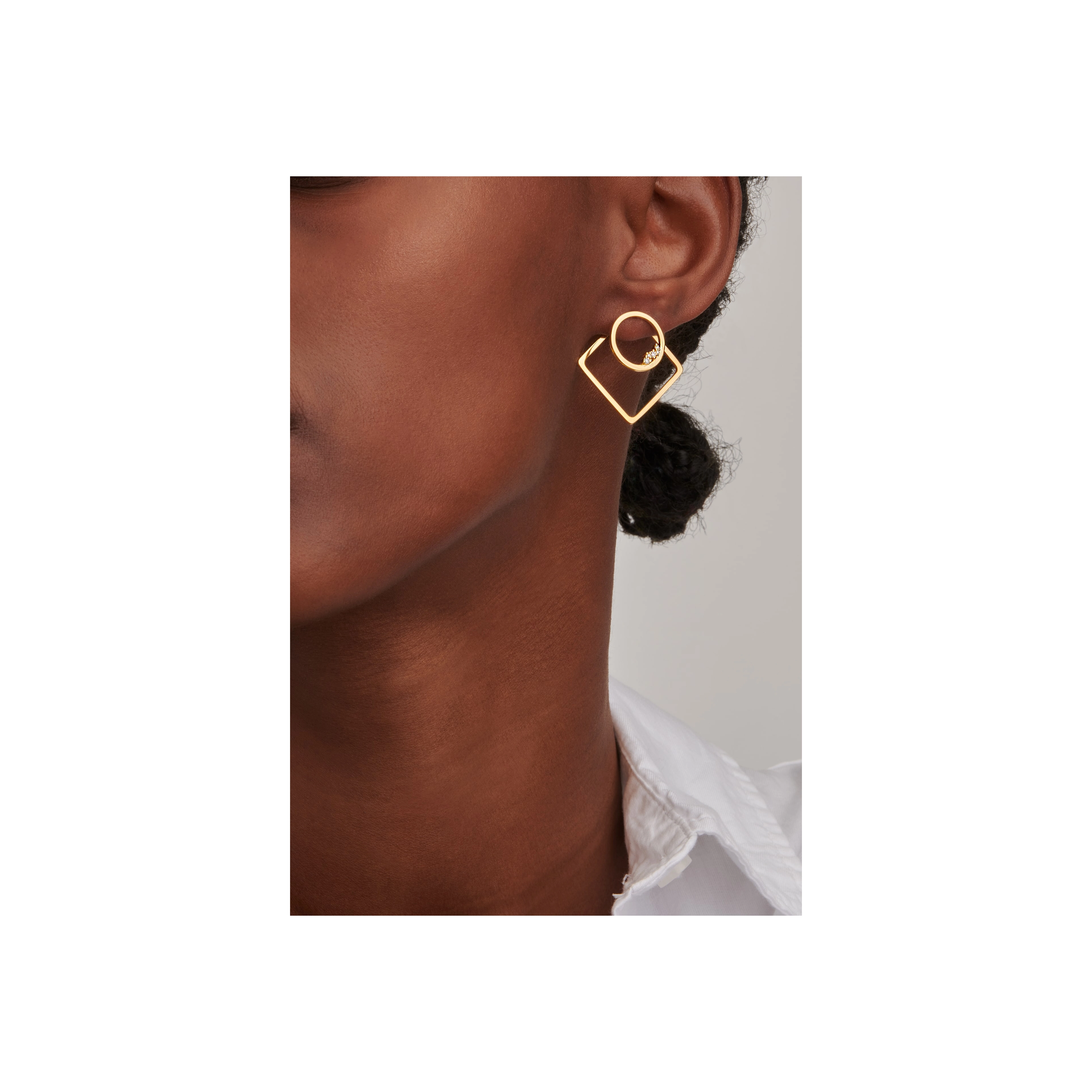 Circle symbolises unity and completion. The small circle can be worn alone as an single earring stud, or add the bigger circle to the back of the ear for a more dramatic look. The front and back pieces can be mixed & matched with other earrings within the Love & Unity collection. A delicate grace of 5x classic diamonds meets contemporary geometry for your little piece of everyday luxury.
