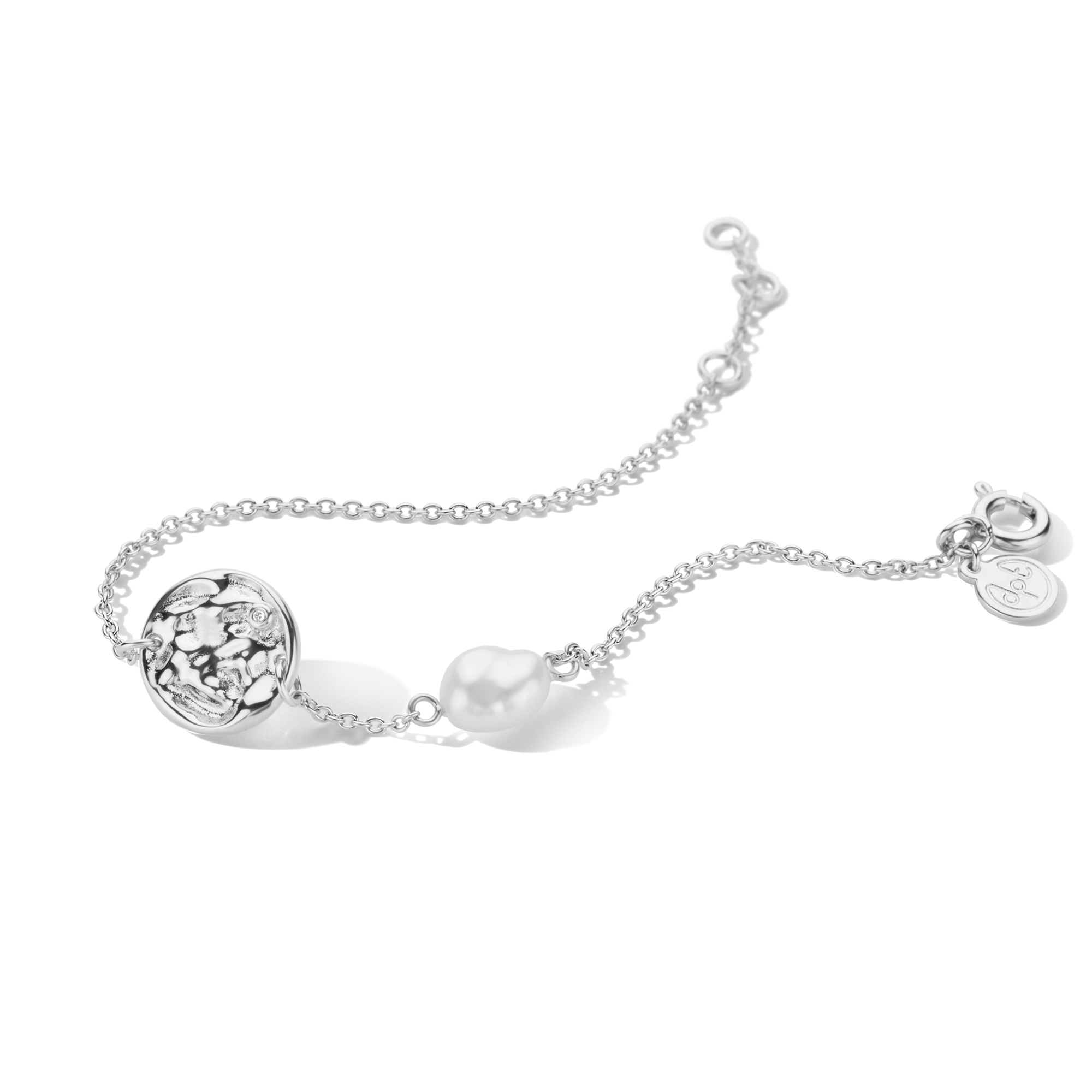 A hammered amulet bracelet with 1x white diamond and baroque pearl, your signature everyday casual chic style. Feel free to layer up with our Audrey bracelet.
