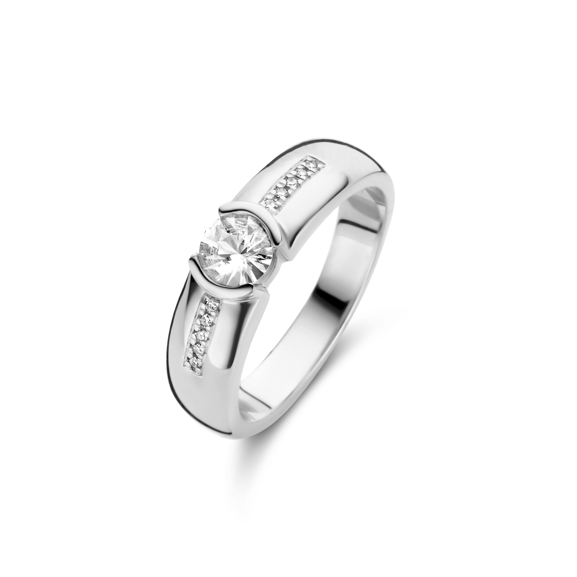 If you like it then you better put a ring on it. This splendid silver ring with a polished finish has a shimmering white sapphire at heart and 10x timeless diamonds encrusted in the band. Celebrate the love between you and your significant other with this exquisite wedding ring.Are you looking for a subtle way to make your rings more unique? Customize your rings with our free engraving service.