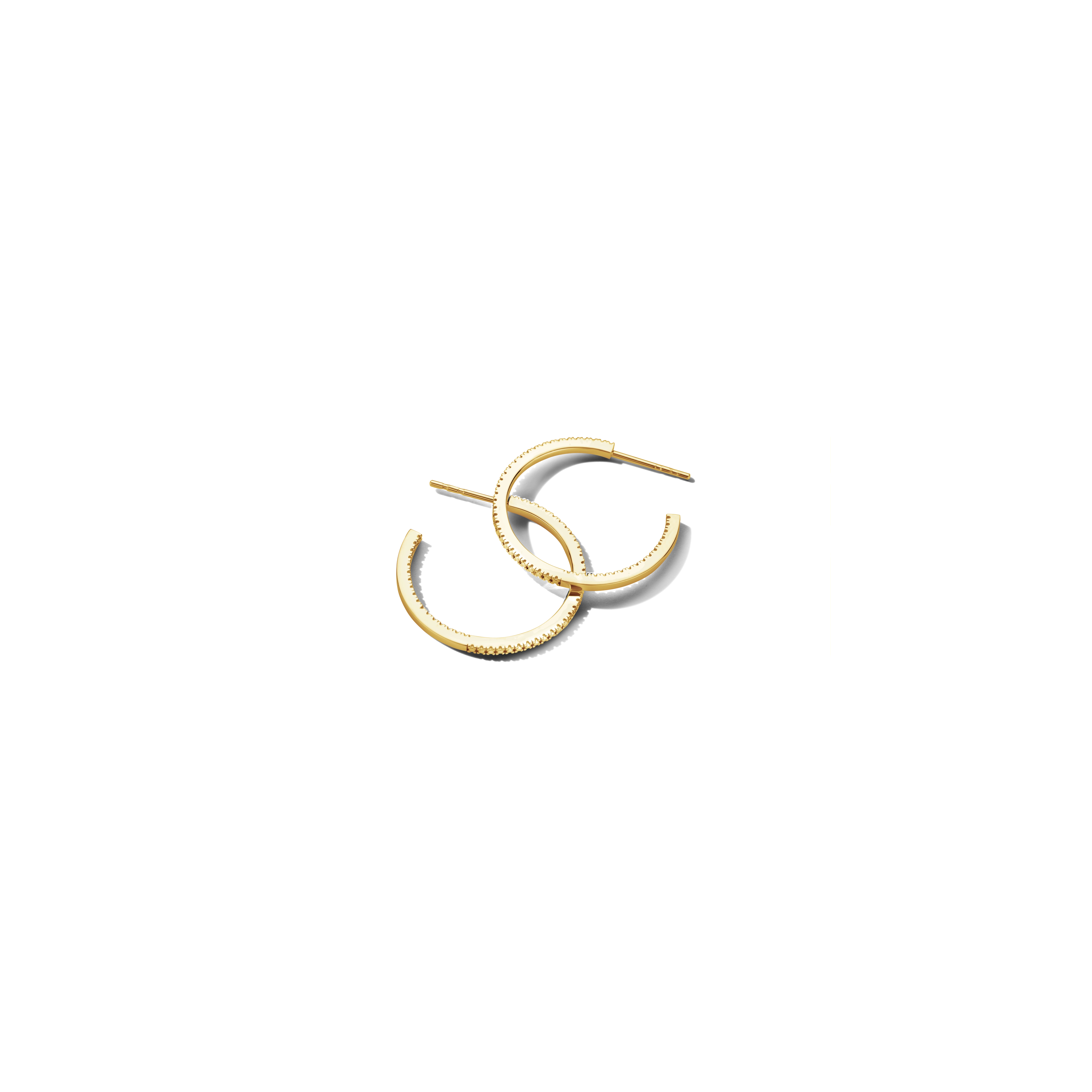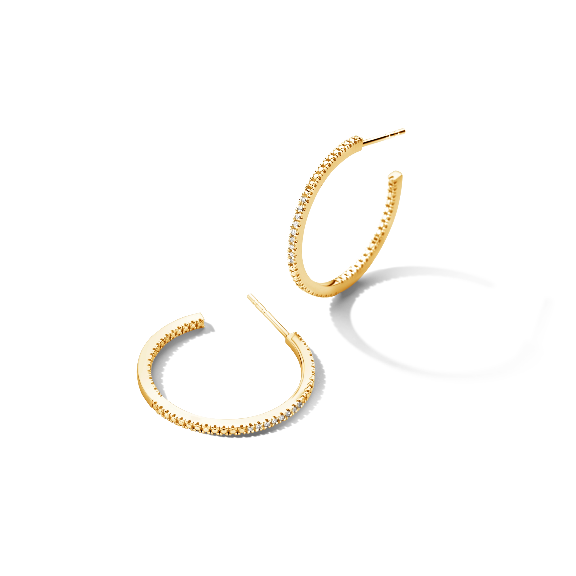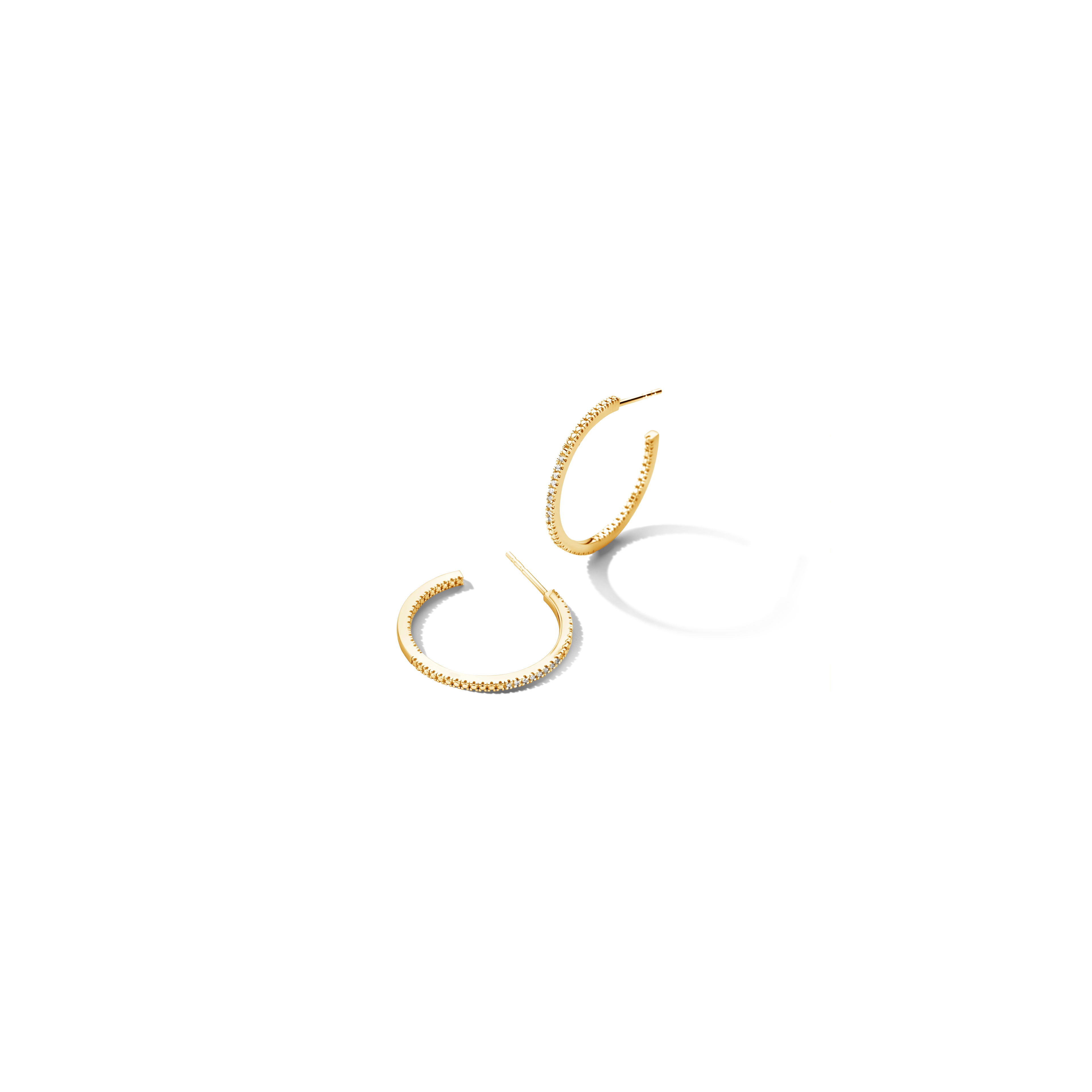 Iconic hoops, featuring 18x white diamonds, to make you shine from the inside out - all day, every day. P.S.: Also available in extra (sparkly) large size or as single hugging hoops. Feel free to play around and mix sizes. Made in sterling silver, gilded with silver rhodium or 18 carat yellow or rose gold vermeil.