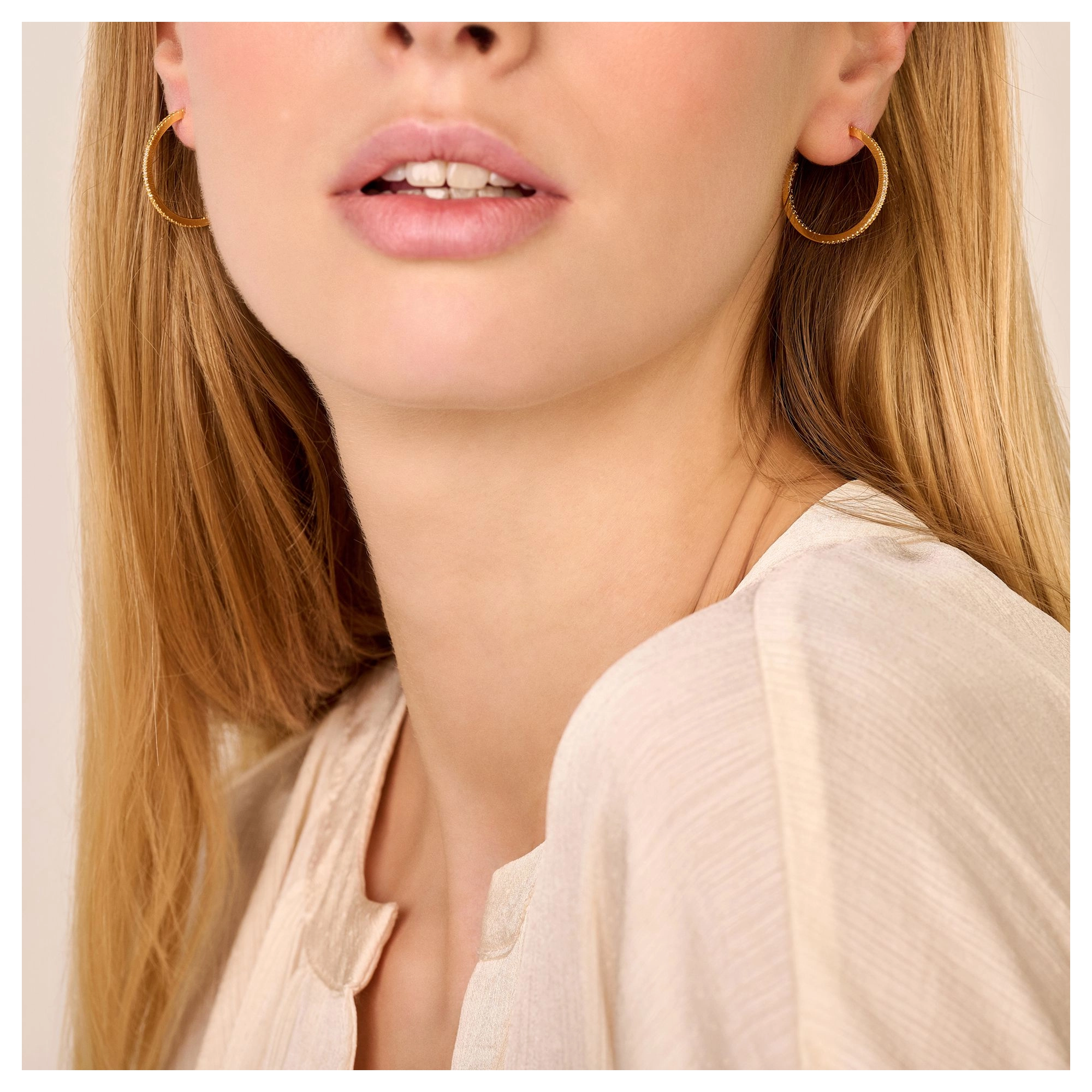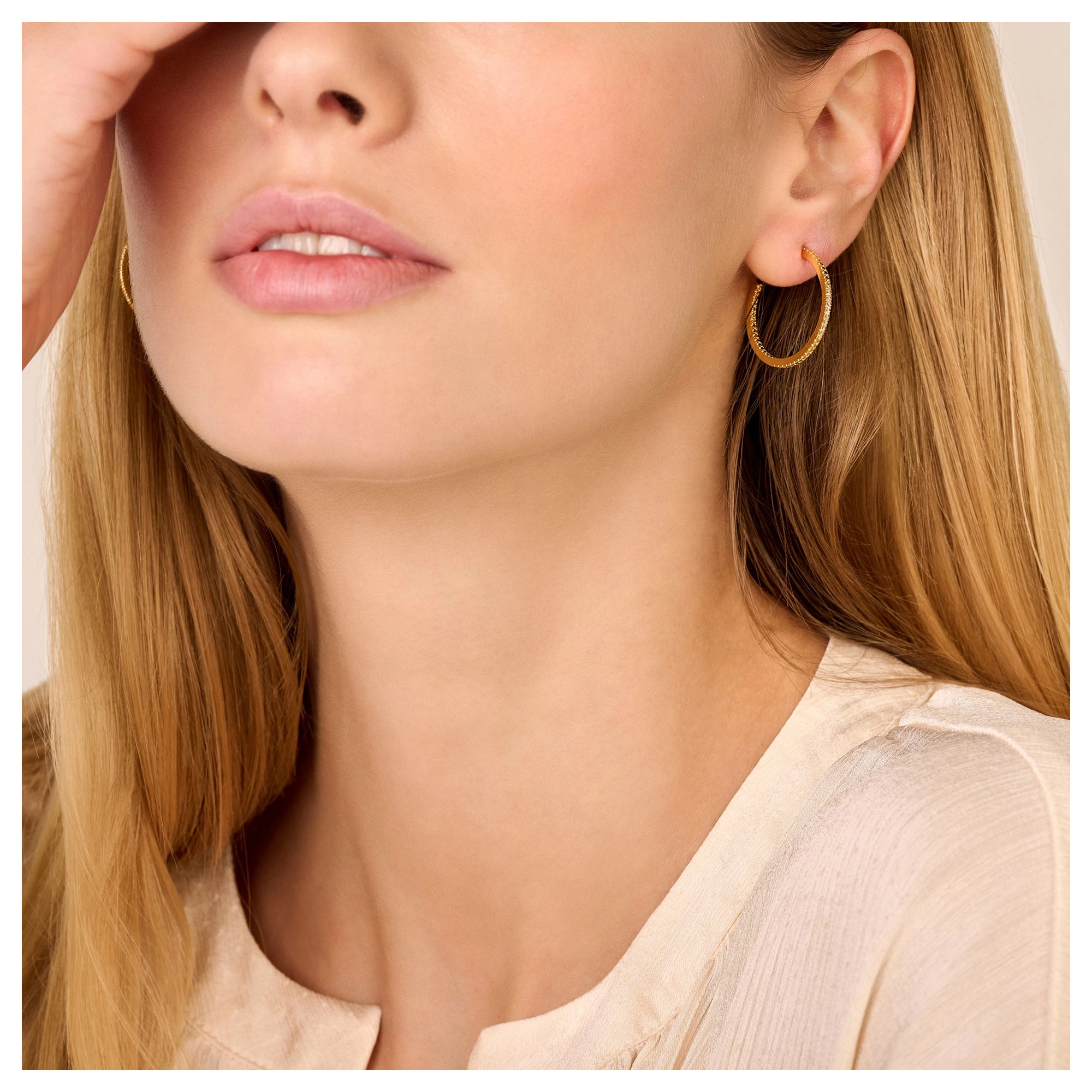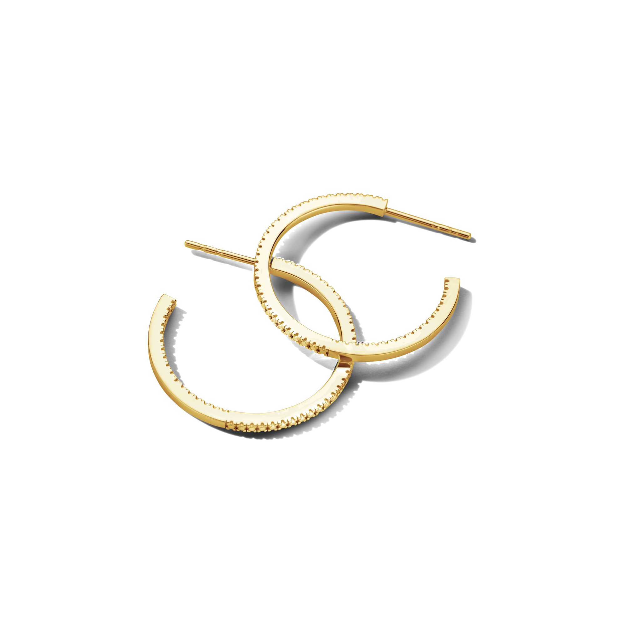 Iconic hoops, featuring 18x white diamonds, to make you shine from the inside out - all day, every day. P.S.: Also available in extra (sparkly) large size or as single hugging hoops. Feel free to play around and mix sizes. Made in sterling silver, gilded with silver rhodium or 18 carat yellow or rose gold vermeil.