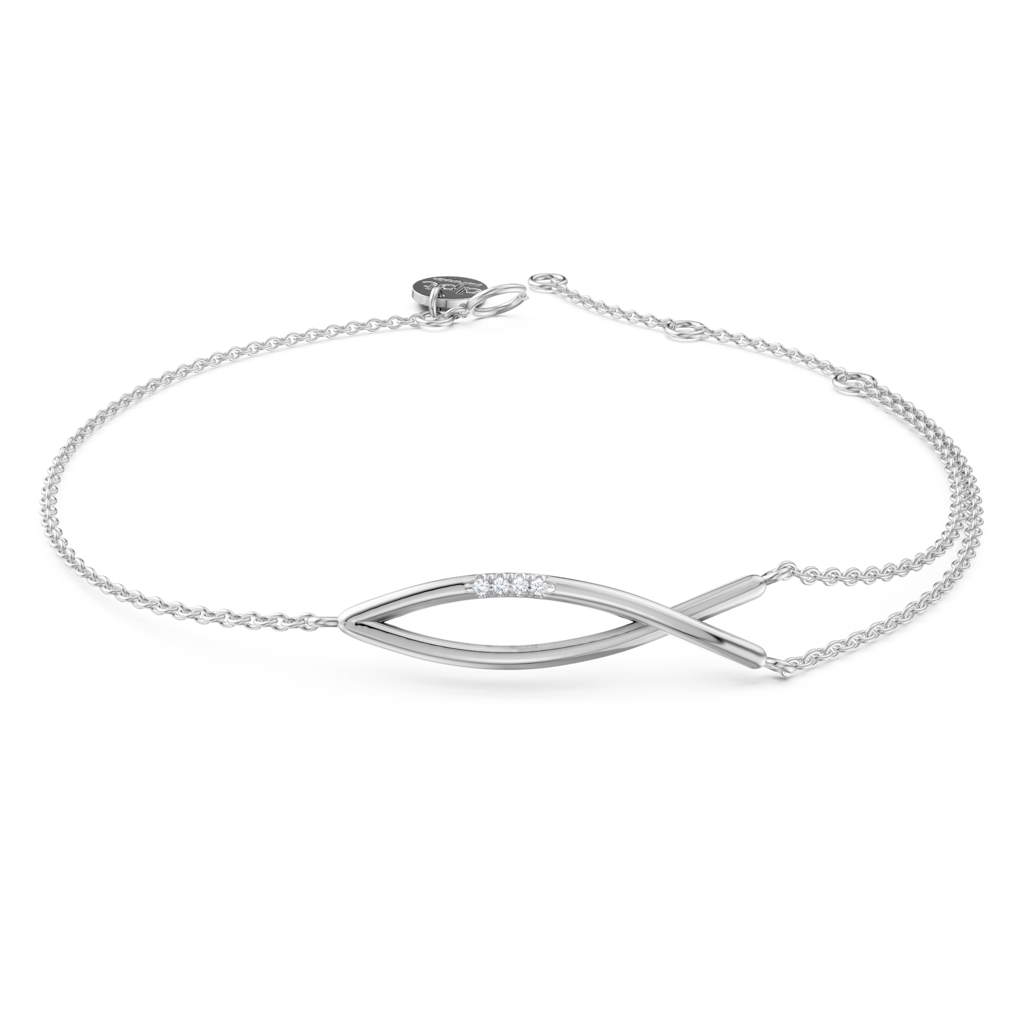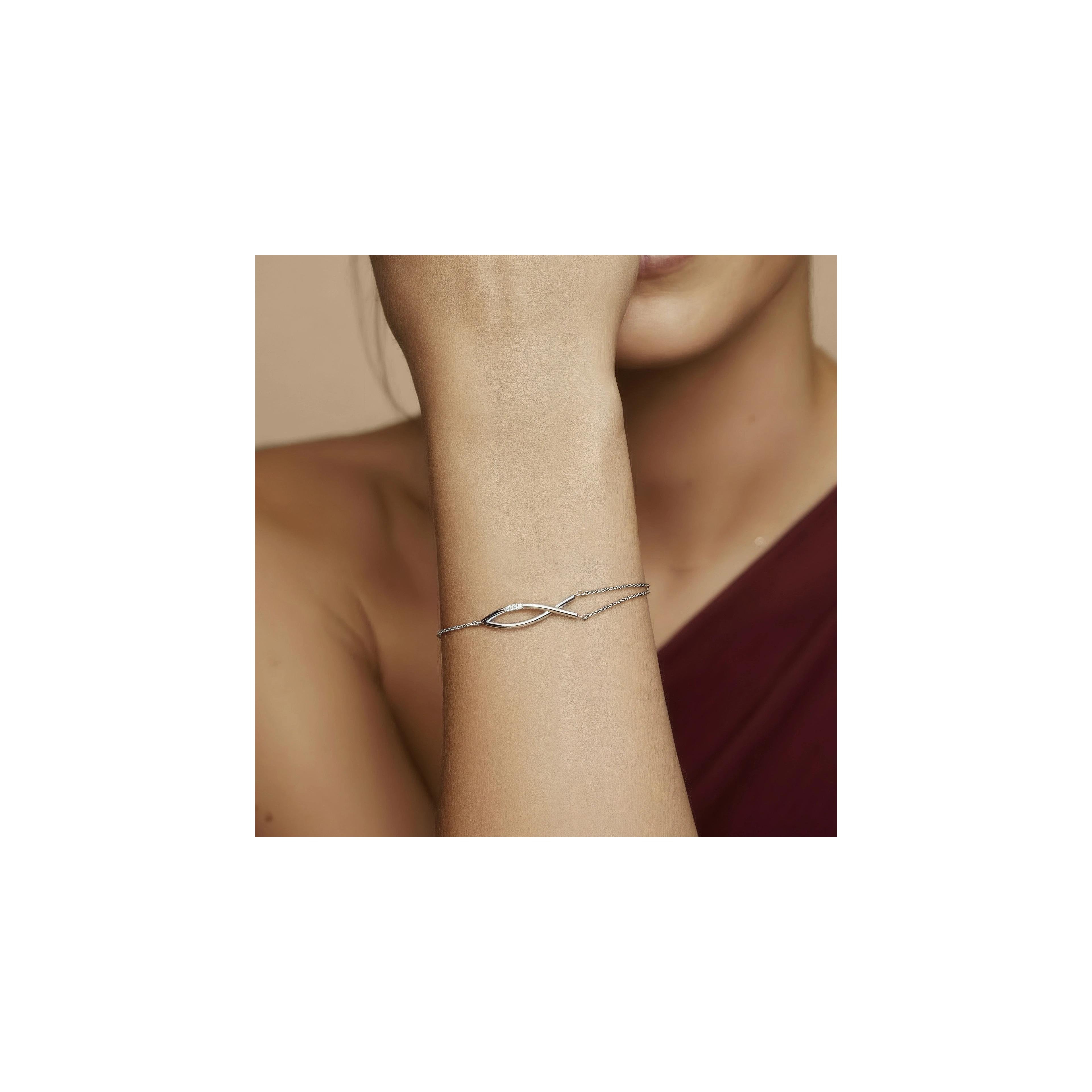 A refined statement of balance and harmony. Our Mariel bracelet features two slender bars crossing in a graceful X, accented with 4x delicate diamonds at the center. Elegant, unique and full of quiet strength.