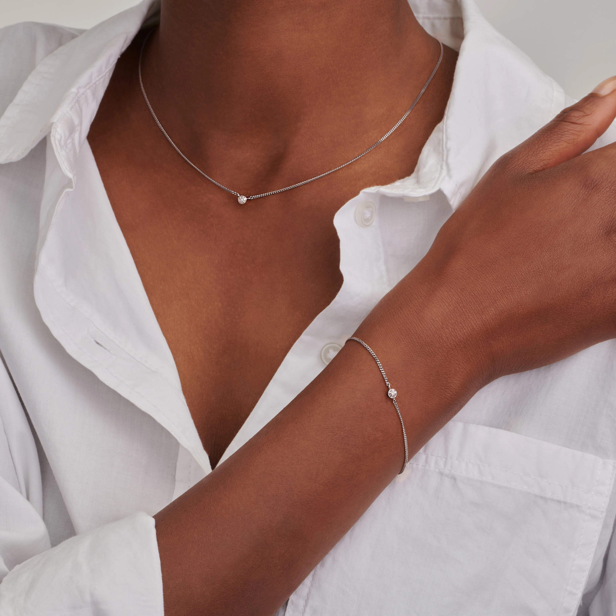 "Less is more" - our First diamond bracelet is the sublime exponent of this credo. If you are taking your first steps into diamond jewellery, perhaps this bracelet could be the one to give you the luxurious feeling you're looking for. It has 7x shimmering diamonds to create the illusion of 1x alluring diamond. Made in sterling silver, gilded with silver rhodium or 18 carat yellow or rose gold vermeil.