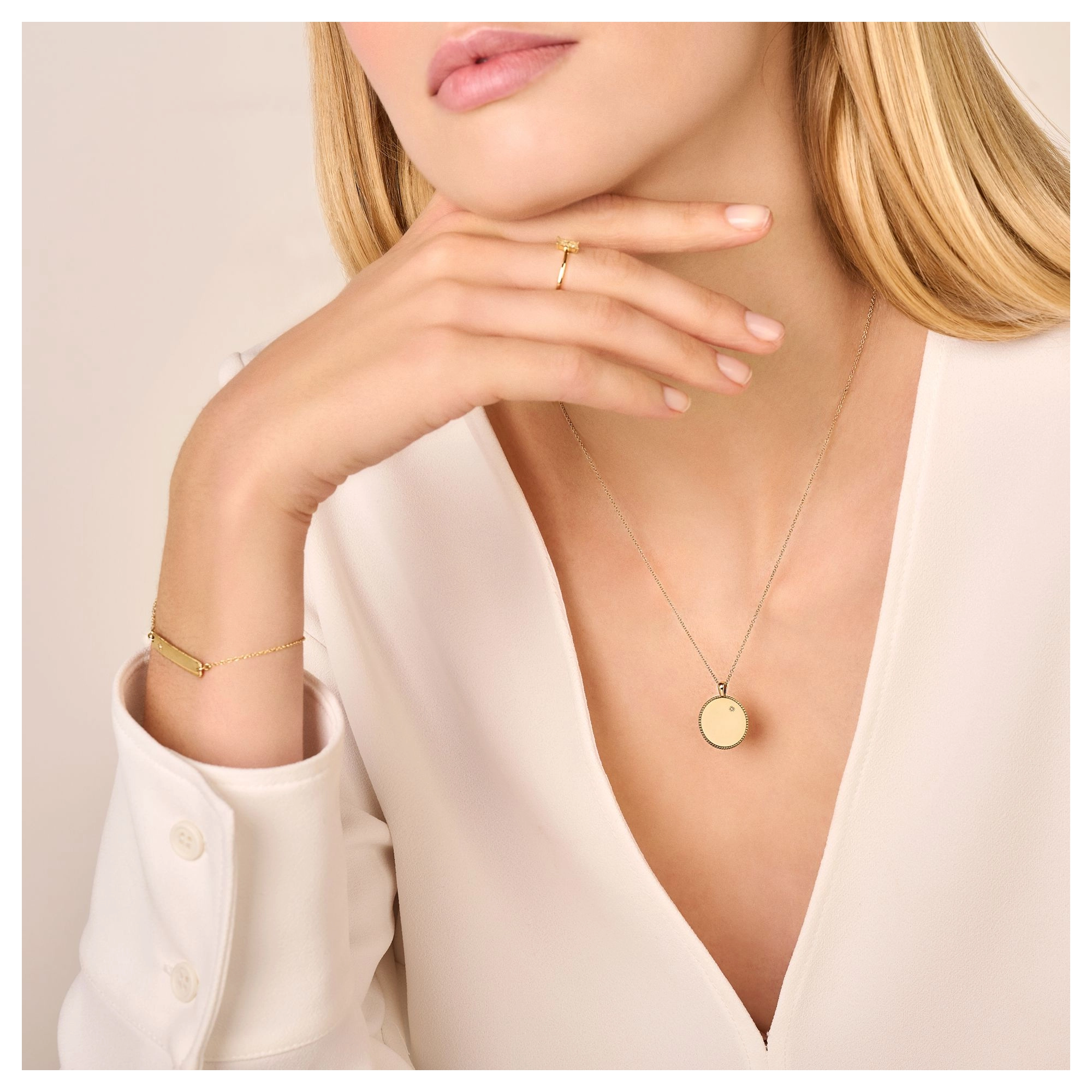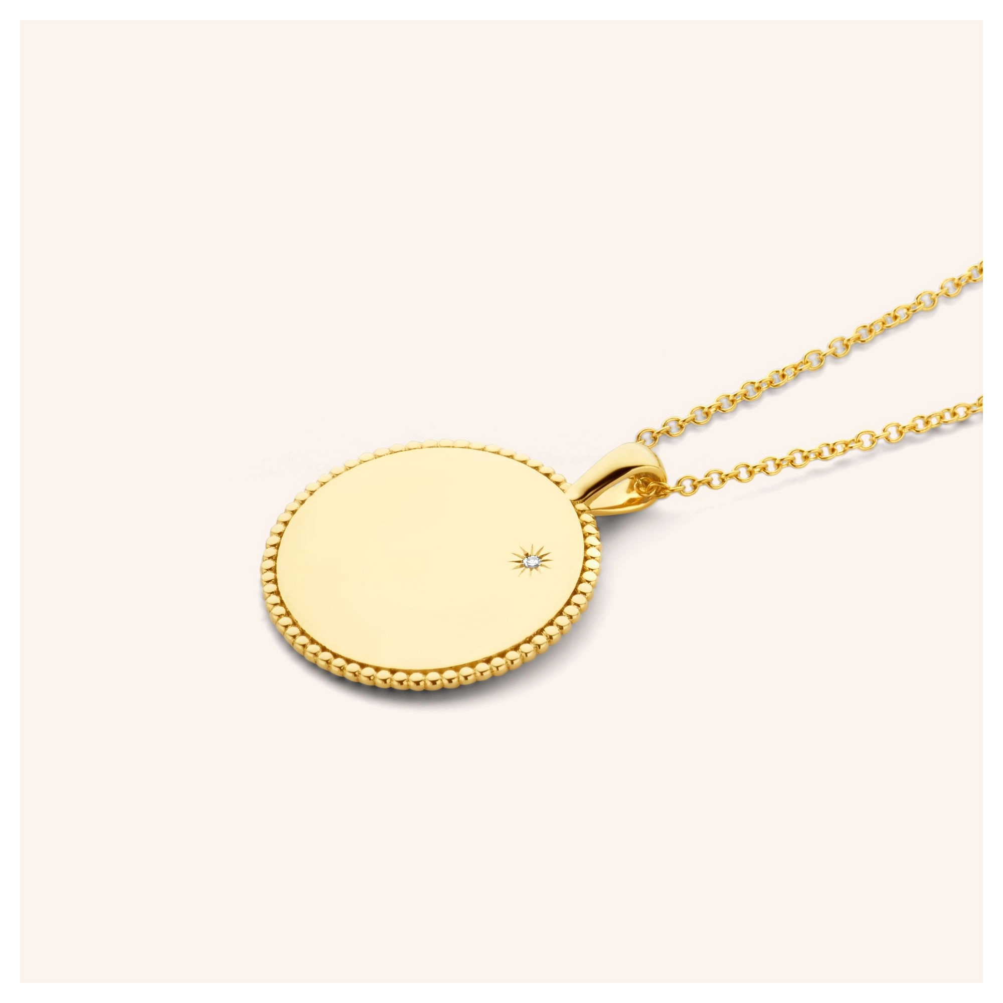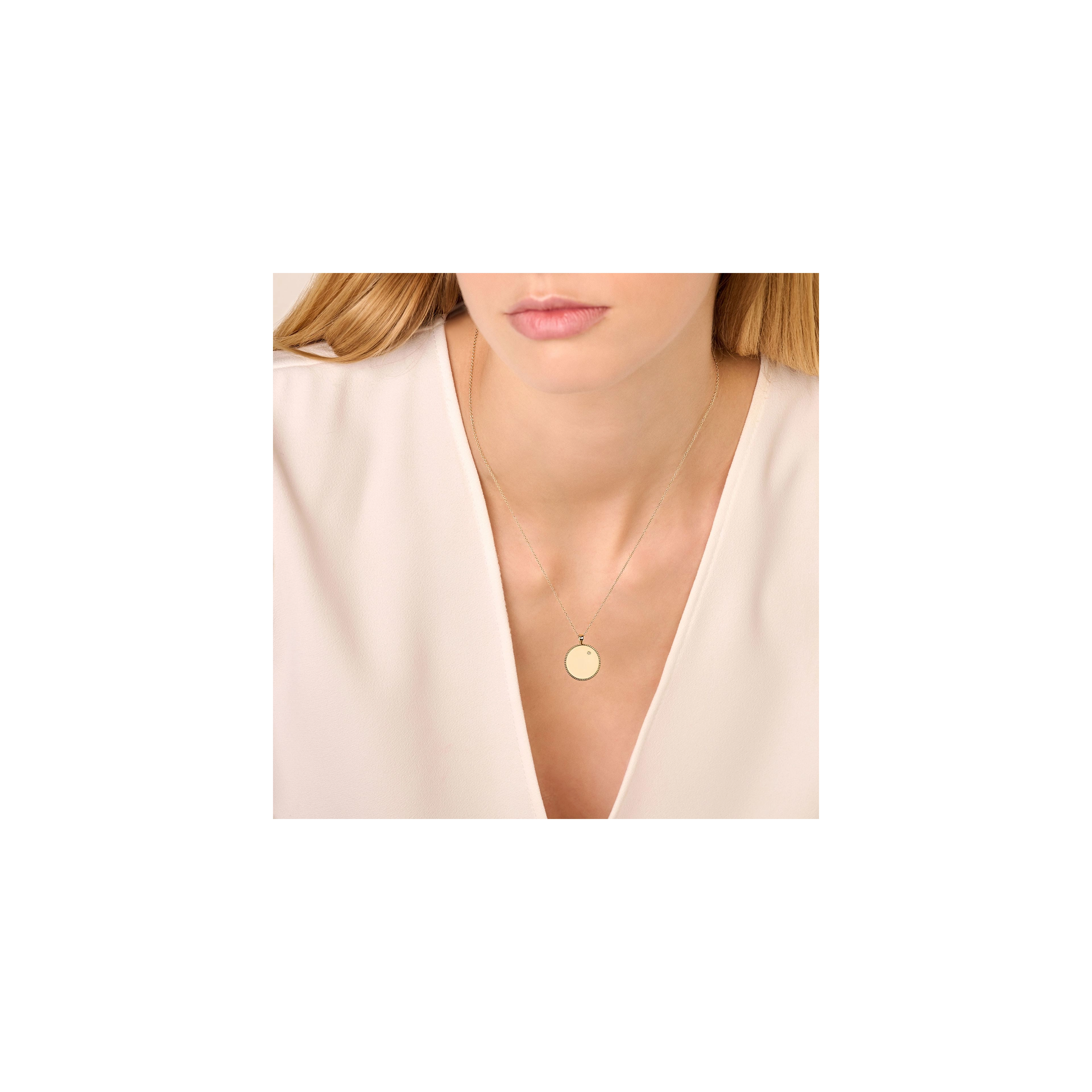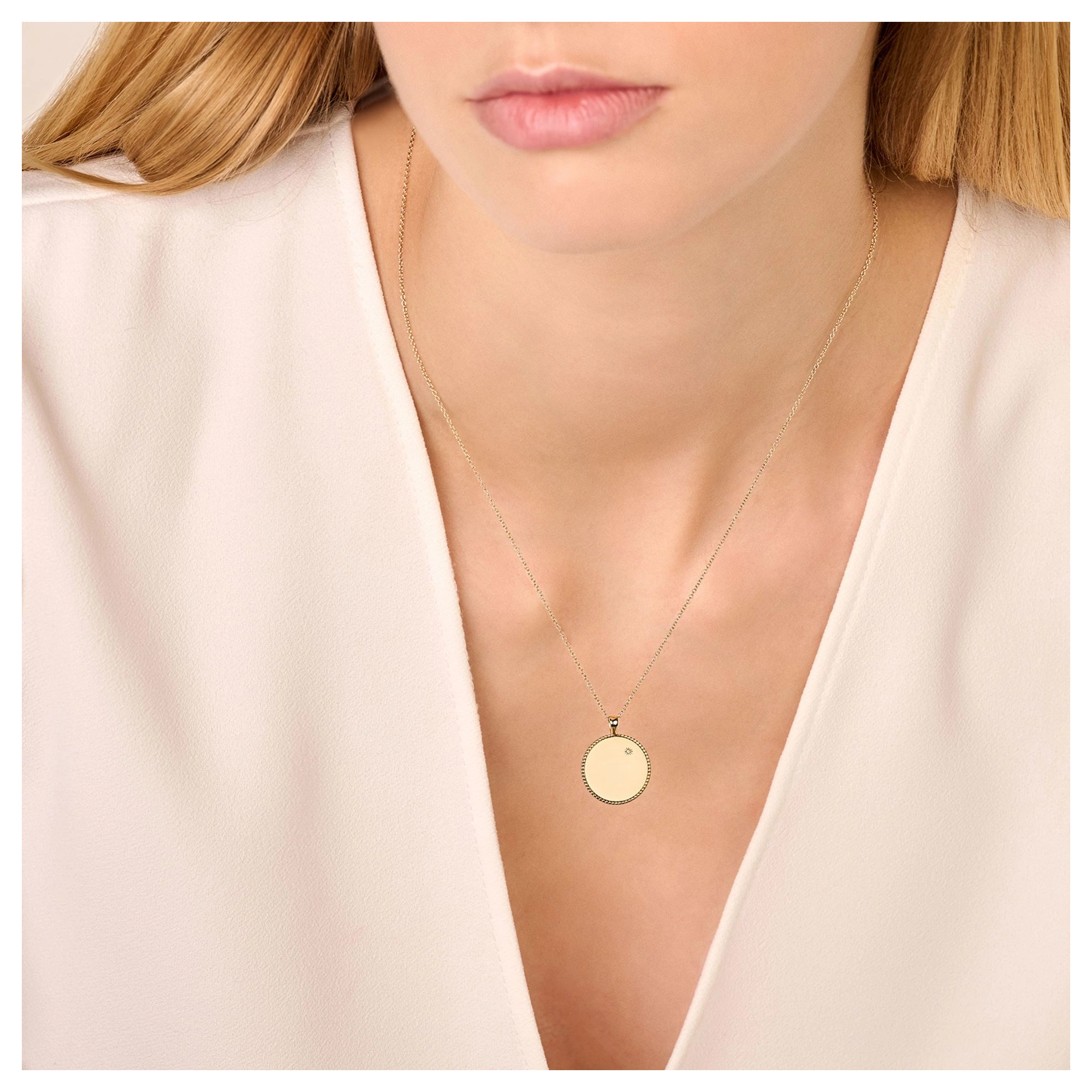 The ultimate engravable amulet necklace — the perfect place to keep treasured initials close to your heart. Topped off with a subtle shining star diamond, this meaningful piece will be cherished to infinity and beyond.» READ MORE on our engraving options.