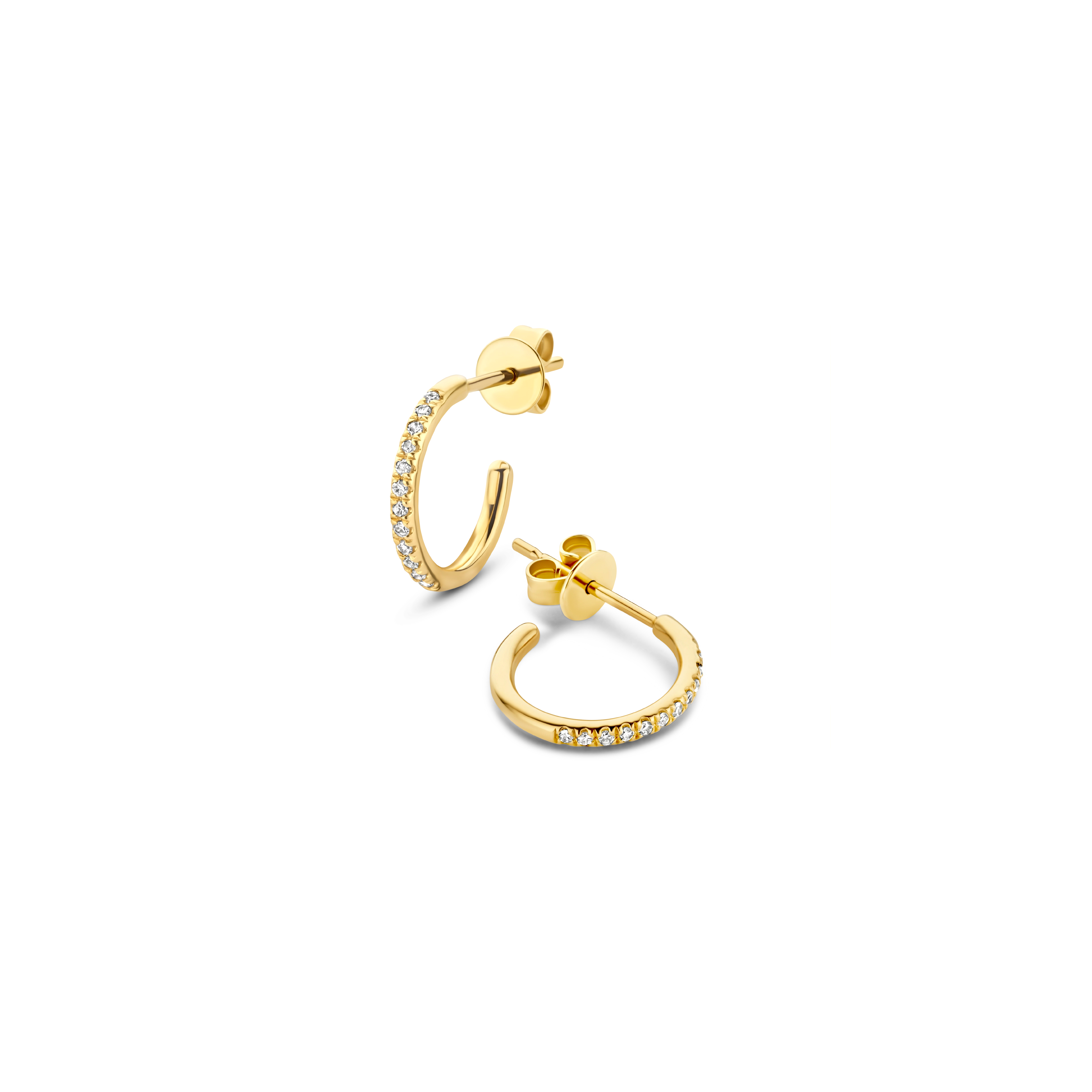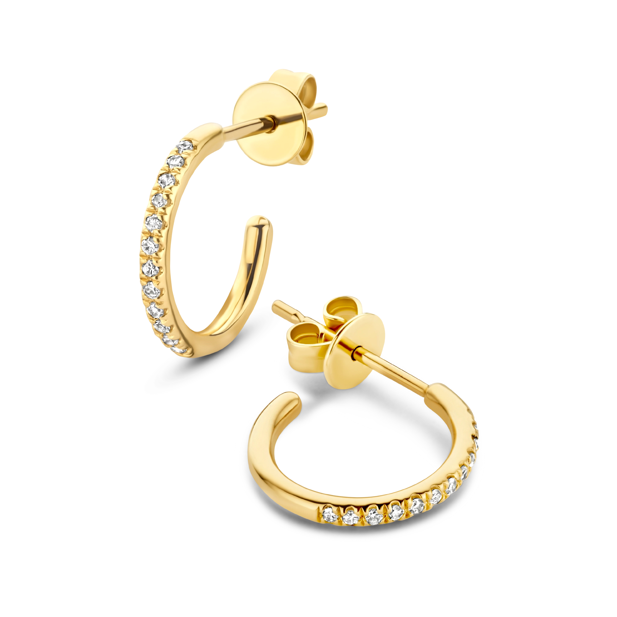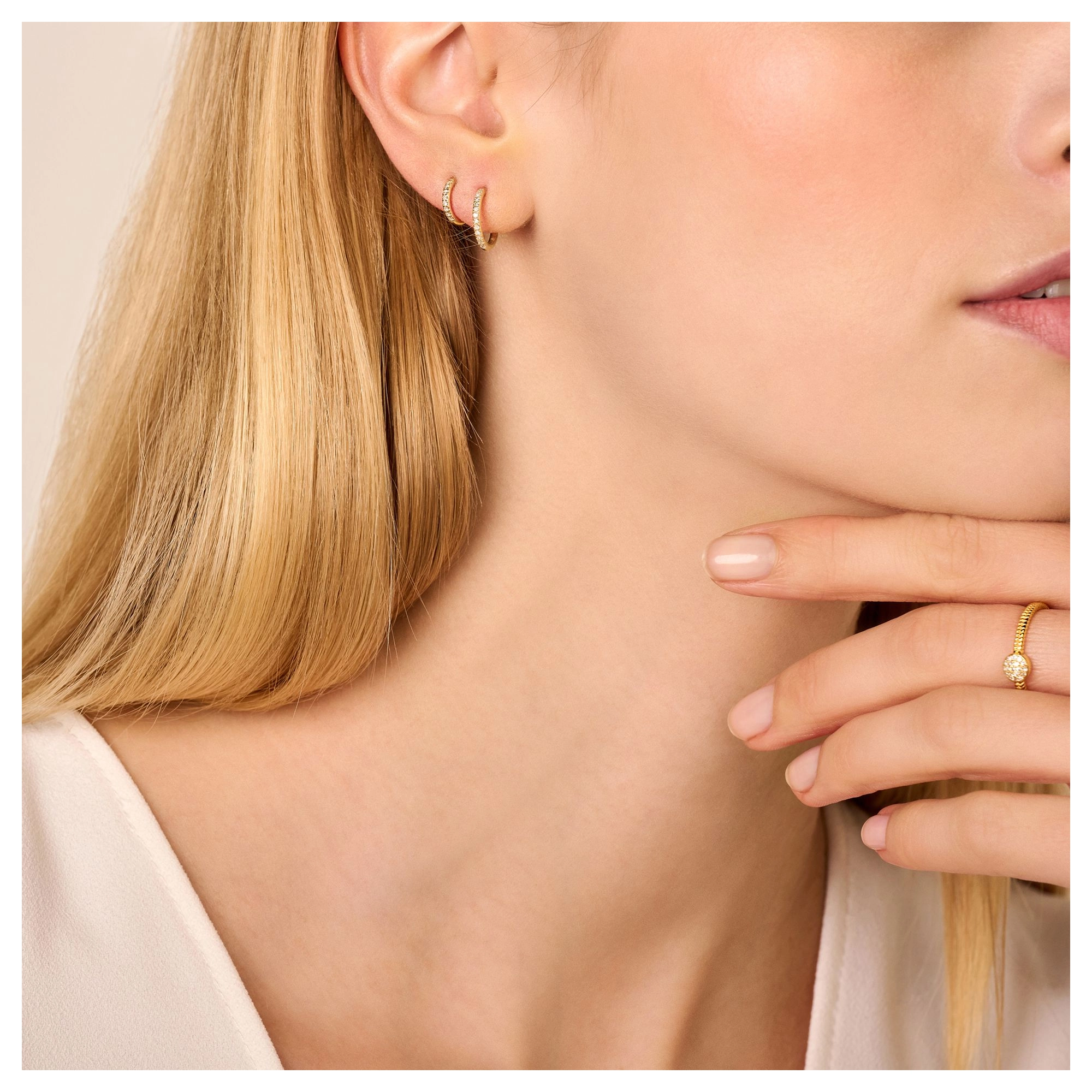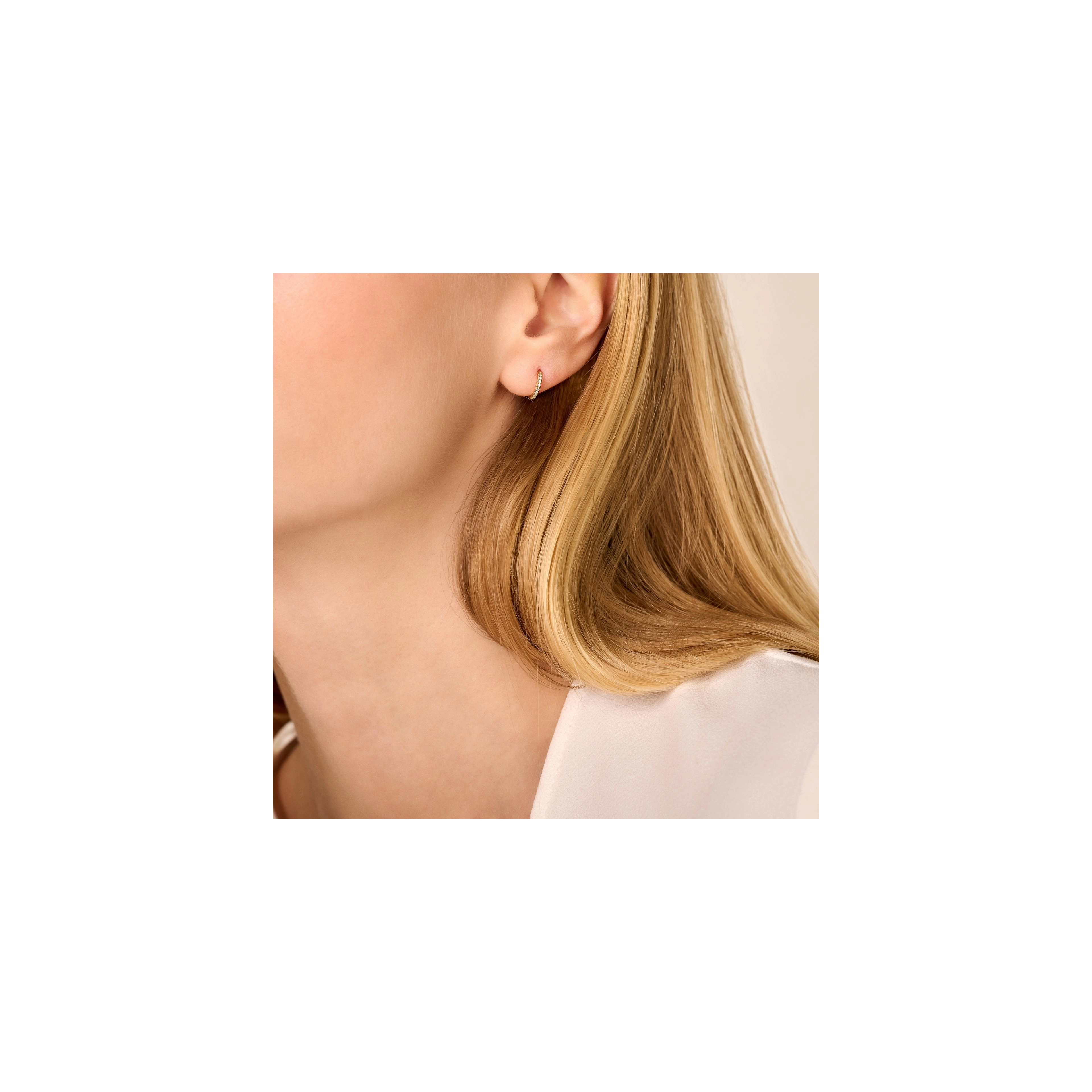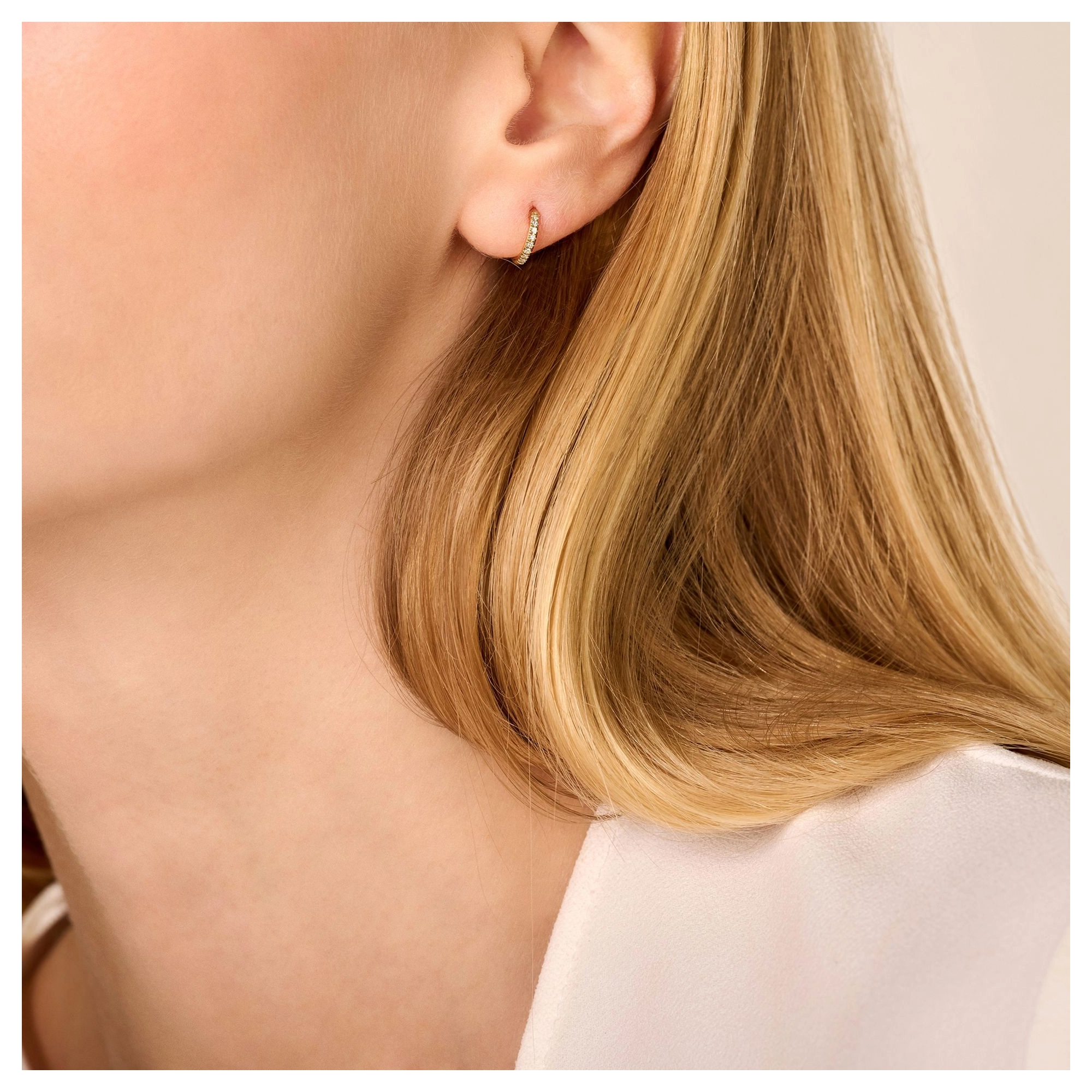 Diamond essentials for every day — 16x signature diamonds featured on 14 carat gold rounded hoops, it’s pretty safe to say that these will never ever run out of style, nor dazzling glare. Also an excellent choice for piercings.