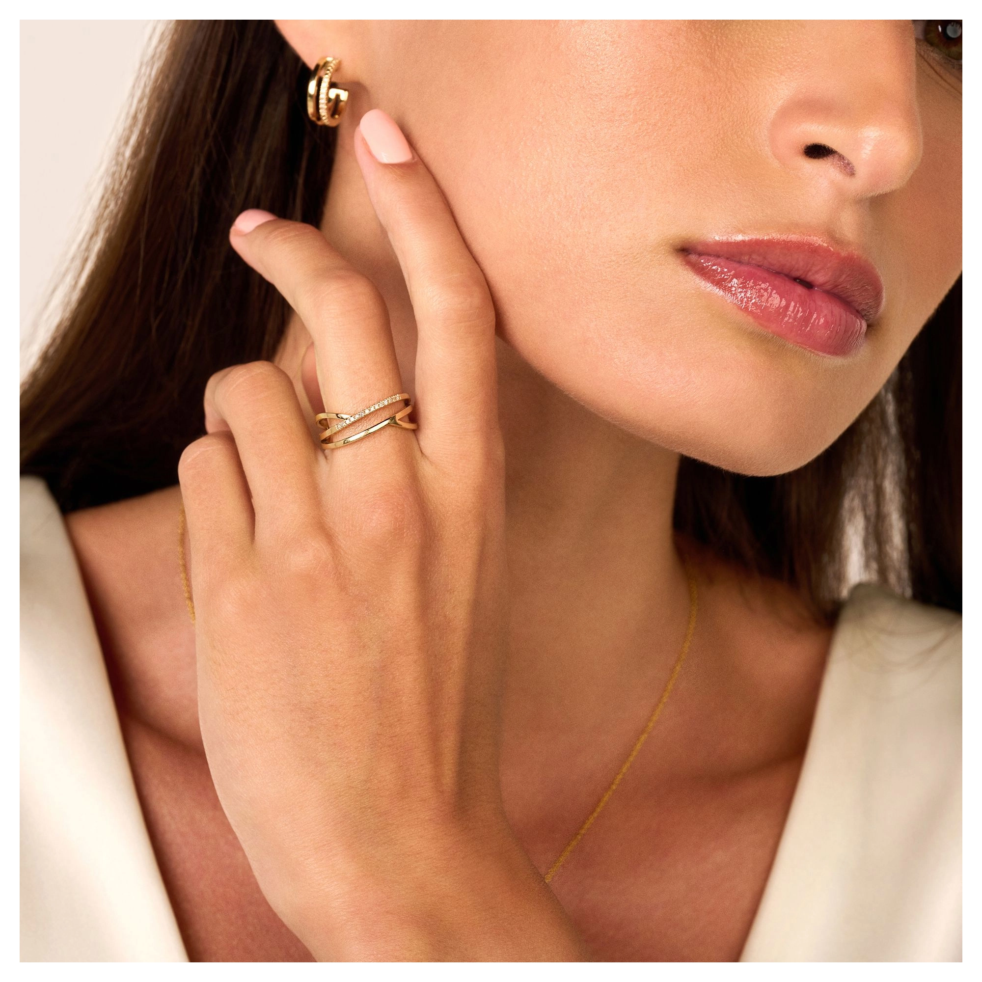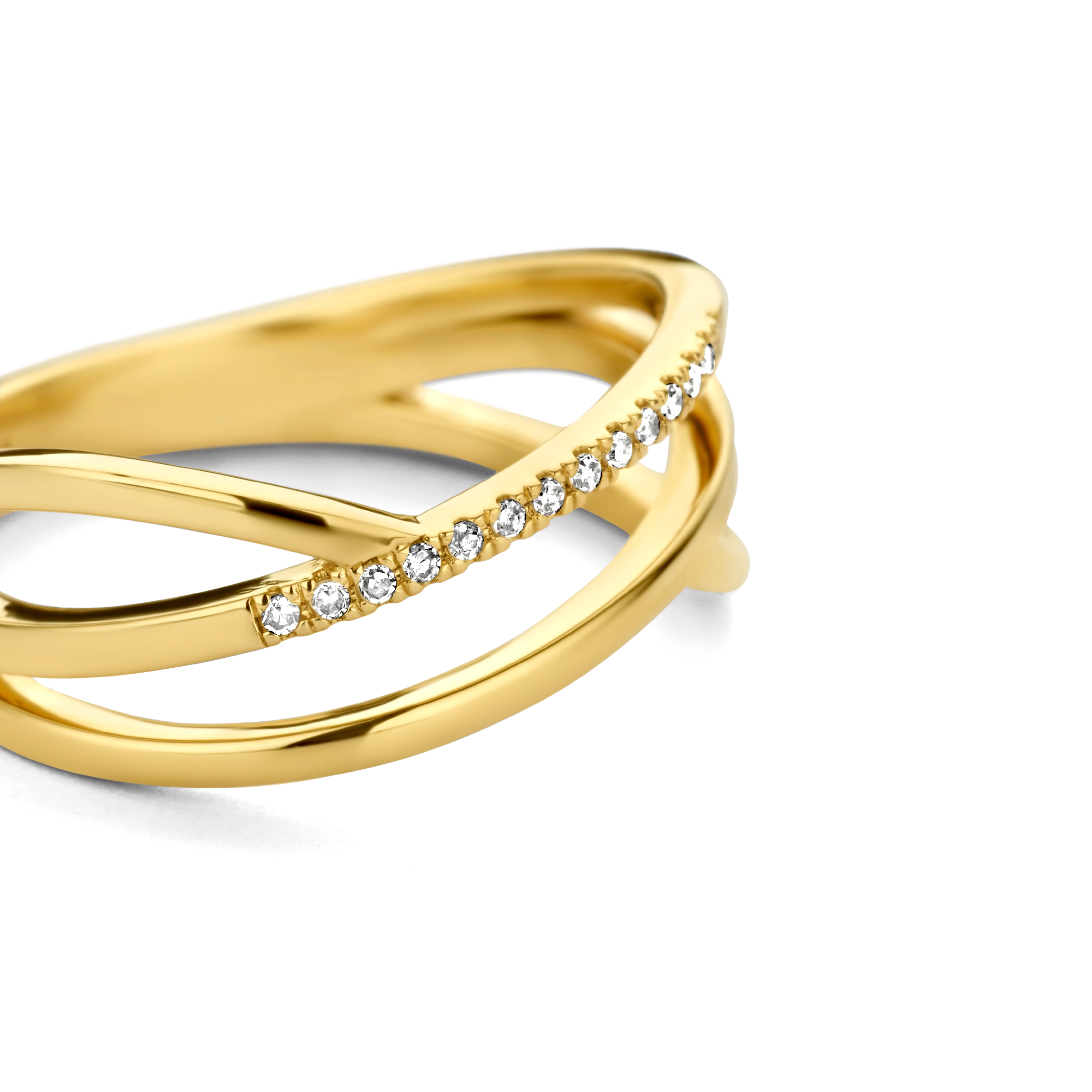 Handset with 14x timeless white diamonds — this contemporary piece is a premium edit of our iconic diamond bands. 14 carat gold duo bands putting the ‘twin’ in ‘intertwining’ rings.