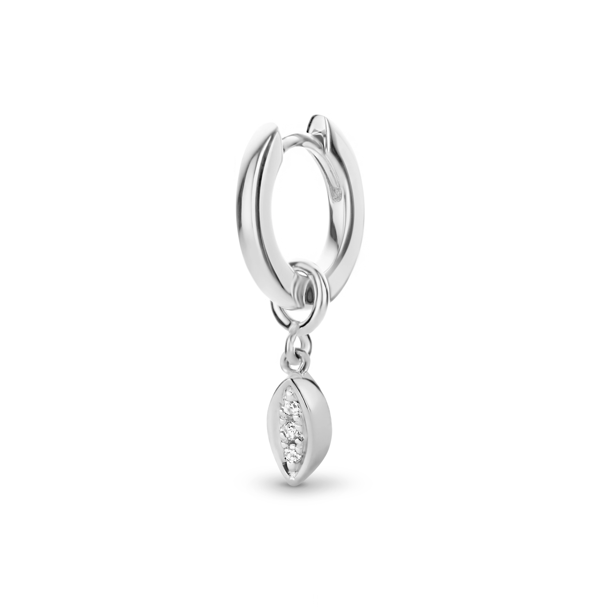I spy with my little eye: 3x diamonds in a graceful marquise shaped charm, dangling on a mini hoop. Together with our Golden Eye stud, they make up the cutest little merrymakers.