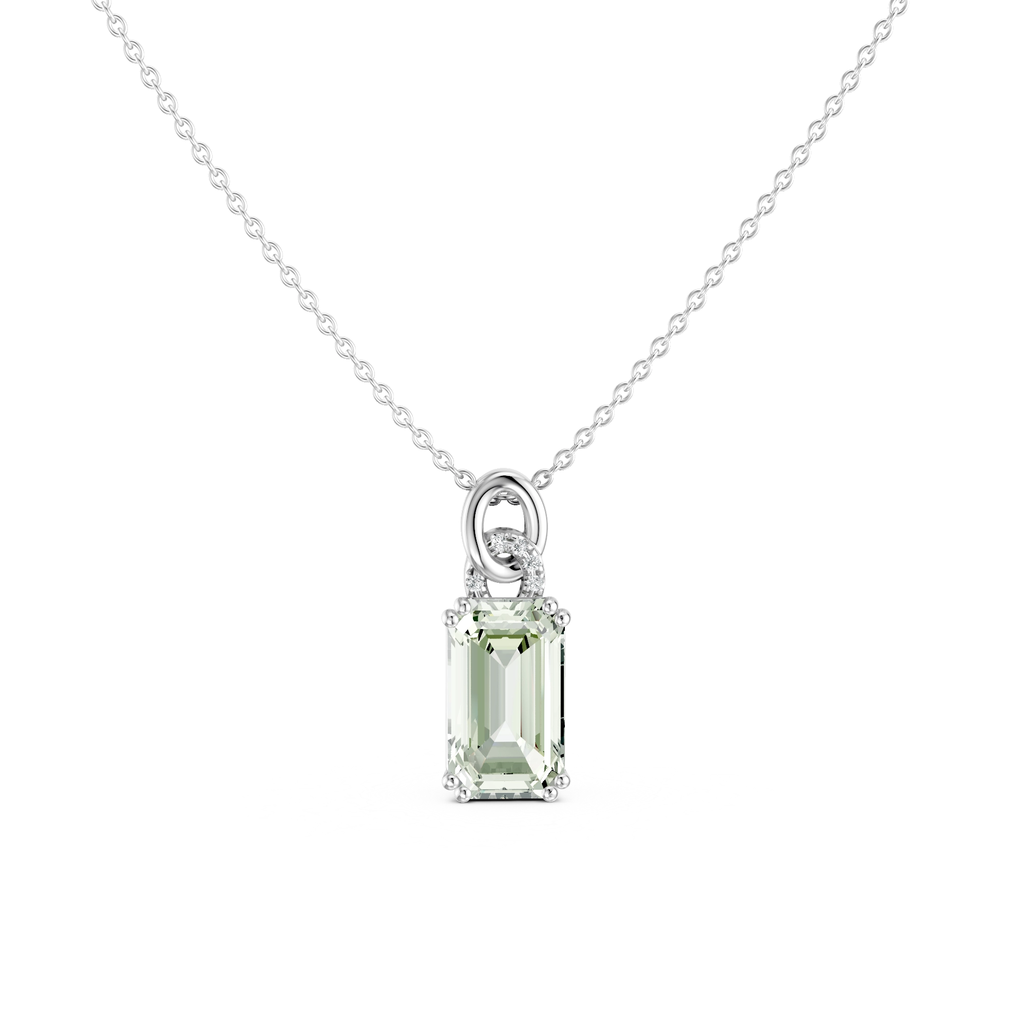 Delicate with a soft pop of colour, this necklace features a green amethyst pendant accented with five white diamonds. The refined sparkle balances the fresh hue for an elegant, everyday look. Crafted in 925 sterling silver, it’s perfect worn alone or layered.
