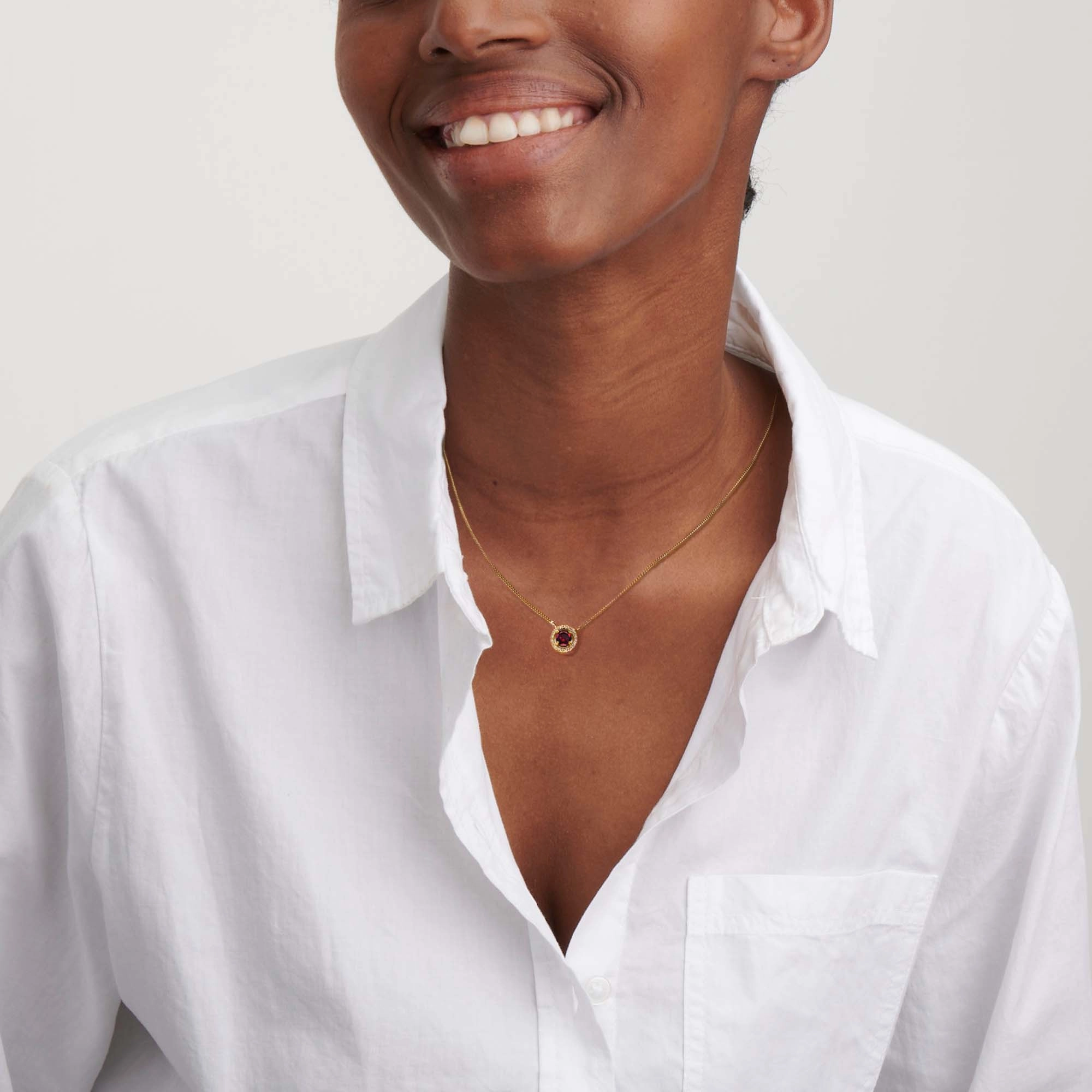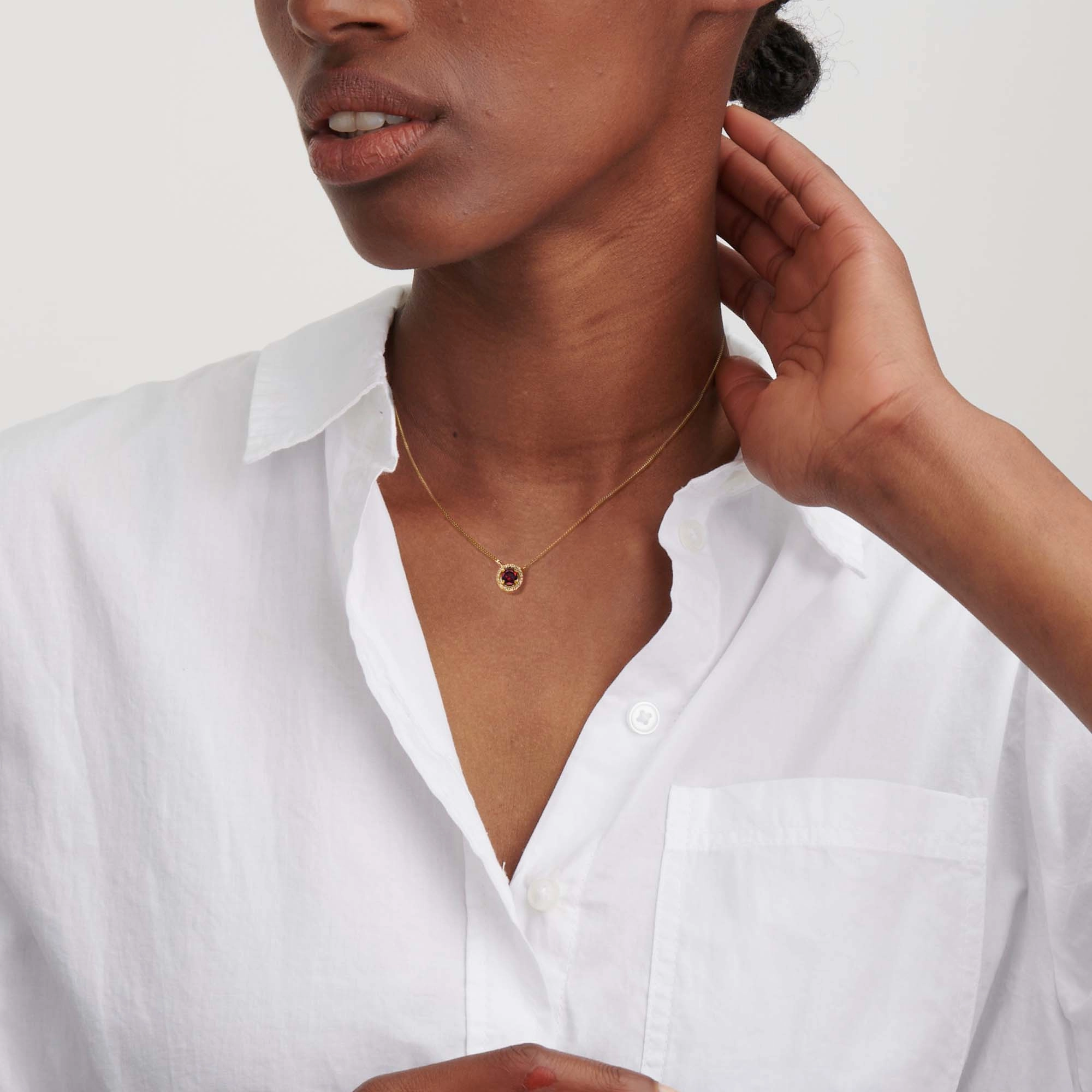 This one’s for the romantic souls. A deep red Garnet heart, paved with 18x twinkling diamonds on a fine chain necklace. Just like Romeo and Juliet’s eternal love, made to cherish forever. P.S.: Leo DiCap not included.