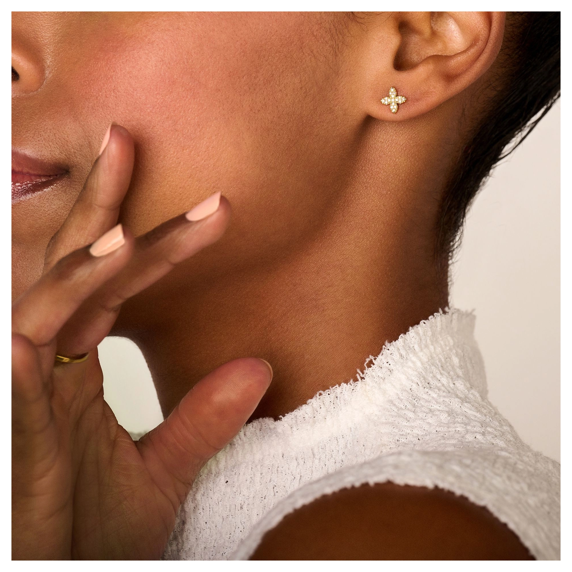 Flowers are one of the world's greatest sources of inspiration - elegant in each and every way, they light up the place and fill our hearts with instant joy and bliss. These cute Little Flower earrings with 17x flickering diamonds each, are no exception.