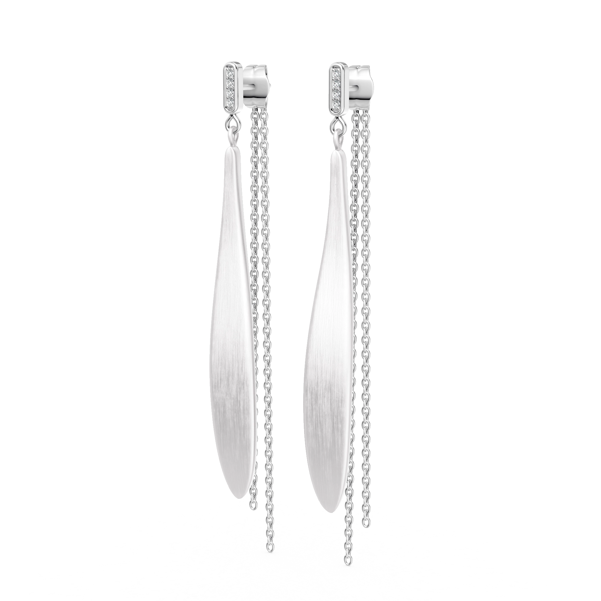 Elegant with a modern edge, these brushed earrings combine elongated forms with eight white diamonds for refined shimmer. The layered chains add movement and lightness. Crafted in 925 sterling silver.