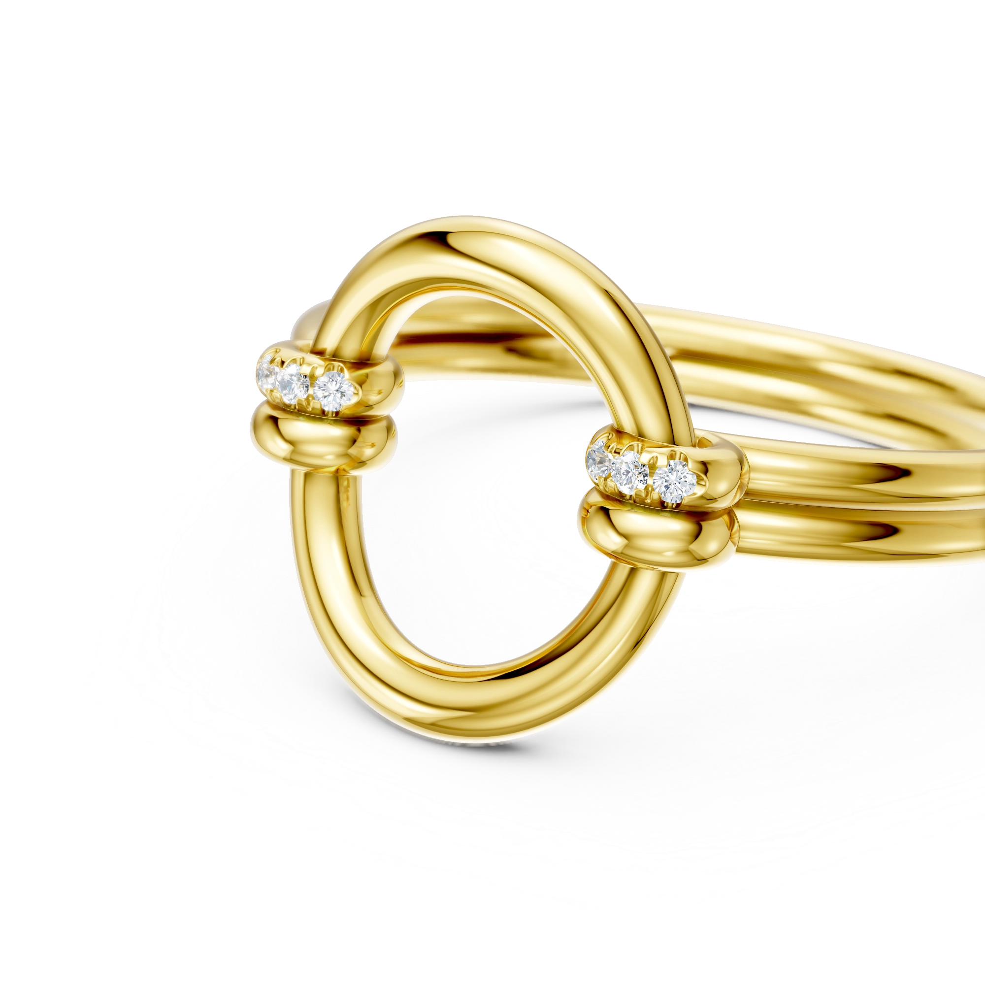 A bold declaration. This statement ring centers on a polished circle, held by a double band that evokes strength and devotion. 6x diamonds shimmer along its links, symbolizing a bond unbroken, a promise everlasting.