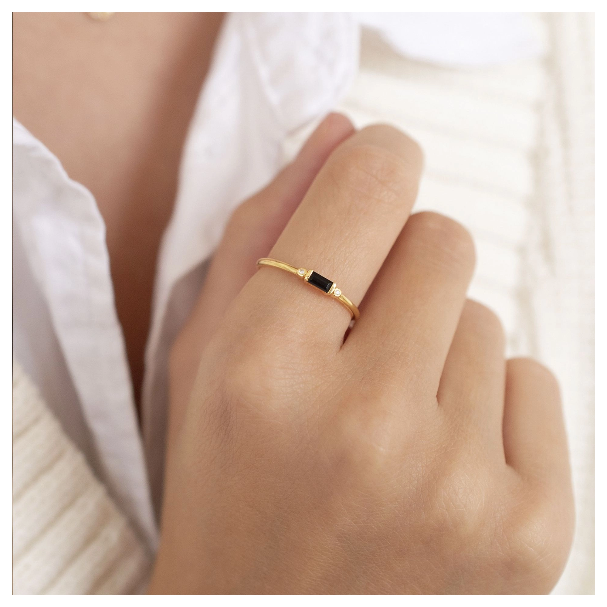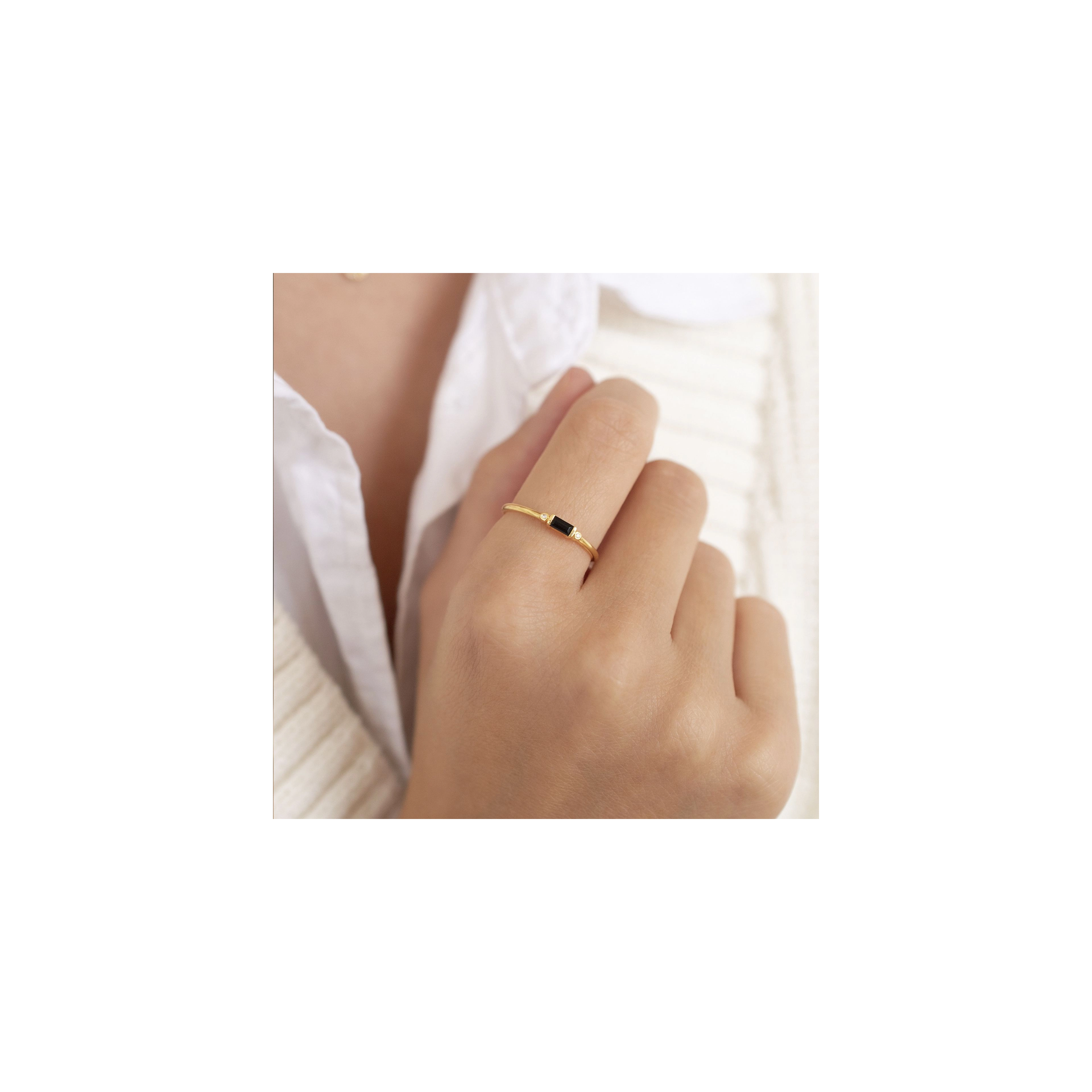 An elegant and enigmatic ring, featuring a black Onyx baguette with diamonds on the side. While the world is sleeping – you’re awake, making the best midnight memories. Feel like stacking up? Our Secret Twilight, Mystery and Flame rings are here to enjoy the ride.
