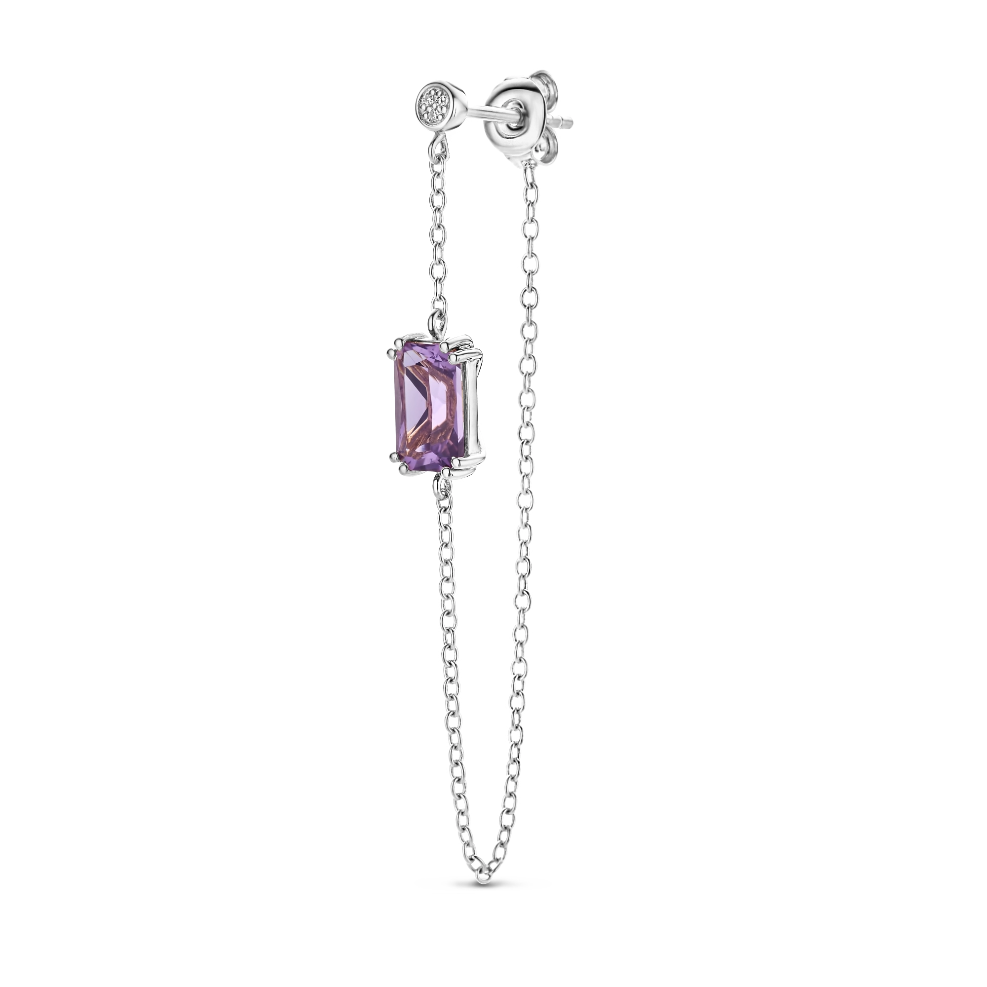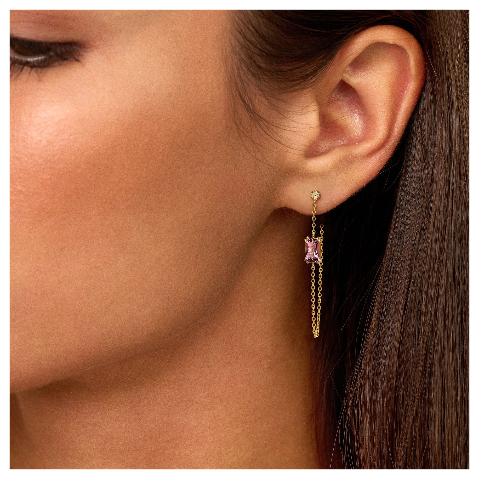 Referring to the black hellebore’s enchanting dark shades, this purple amethyst gemstone is where luxury and sensuality meet. Purple amethyst is known to promote healing, intuition and serenity and has been a symbol of royalty for centuries. A pendulous charm on a diamond (3x) stud, overfl owing with brilliance. STYLING TIP Pair up the Plum hoop and stud for an asymmetric and empowering look.