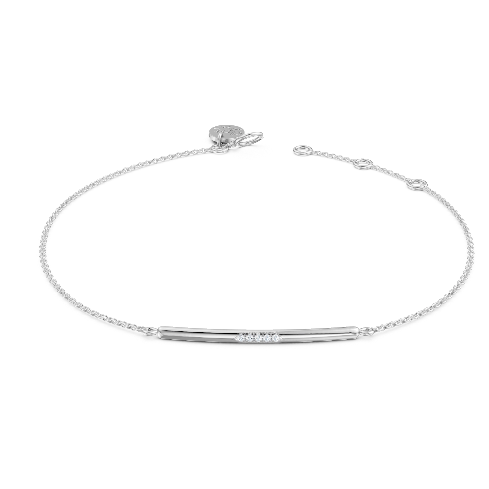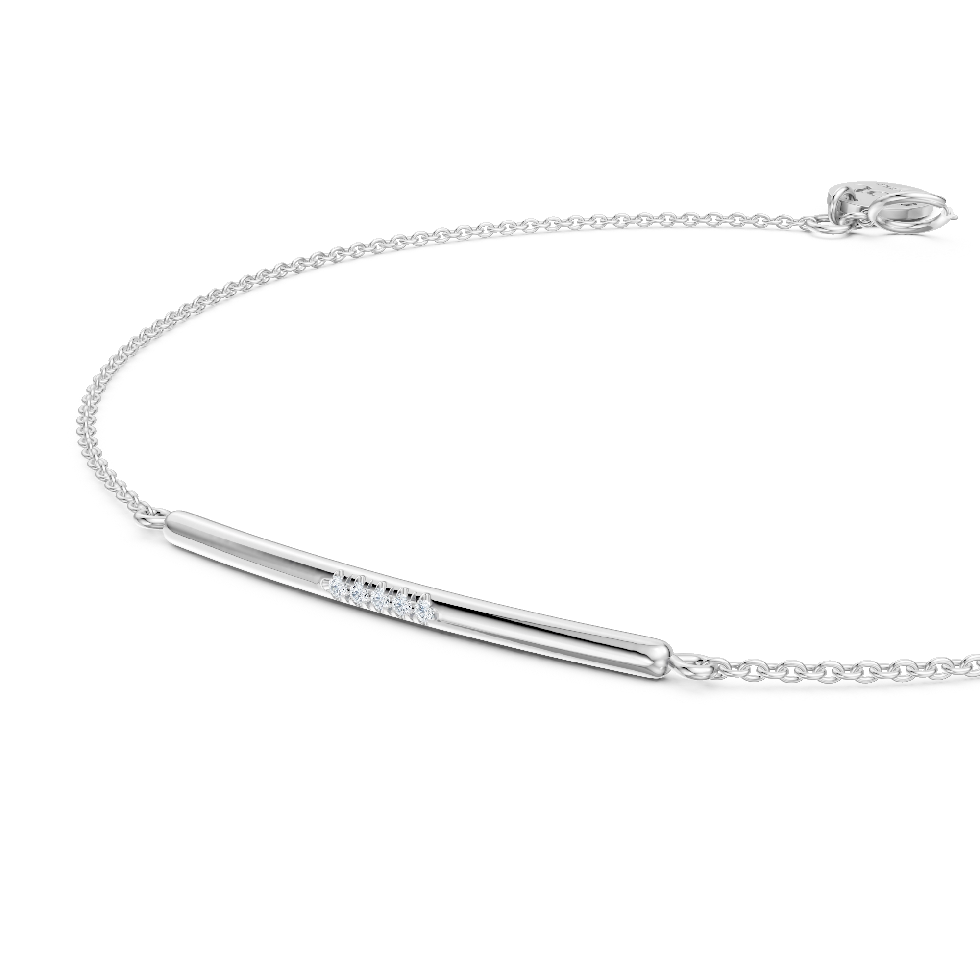 Minimalism, perfected. Our Everly bracelet features a slim bar accented by 4x natural diamonds, anchored on a fine chain. A subtle sparkle that goes with everything, from jeans to silk.