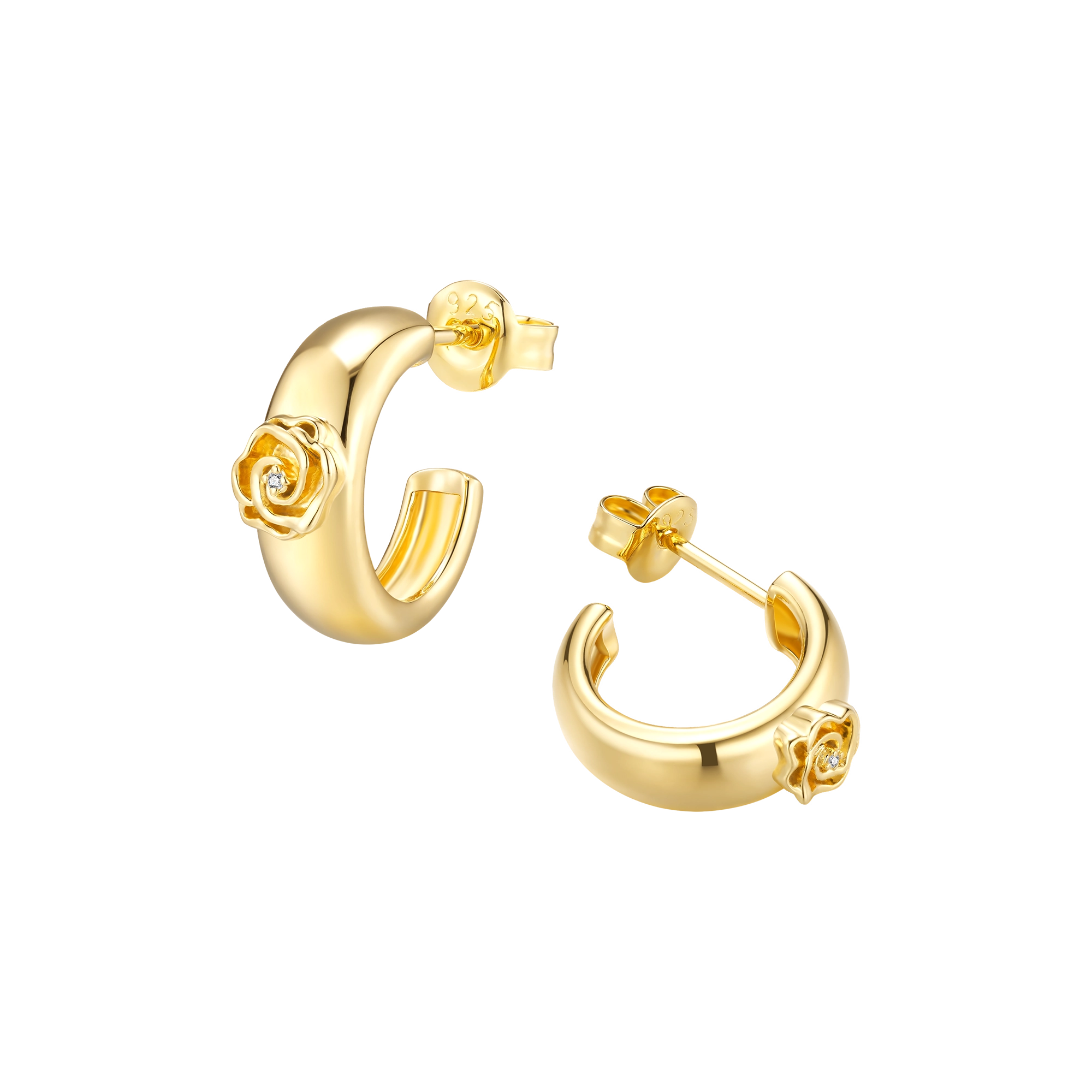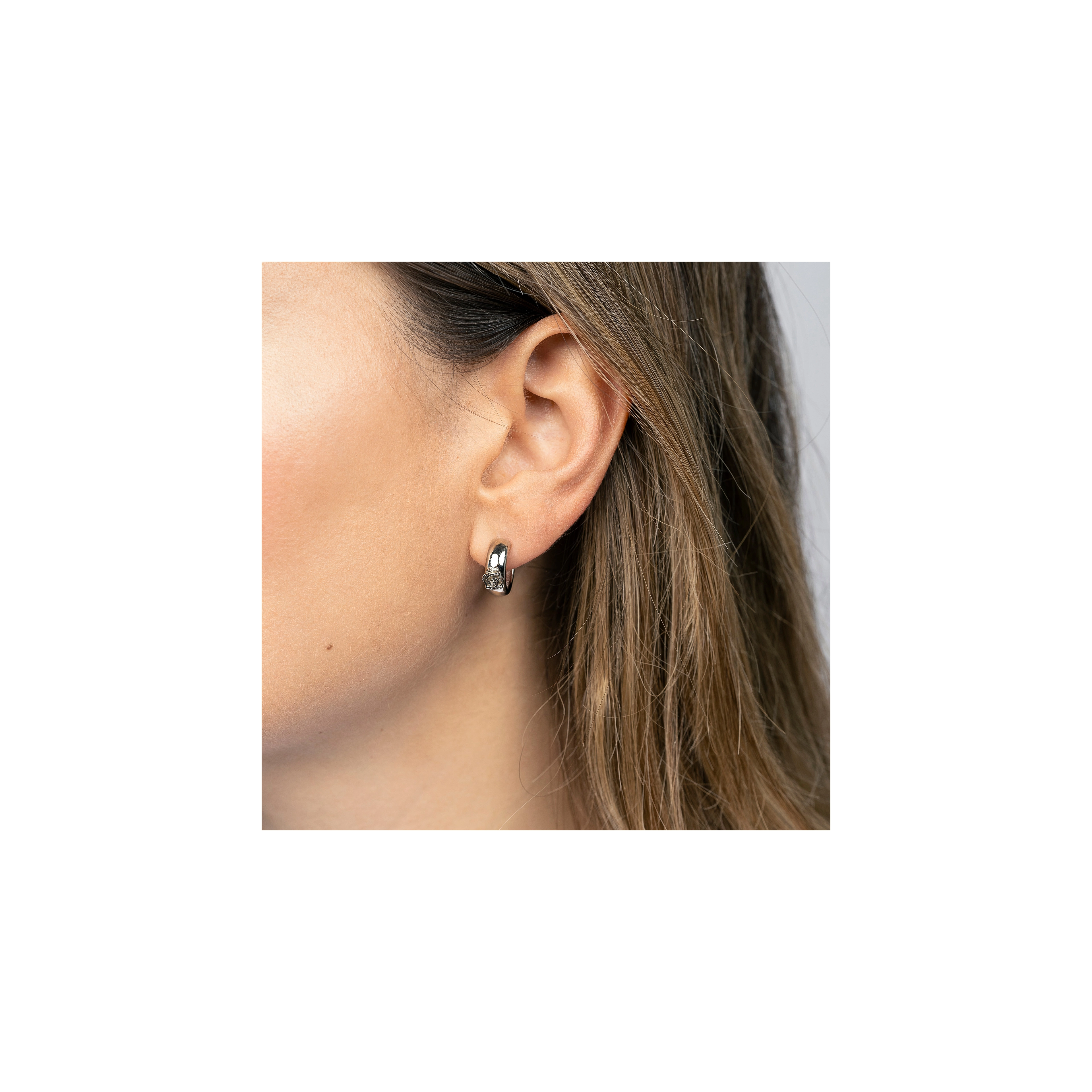 These hoops aren’t just a budding tribute to nature; they’re a full-blown floral affair for your soul. A pair of wider hoop earrings flaunting lovely rose flowers, each with a natural white diamond at heart. Perfectly balancing boldness and grace, they make every day blossom with charm.