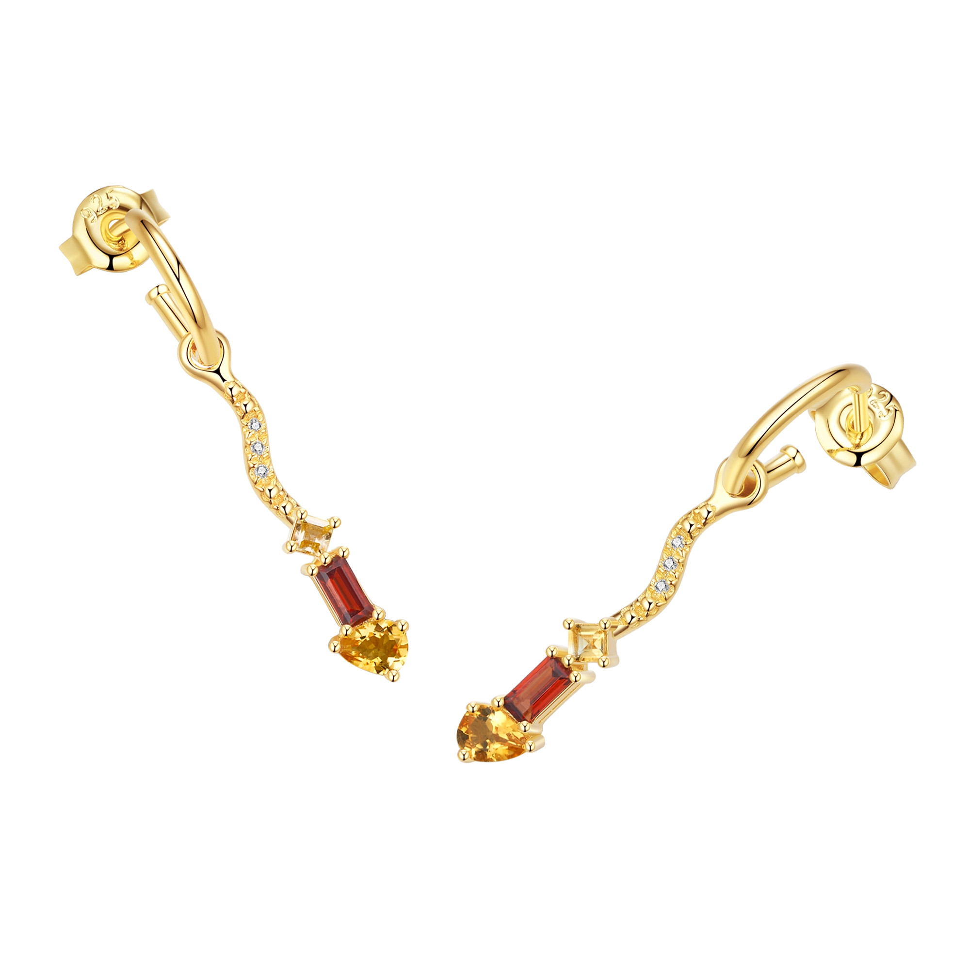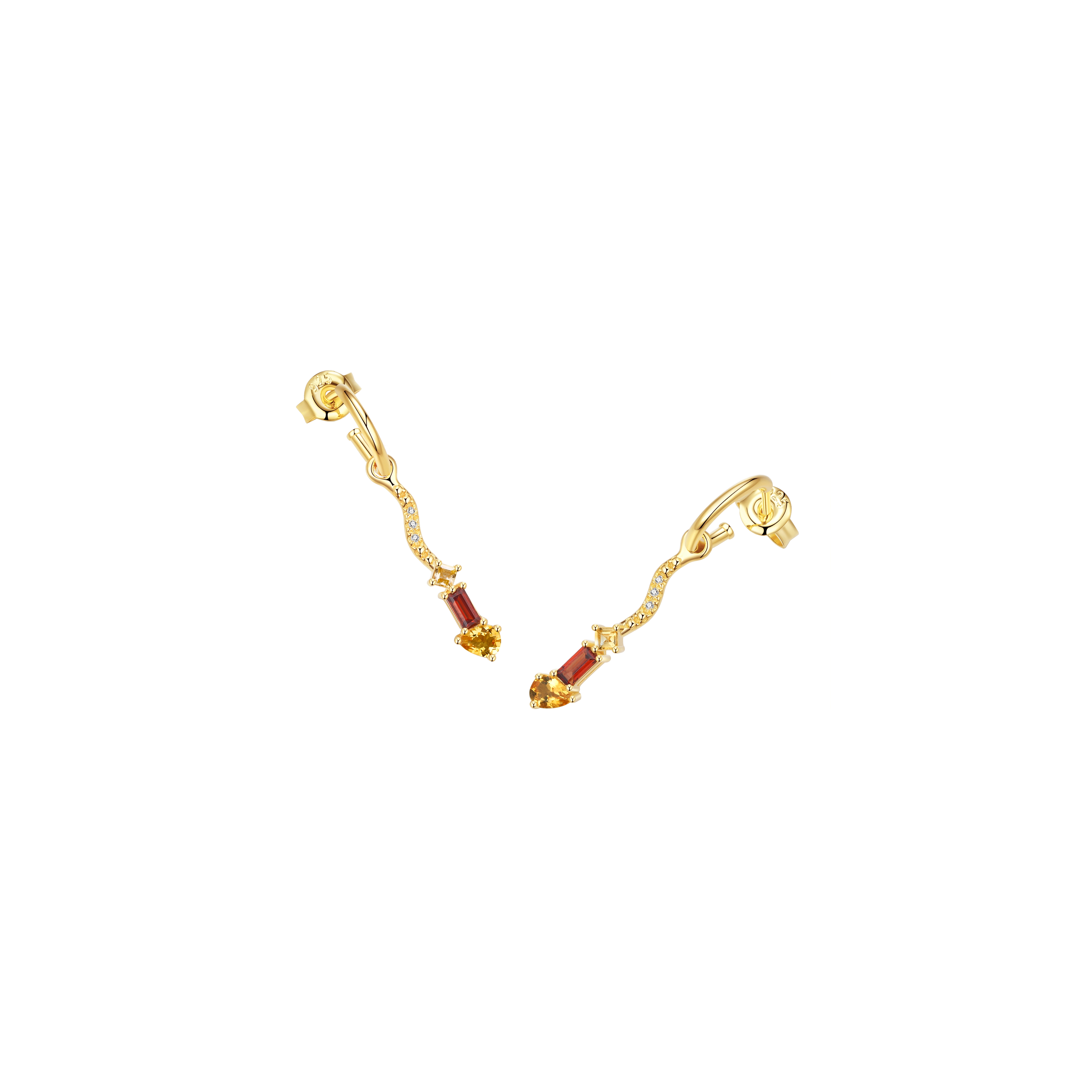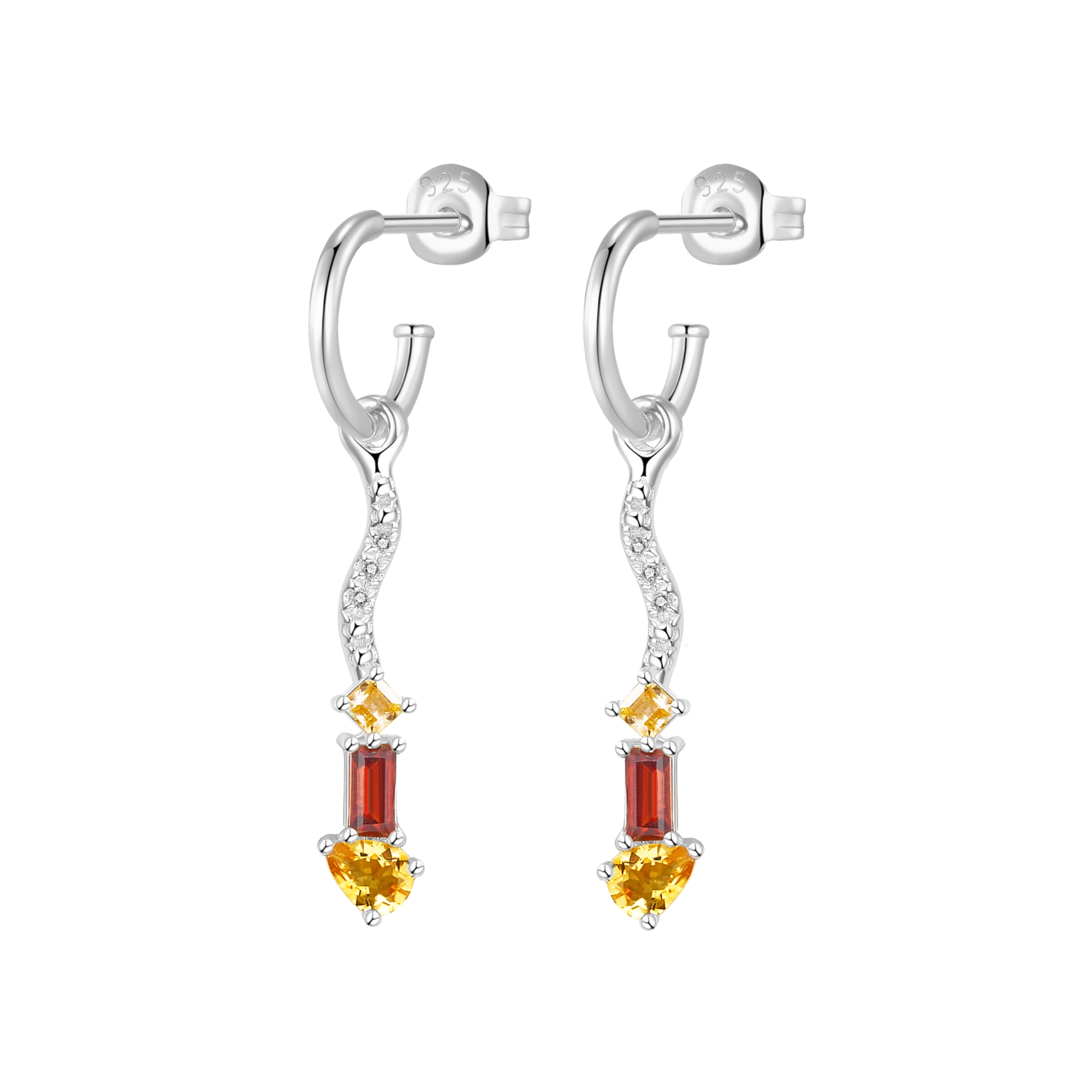 A pair of earrings that embody the fierce, radiant intensity of fire. A fiery cluster of garnet and citrine gemstones, in a playful variety of cuts, and 6x natural diamonds shimmer like glowing embers — cascading from a brushed wave design. A dance of warmth and brilliance, igniting the unstoppable energy of a flame.