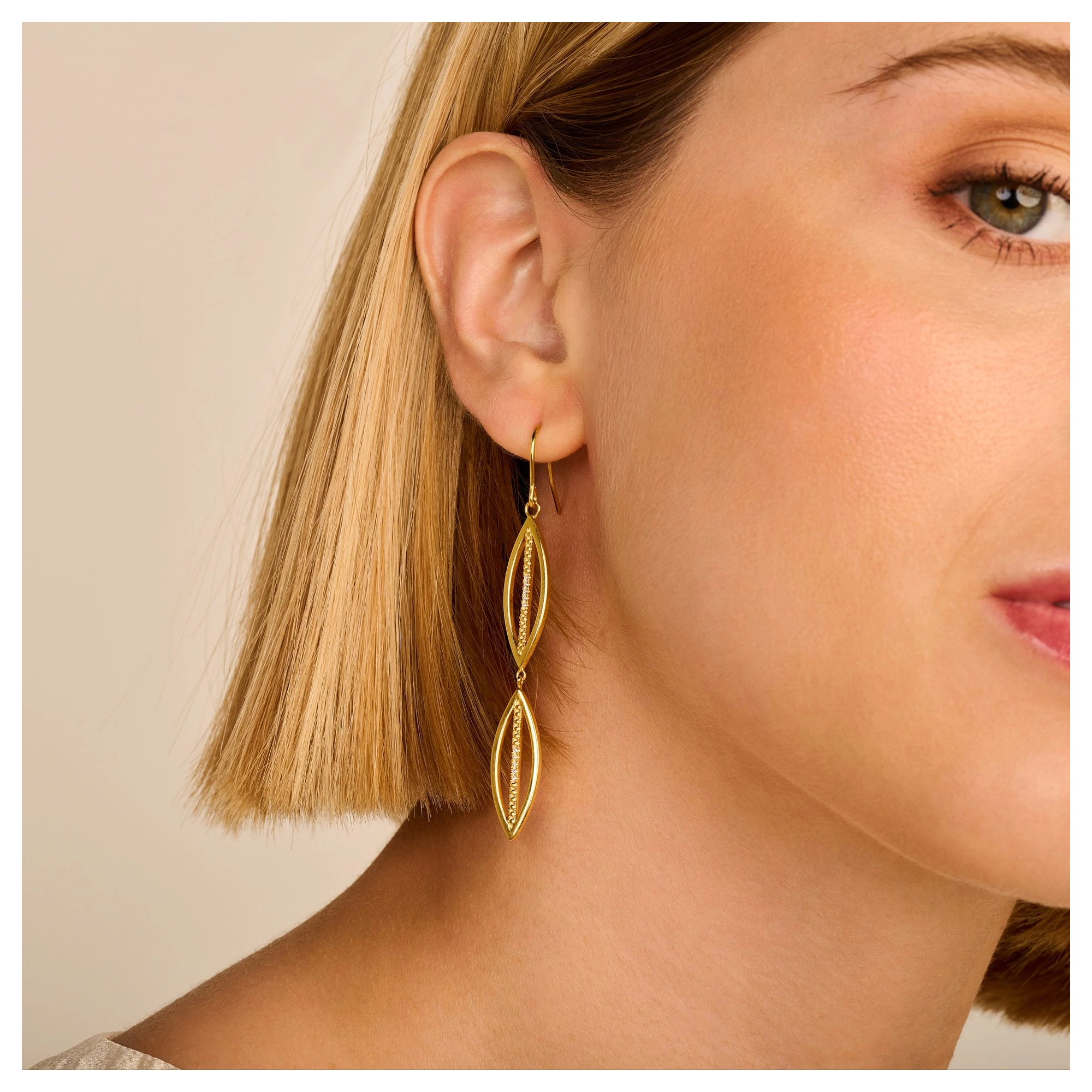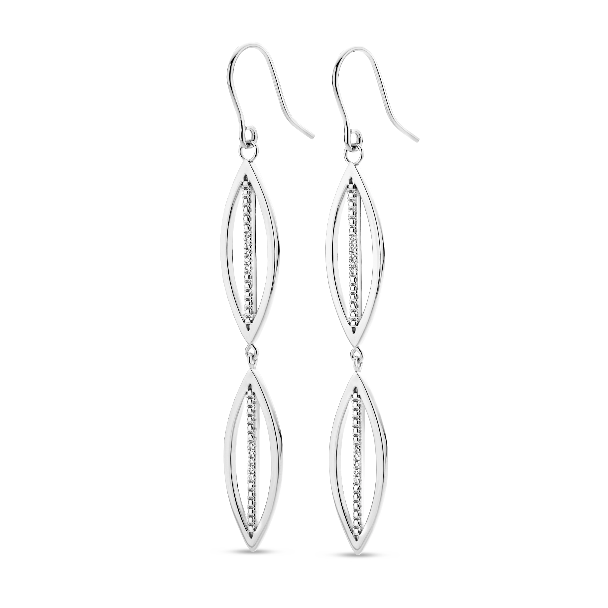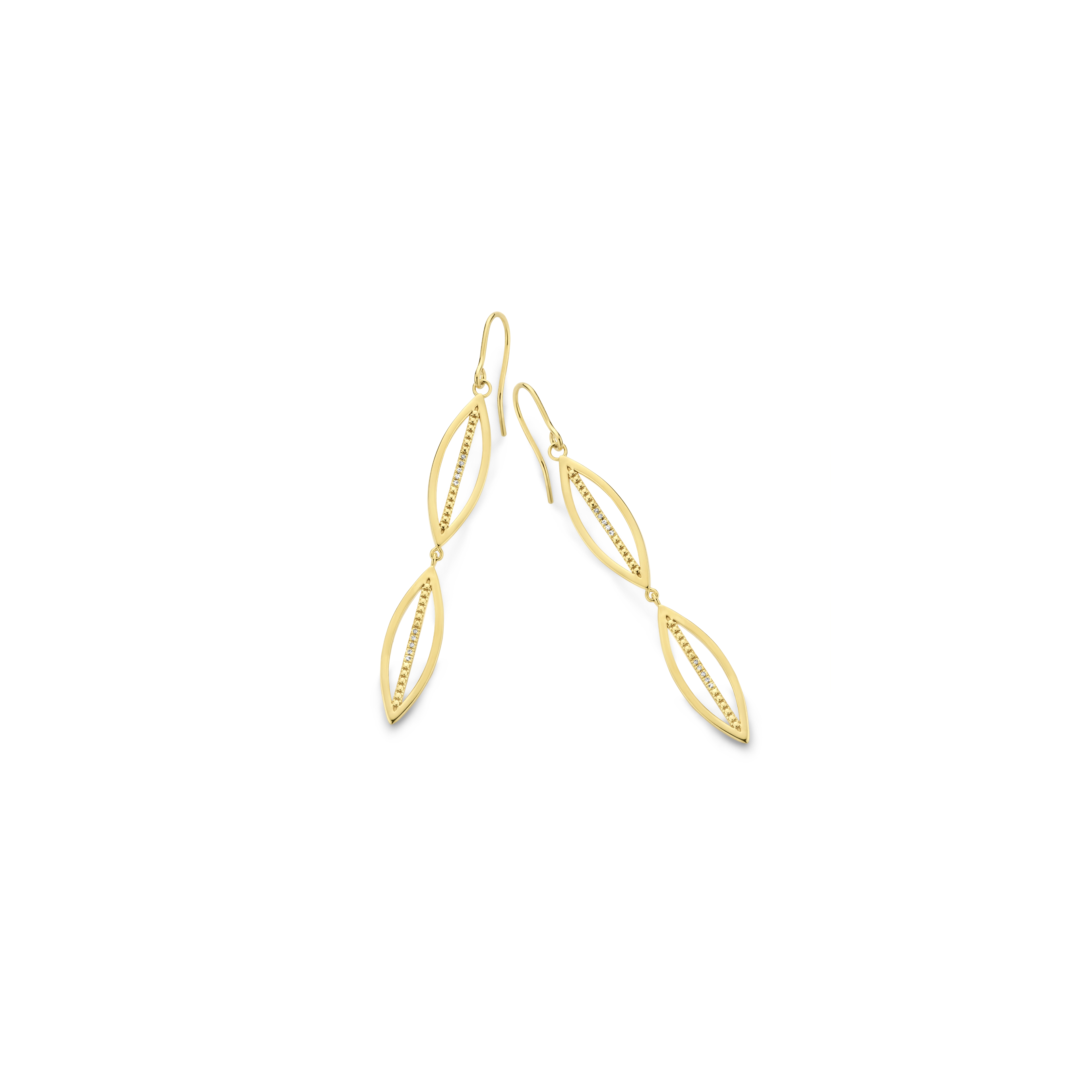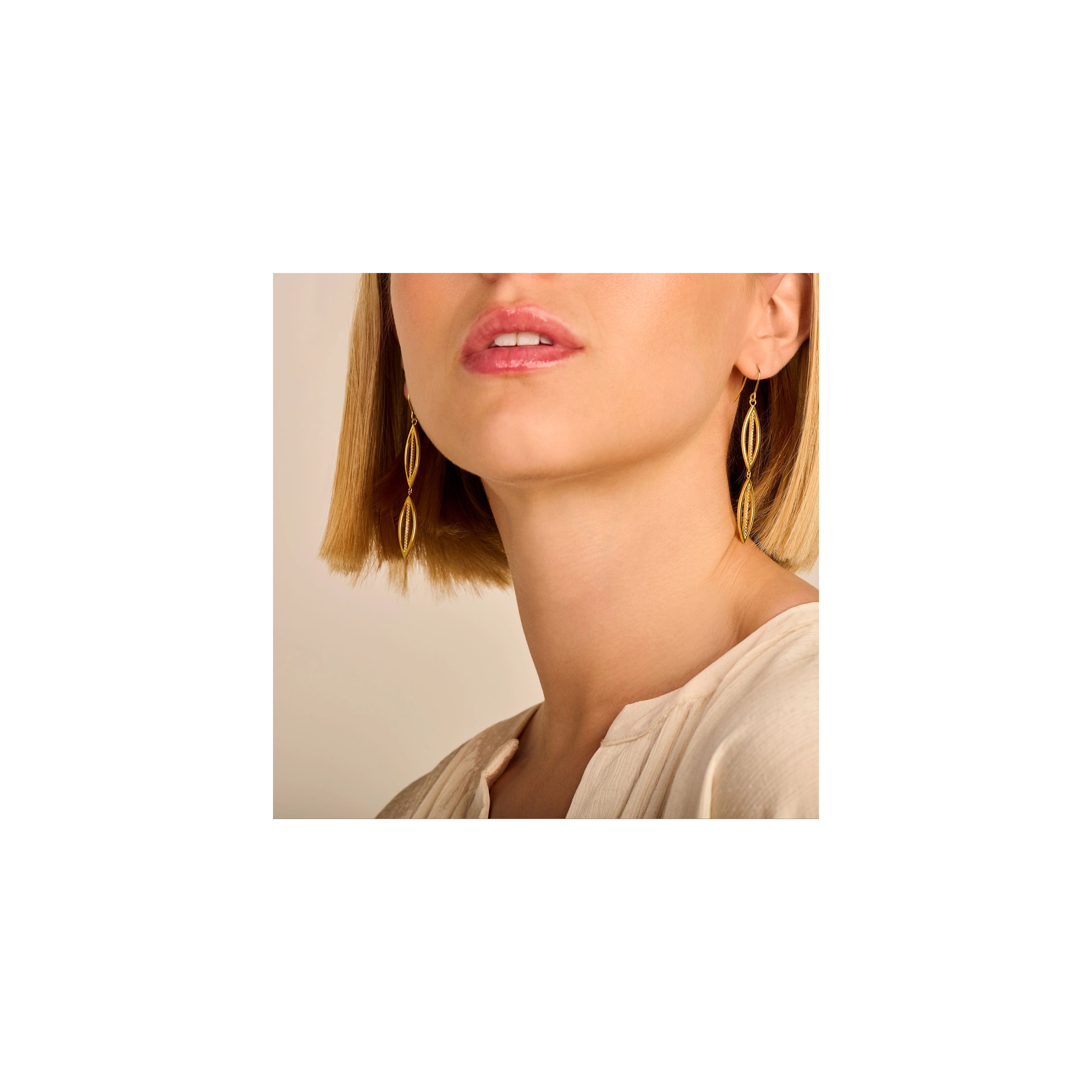 A contrasting play of straight and curved lines, handset with 20x precious diamonds. From matching any fancy dress code to everyday jeans and sneakers, this versatile pair of chandelier earrings is worth making a dash for.