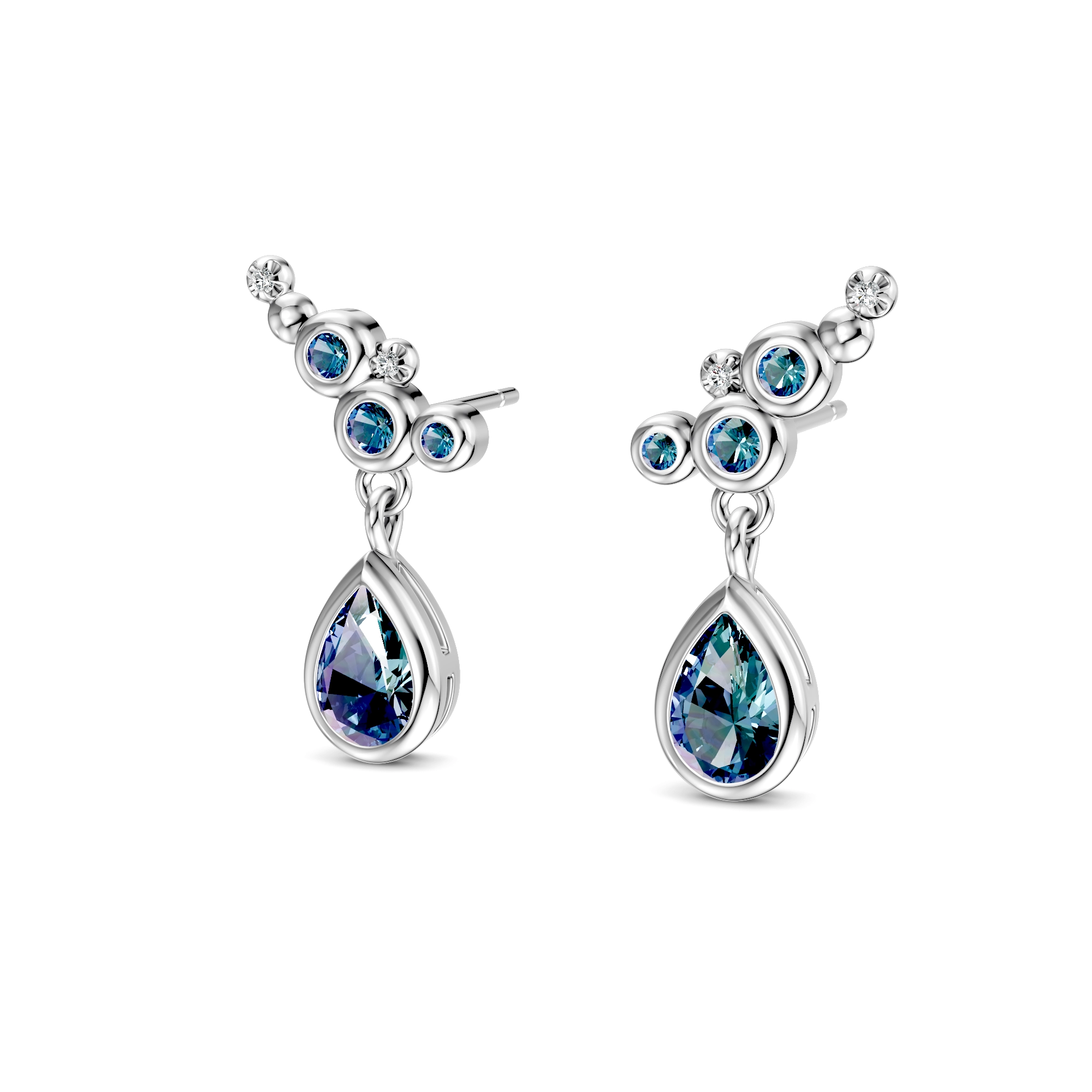 Playful yet refined, these earrings combine vivid London blue topaz with four white diamonds for a bright, eye-catching sparkle. The clustered design adds movement and character while keeping a delicate feel. Crafted in 925 sterling silver with a gold finish.