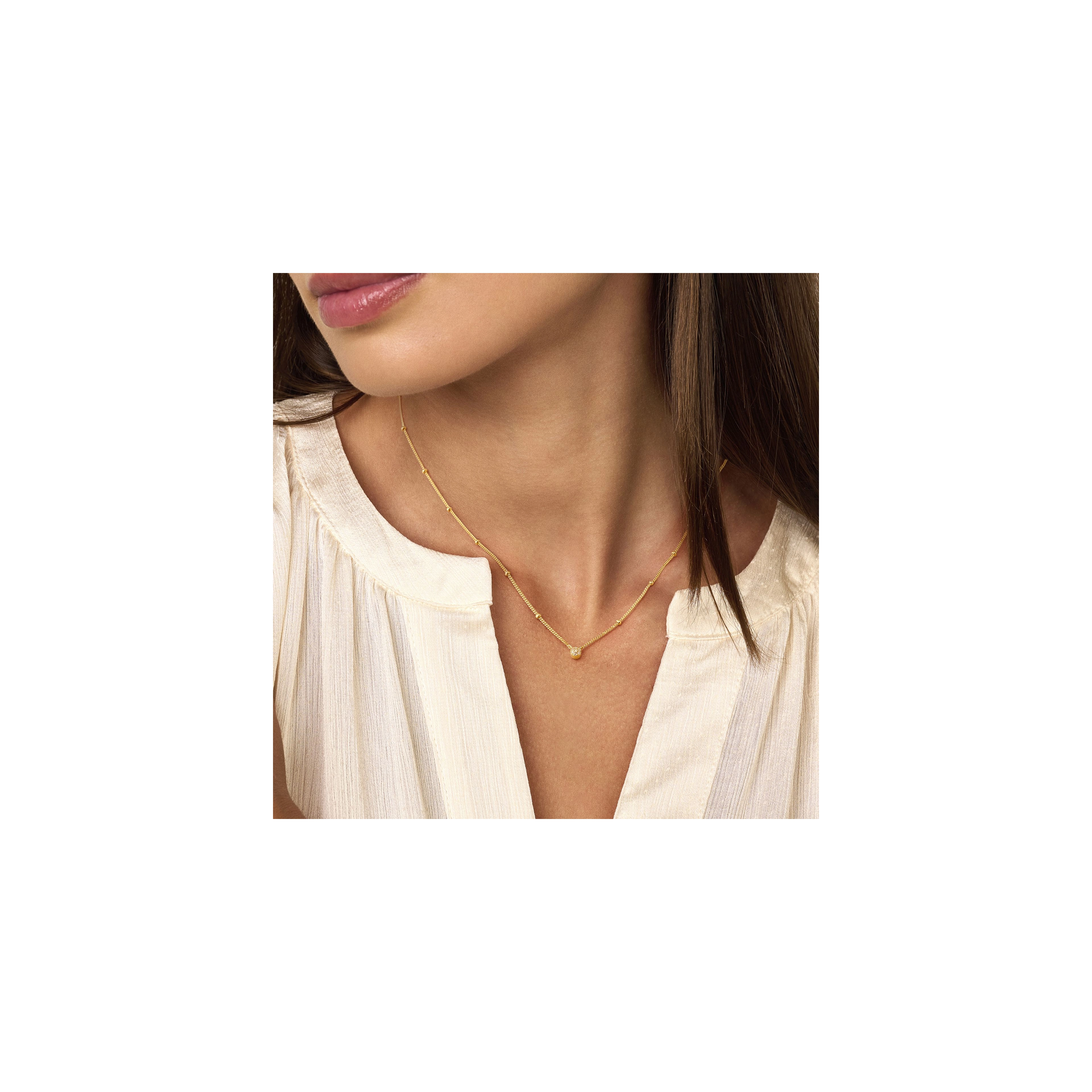 A new edition of our iconic and bestselling First diamond necklace. The same diamond (7x) center piece, now available on a playful beaded chain. Still the best piece around to get you started on your everyday diamond jewelry kit and to layer effortlessly with any of your future additions.