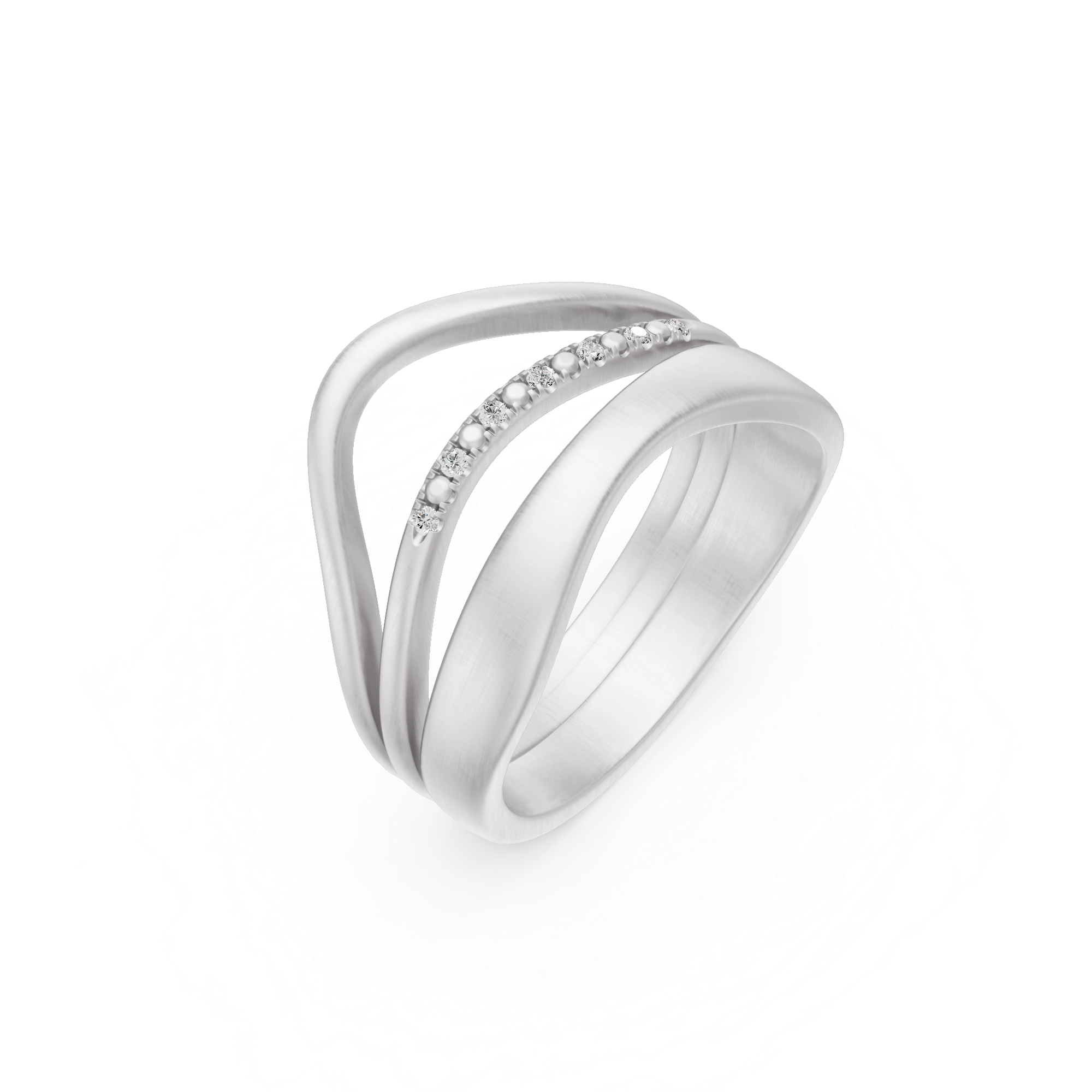 Clean and contemporary, this ring features a smooth, curved silhouette set with seven white diamonds. The polished surface contrasts beautifully with the delicate sparkle. Crafted in 925 sterling silver.