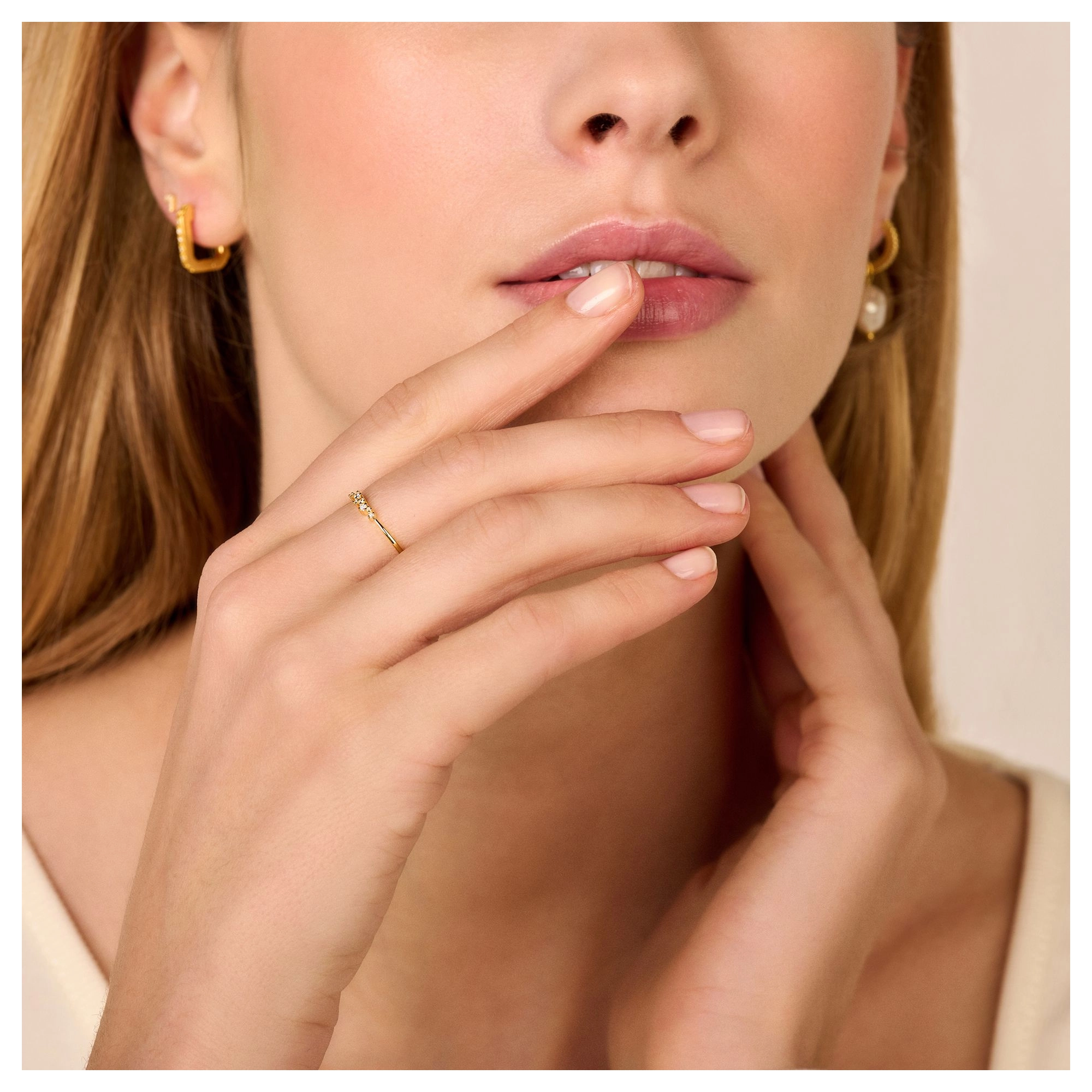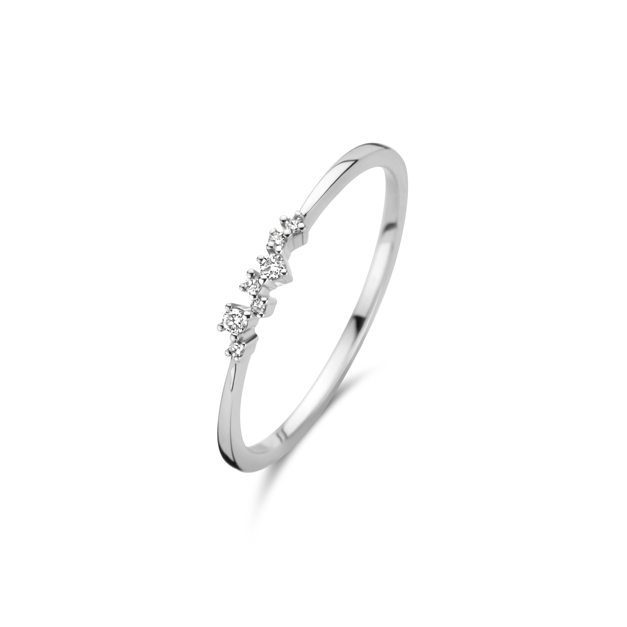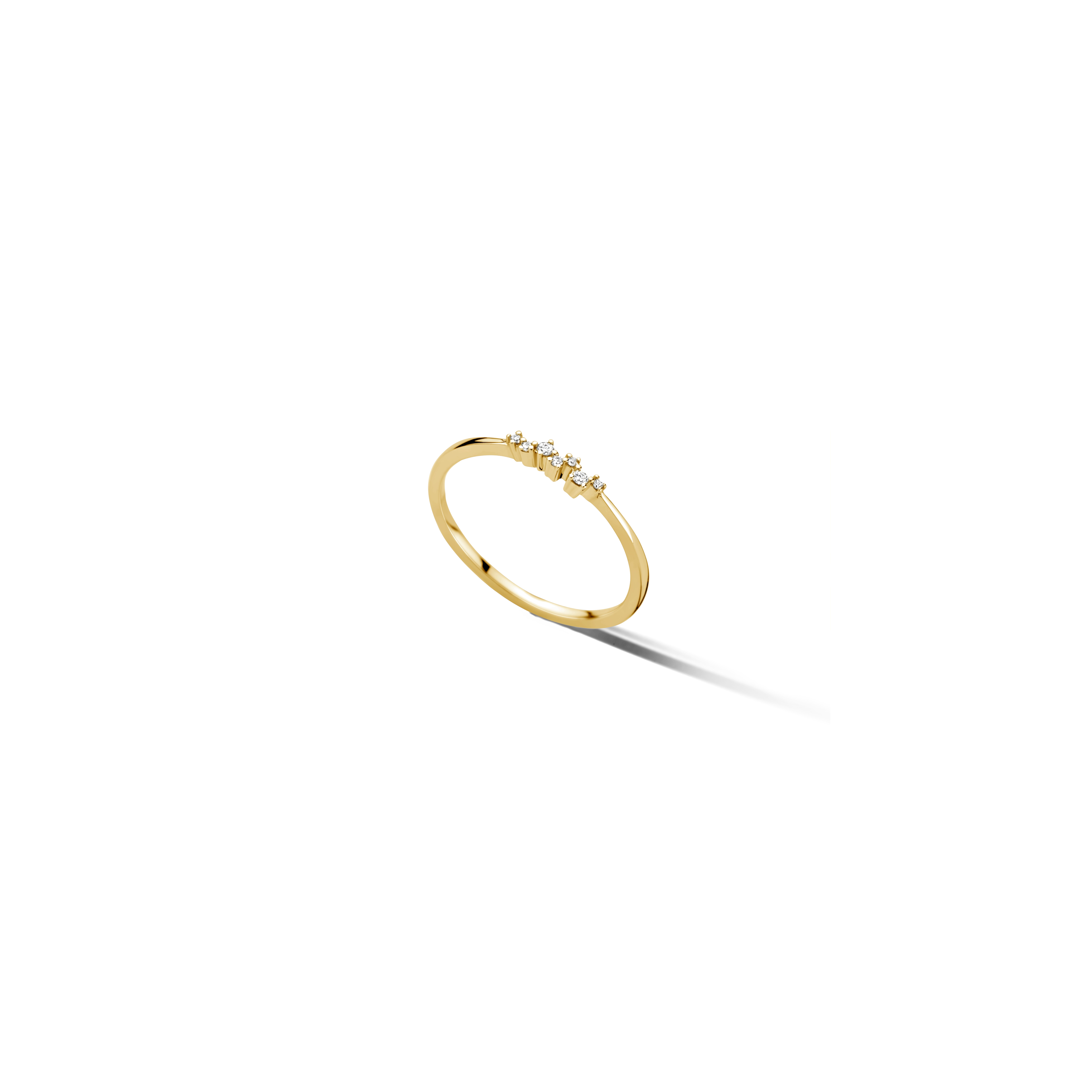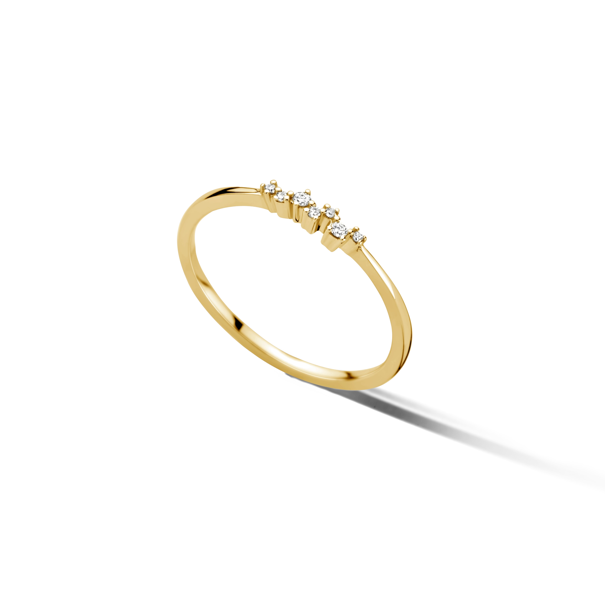 A surprising composition of 7x white diamonds in different sizes, giving a vibrant and lively feel. Subtle on its own or a striking layer within your stackables.