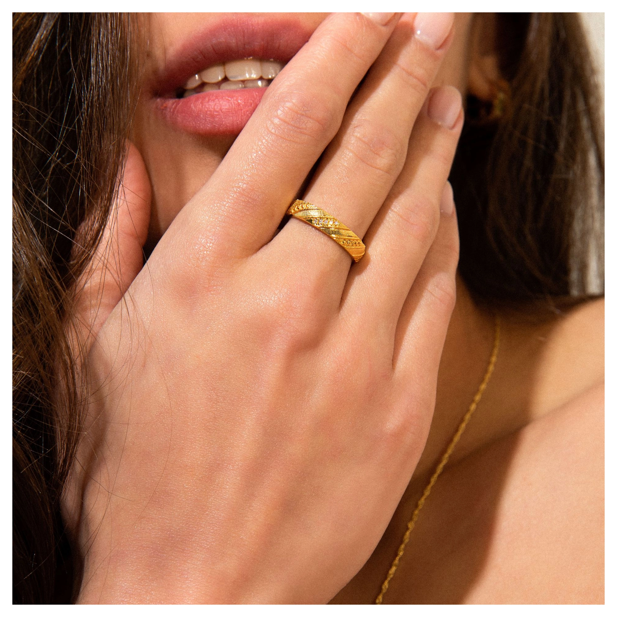 Engraved with patterns spotted around Amalfi, its striped beach umbrellas and the cutest tiled stairways, this ring with its 5x diamonds is what we call amore.