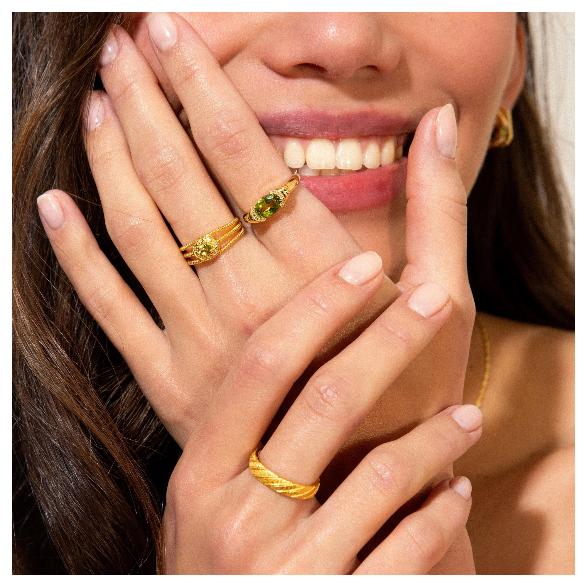 We also exclusively work with RJC- certified suppliers, maximizing the use of natural materials in mindful conditions, considering waste management and essential recycling.