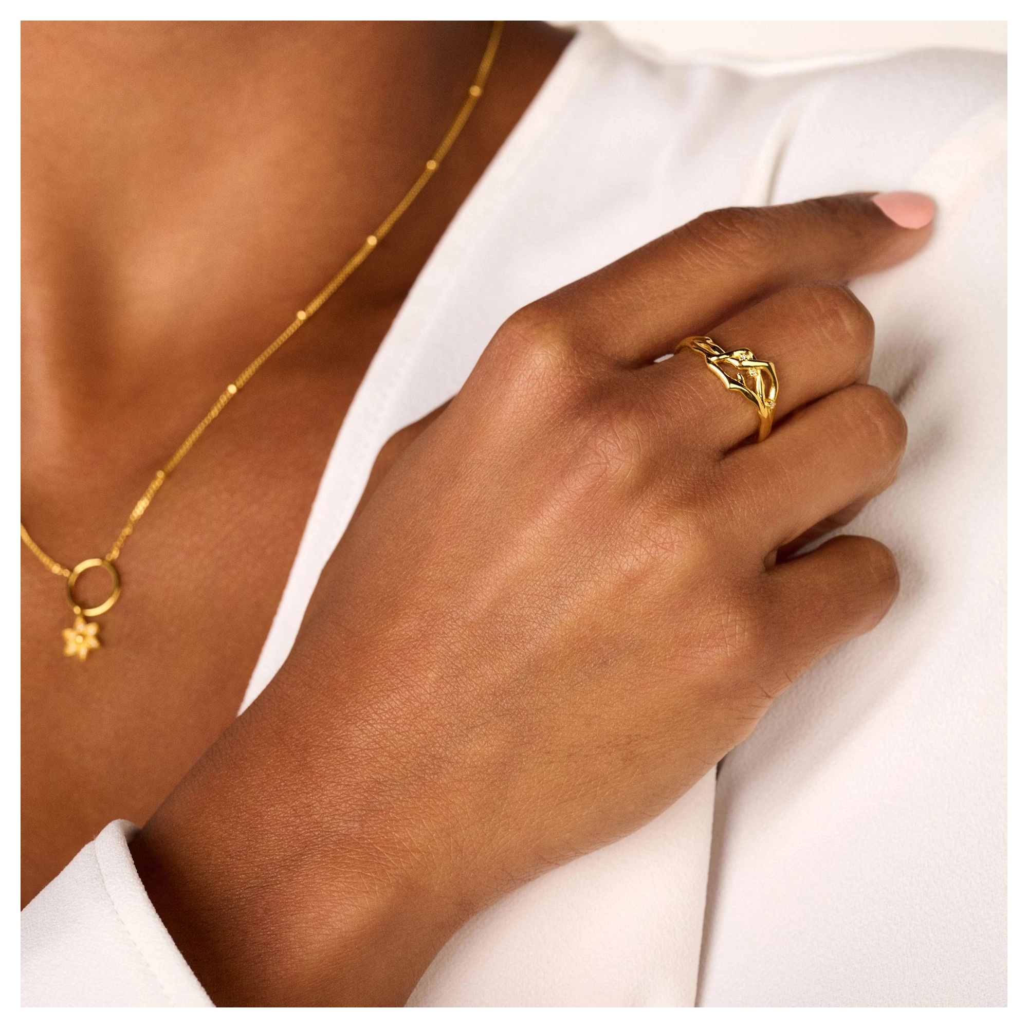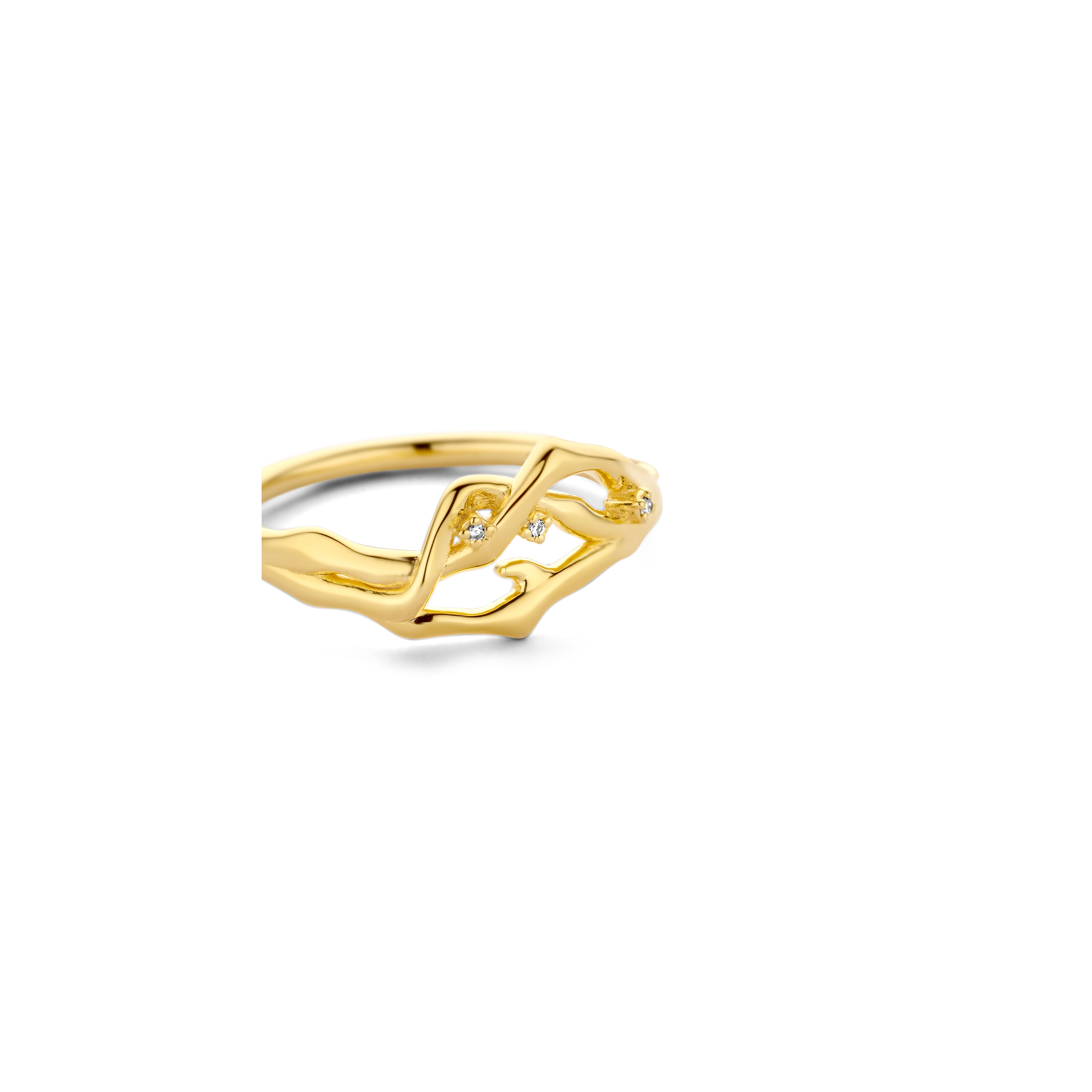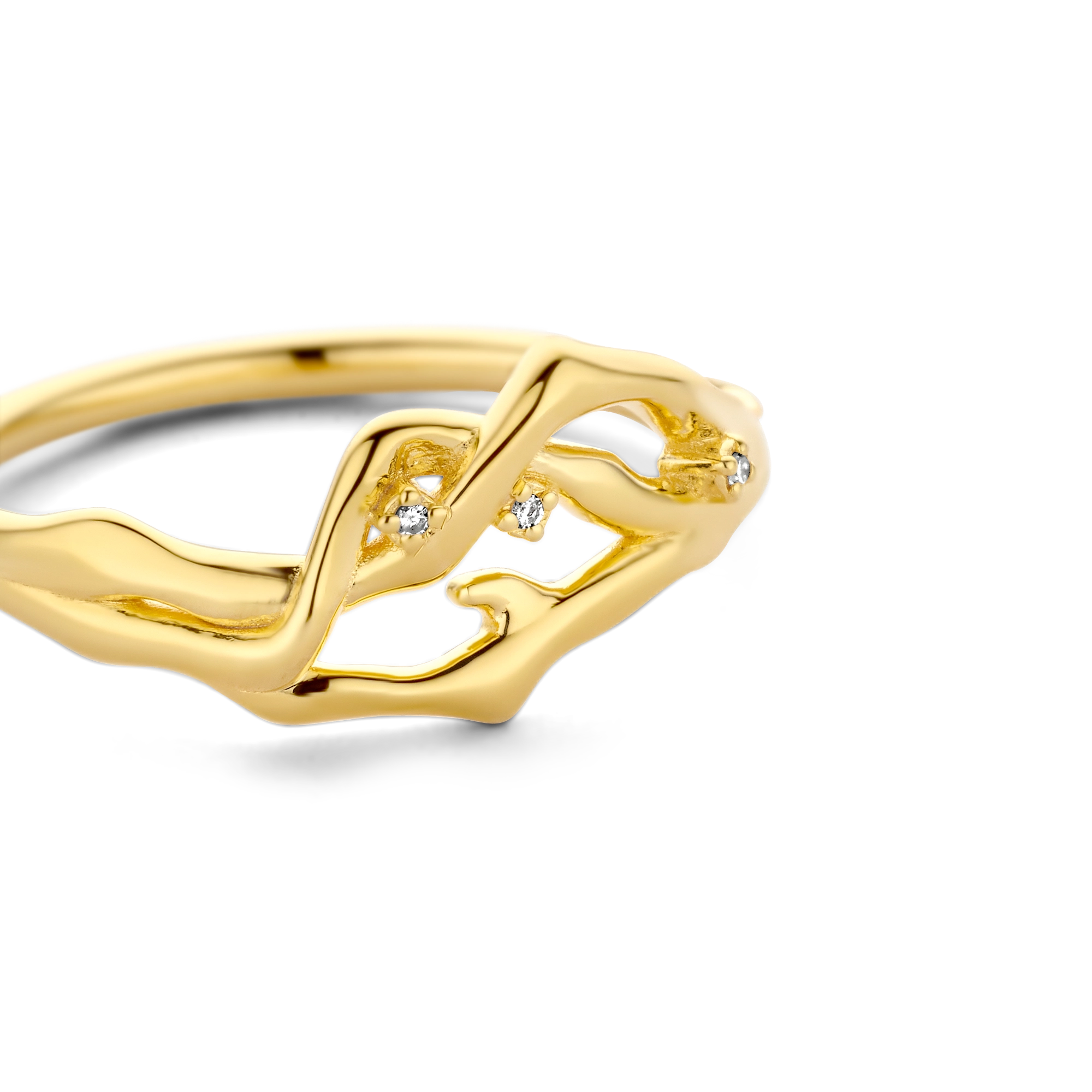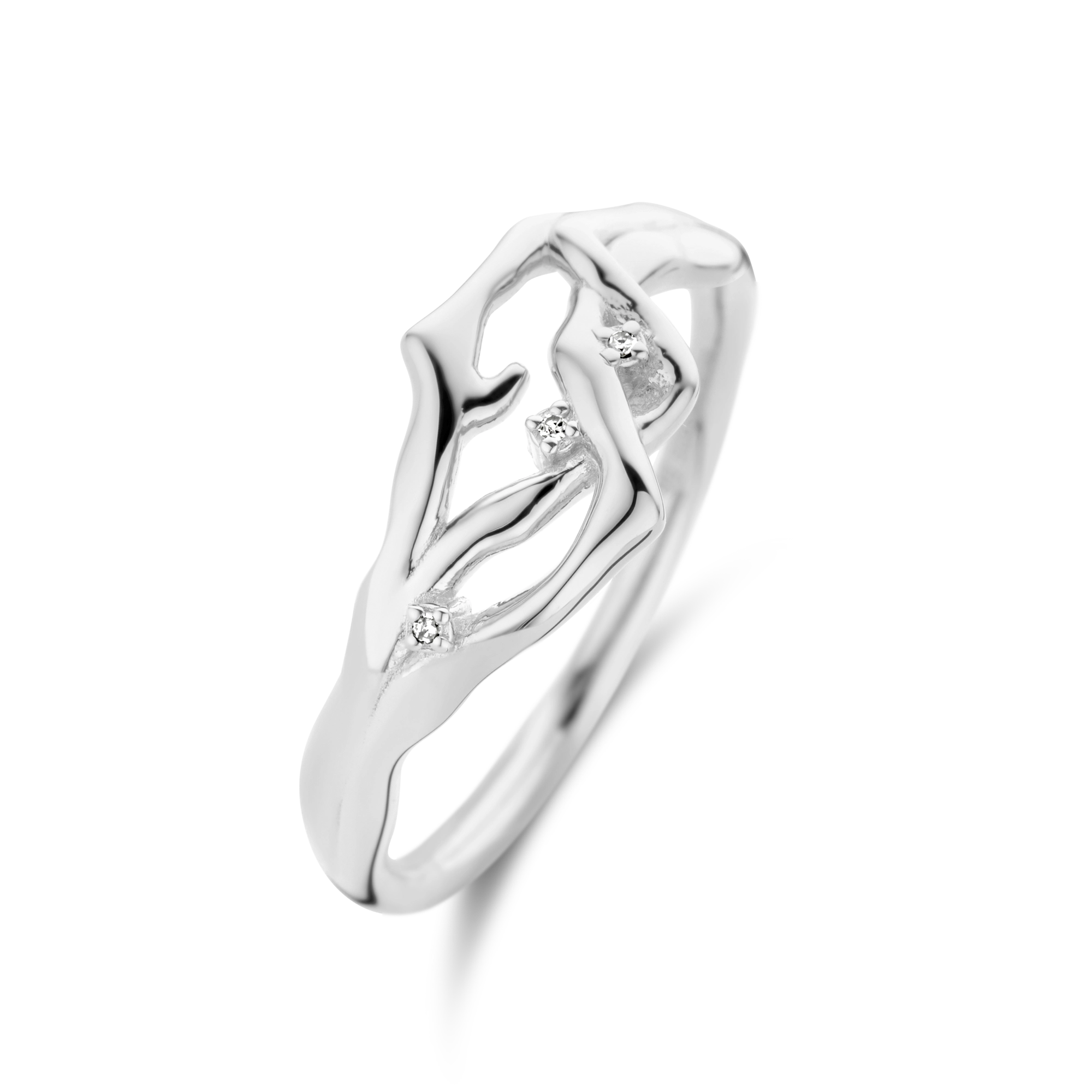 Flowing bare branches, handset with 3x diamond knots, sporting a natural and organic look, deeply rooted in pure elegance.