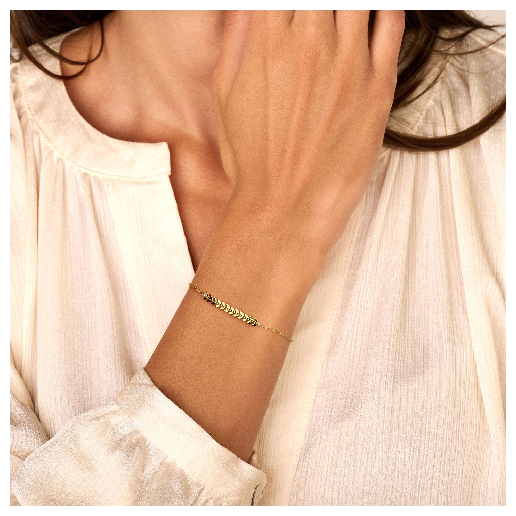 A contemporary willow branch, delicately draped and flowing around your wrist. With 2x signature diamond ends, there’s no limit to your radiating glow.