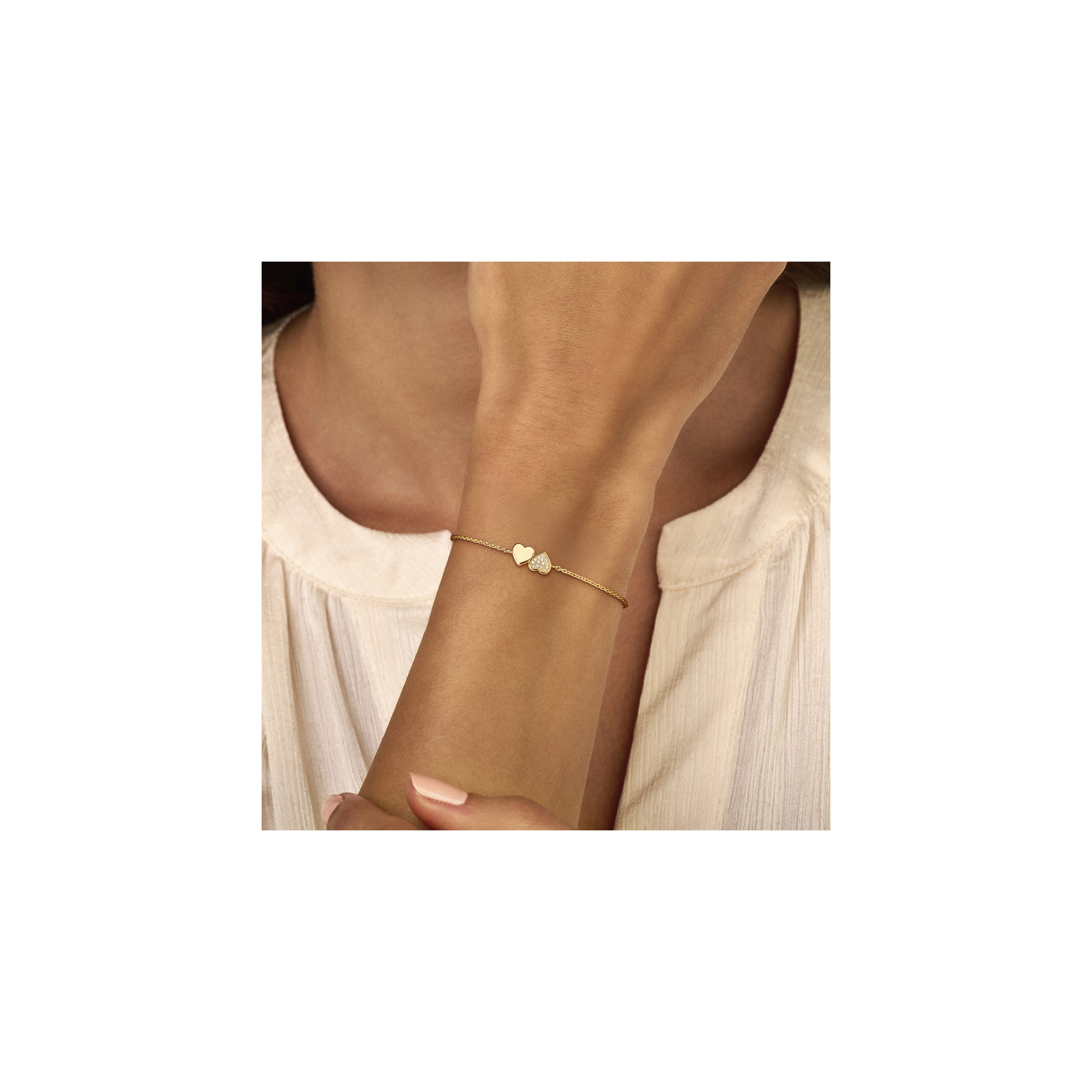 Finished with 14x everlasting diamonds, handset into connecting hearts, this charming bracelet captures the essence of heartfelt elegance. It’s where love meets luxury, making it the perfect toi-et-moi piece.