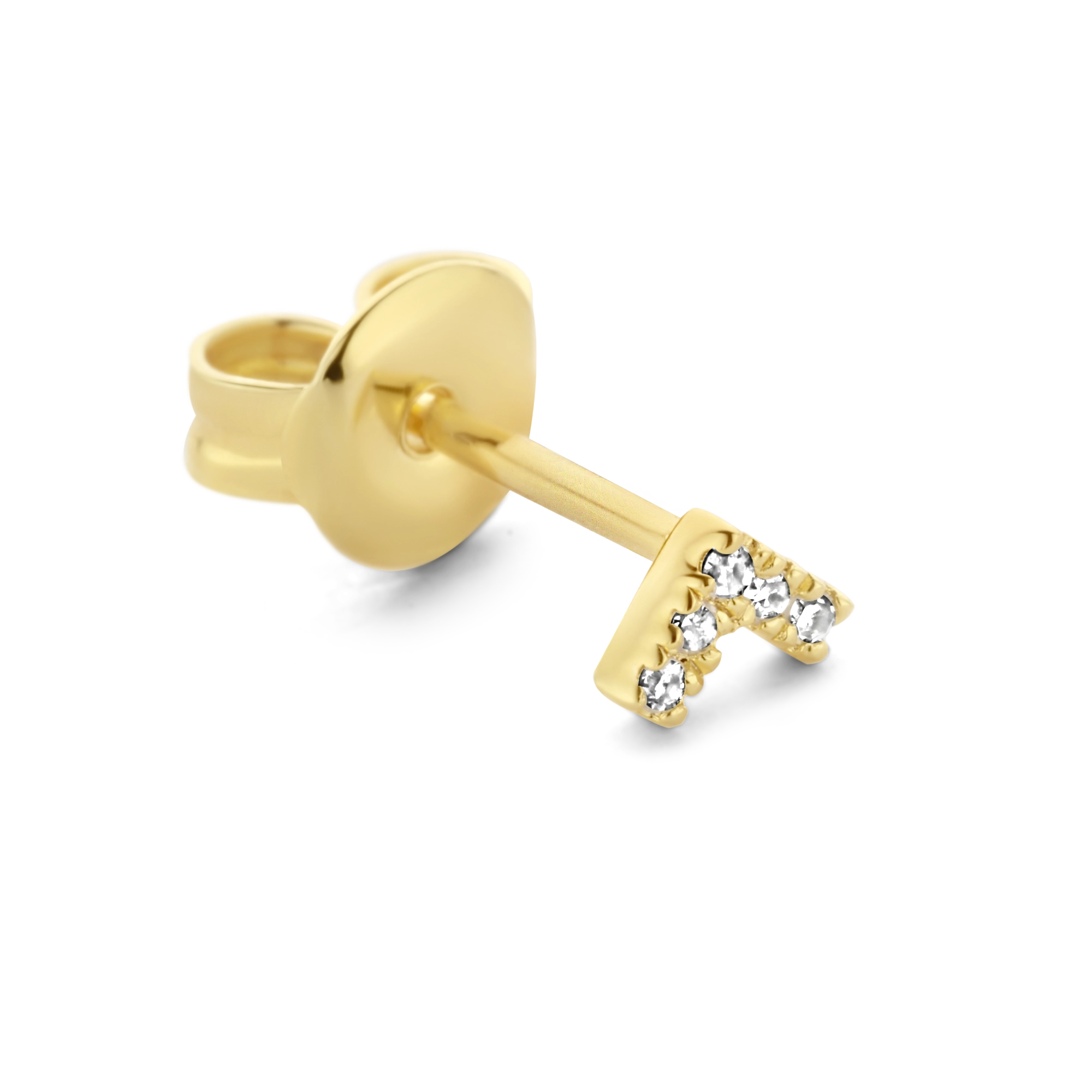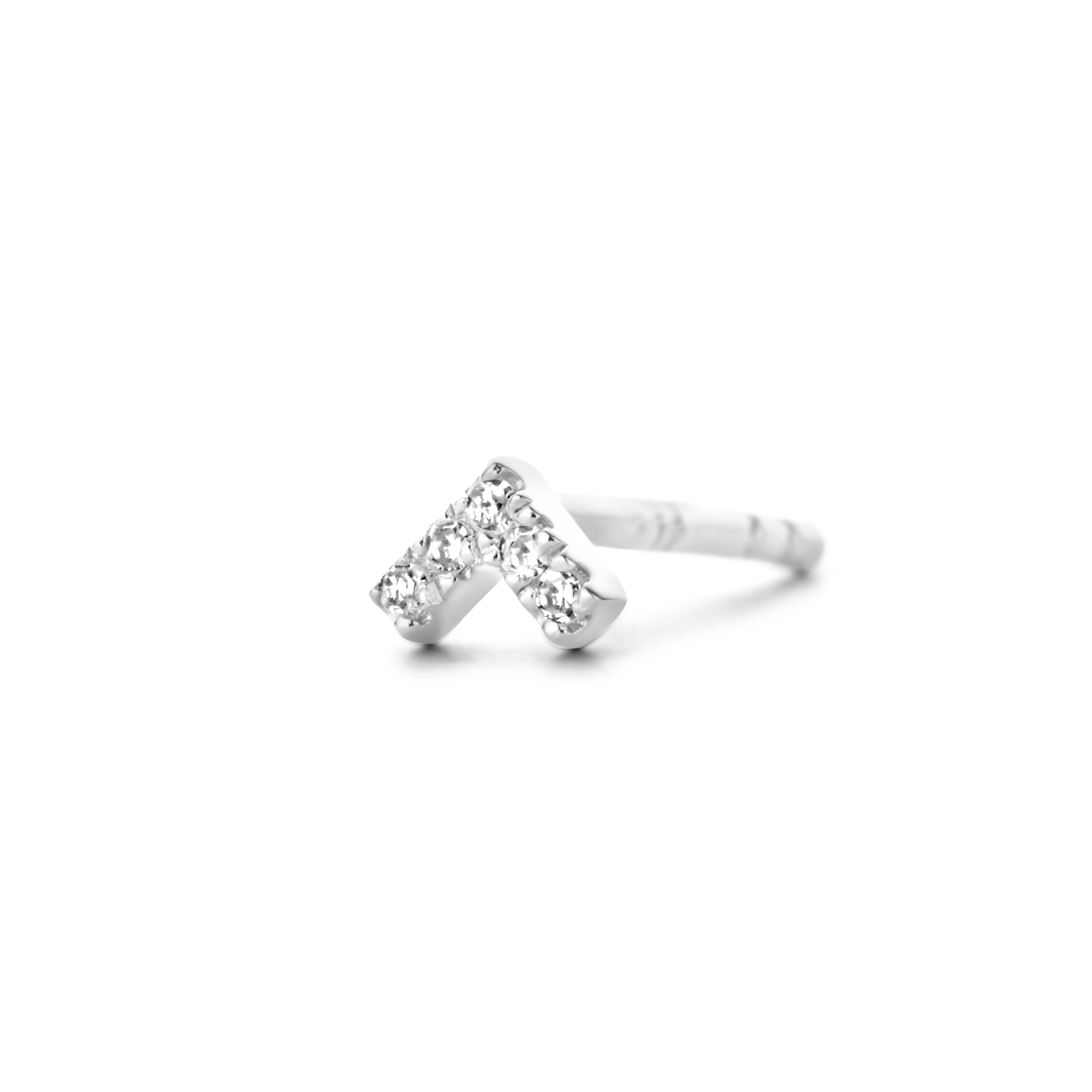 An arrowhead-shaped single earring with 5x sparkling white diamonds - pointing up, down, left or right, whatever way you are going.