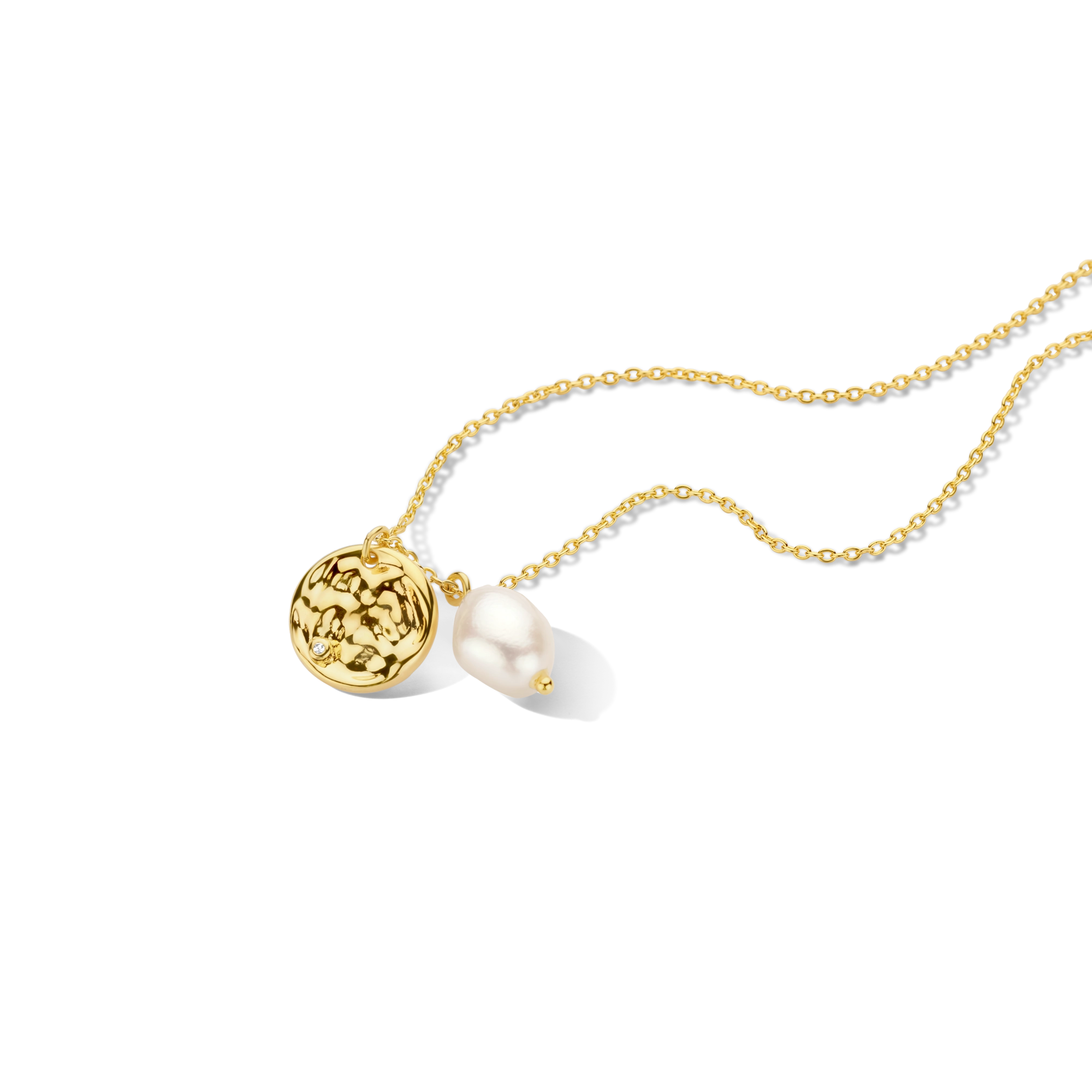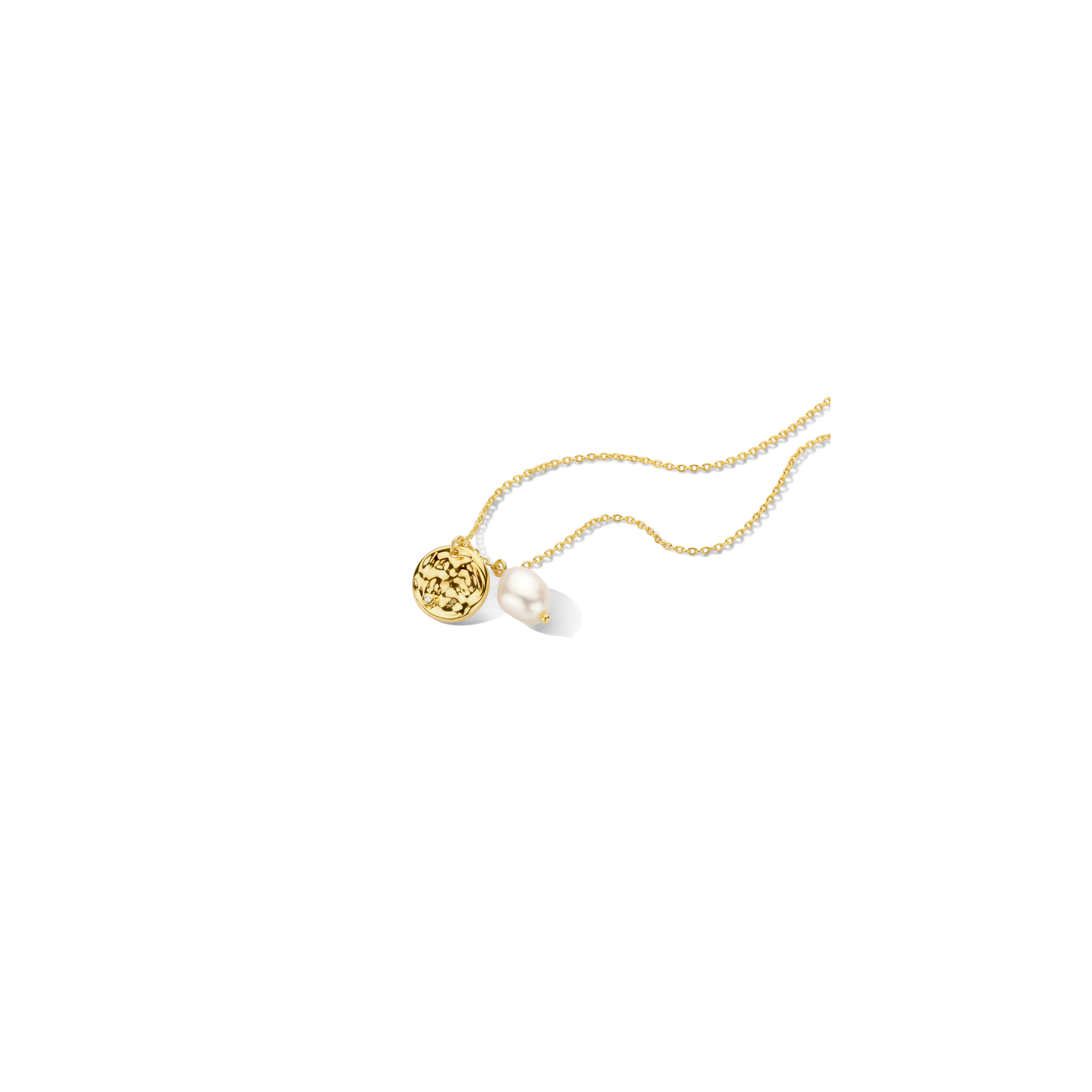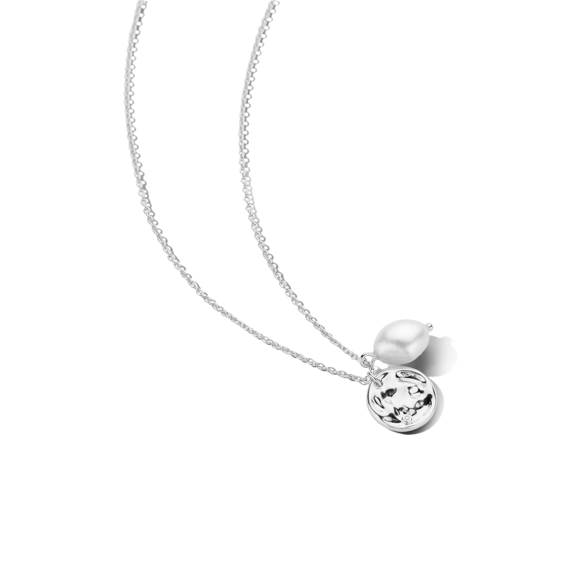 A hammered amulet pendant with 1x white diamond and baroque pearl, your signature everyday casual chic style. Excellent for layering with our Audrey choker.