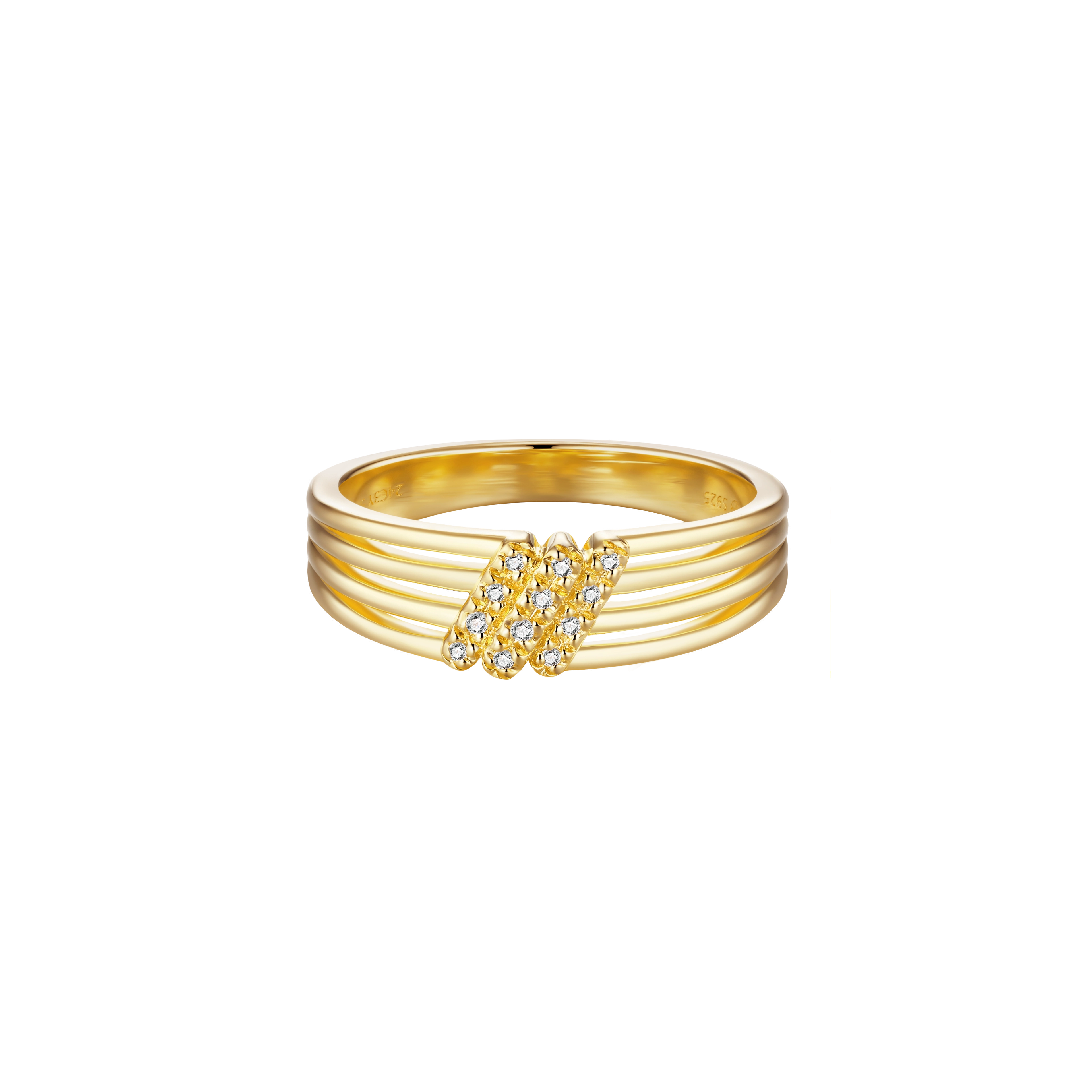 Float effortlessly into elegance — a triple band inspired by the celestial beauty of the free-spirited air element. Three vertical lanes of pavé-set diamonds (12x) shimmer side by side, like trails of starlight cutting through a clear night sky. Designed to embody lightness and grace, this piece is a tribute to the boundless energy of the winds.